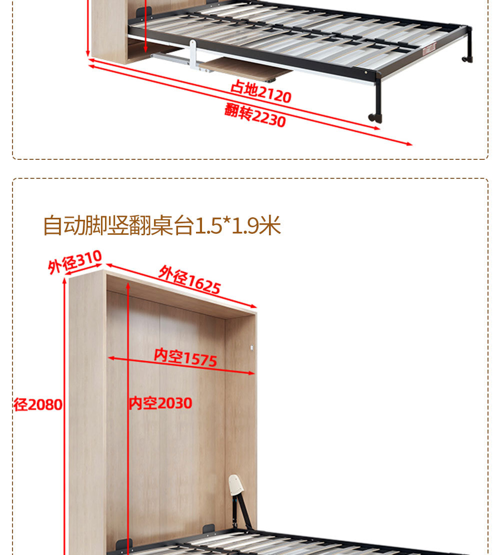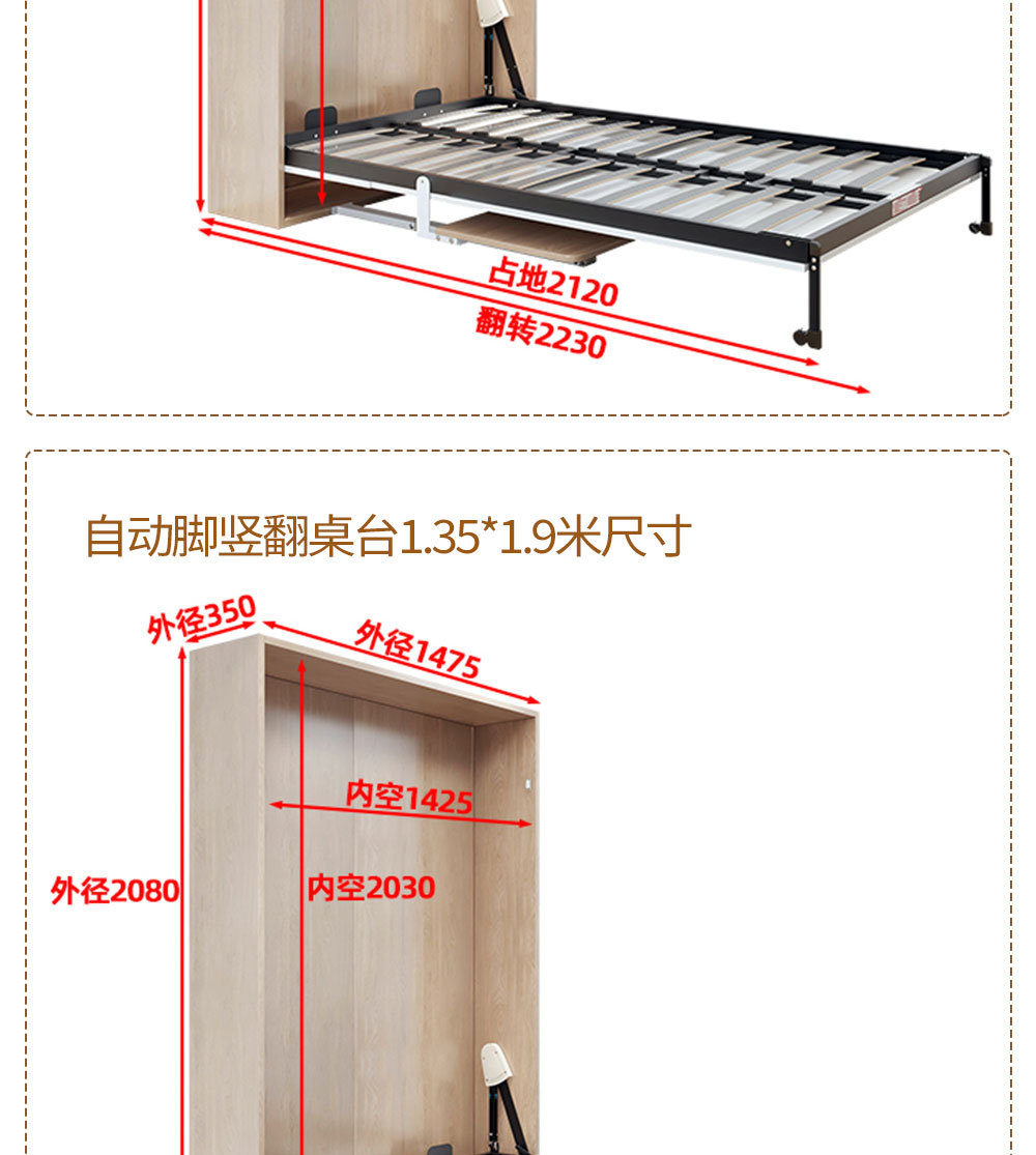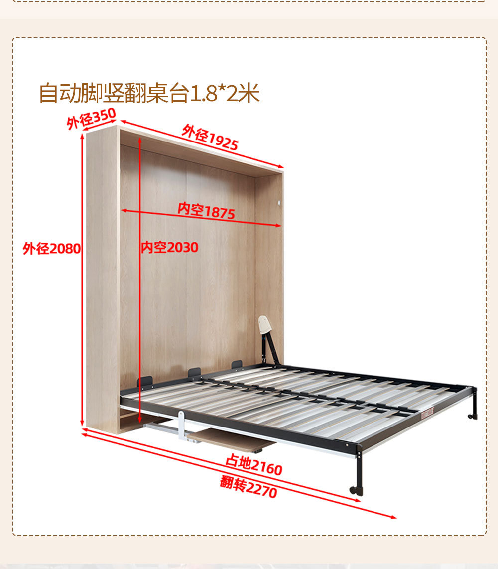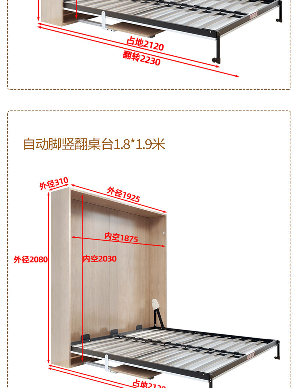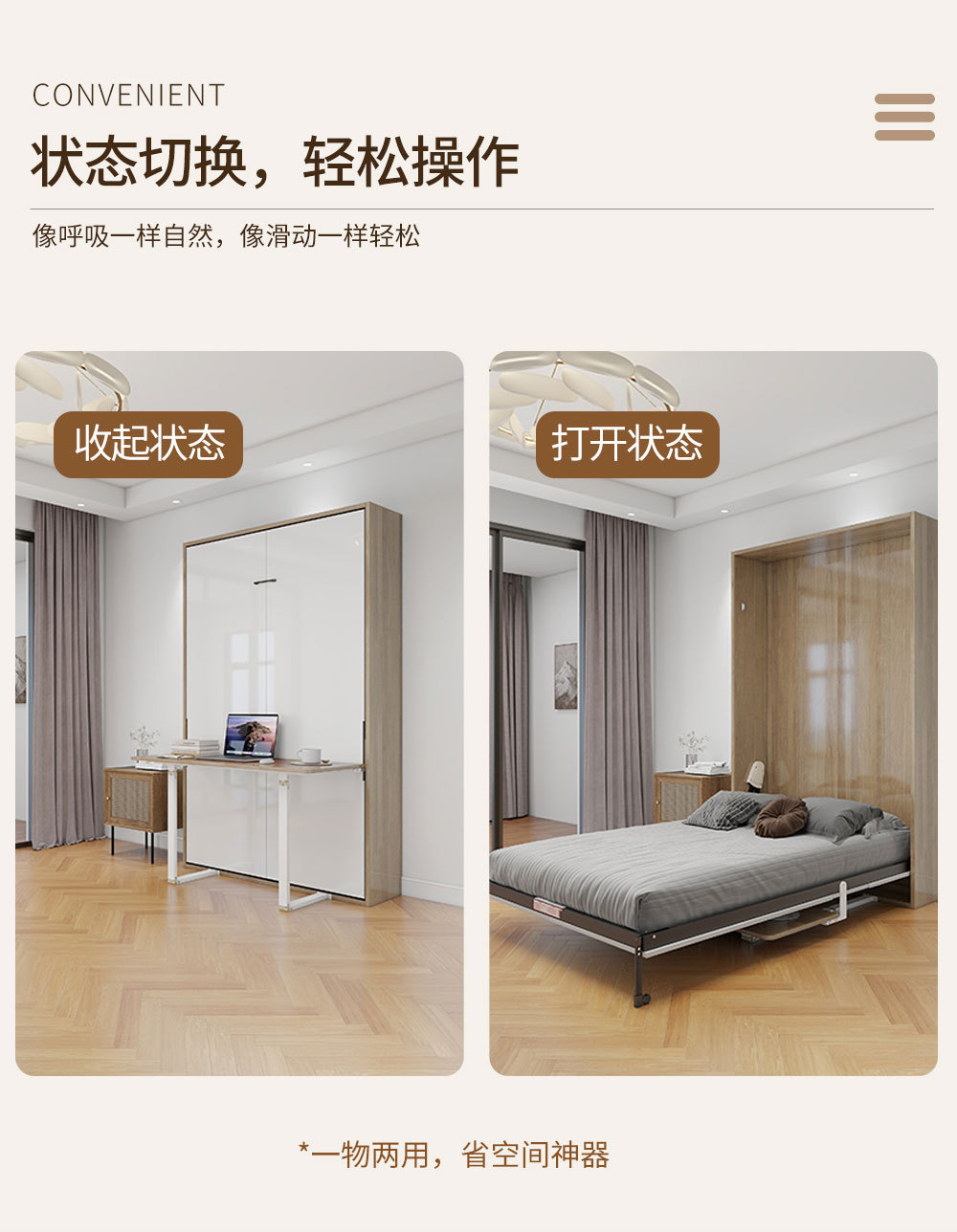자동 수직 테이블 보이지 않는 침대 머피 접이식 벽 침대 다기능 하드웨어 액세서리 침대 테이블 통합 접이식 침대스토어 가기