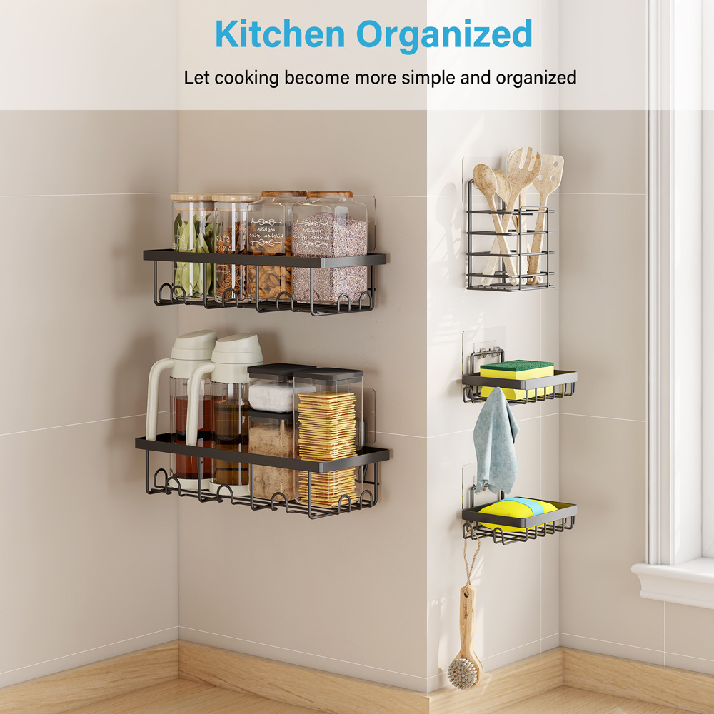 铁艺免打孔浴室置物架卫生间洗漱用品收纳架肥皂盒厨房用具收纳架