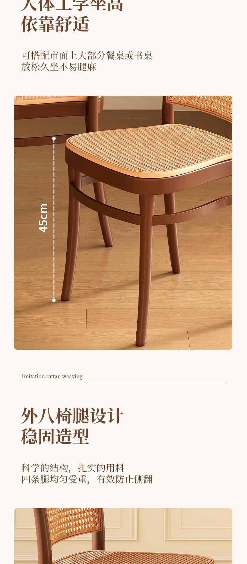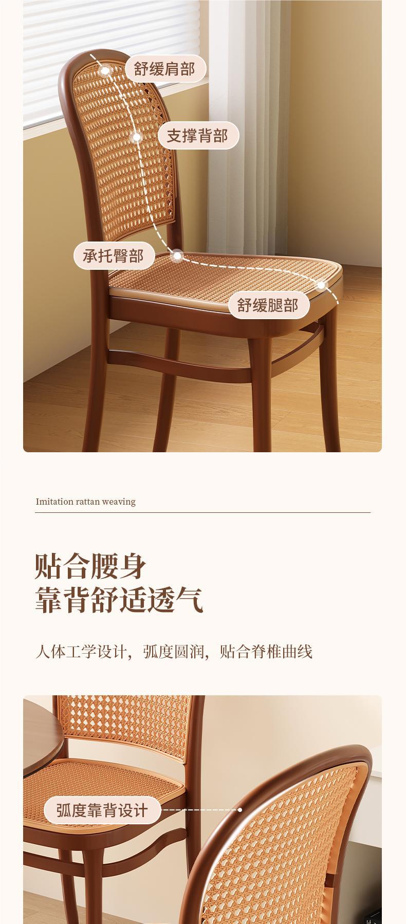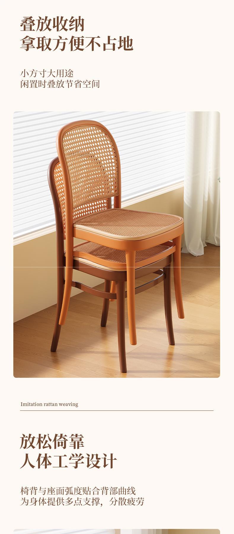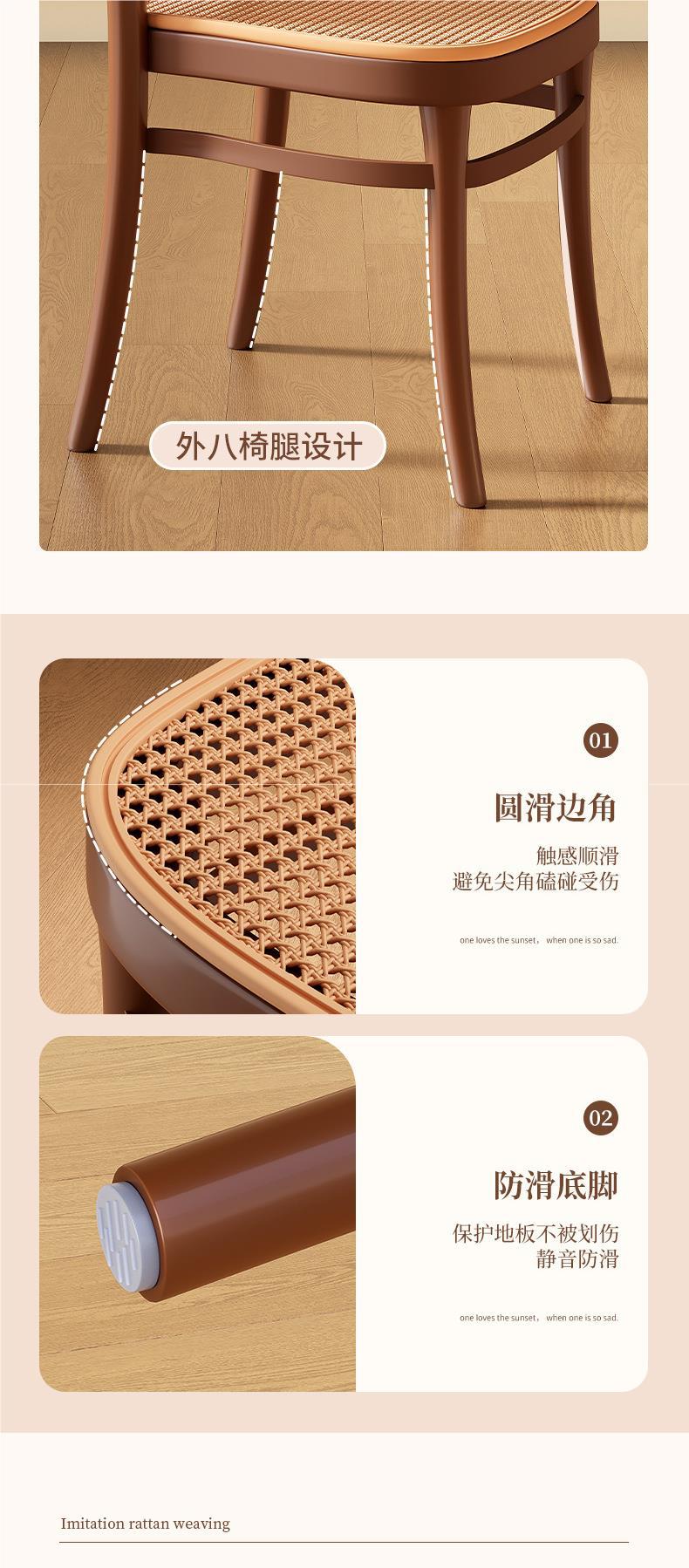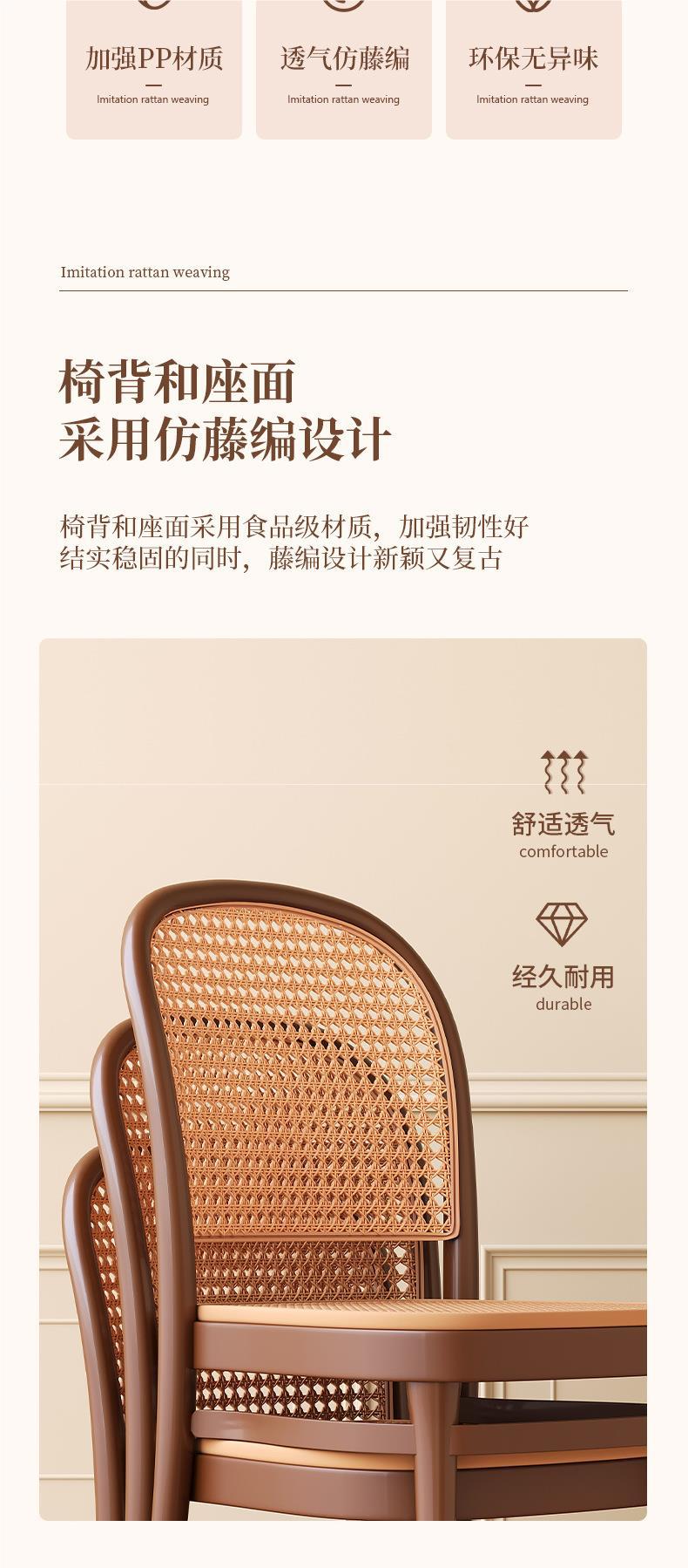 AL 플라스틱 등나무 의자 등받이 의자 가정용 두꺼운 식당 의자 중세 모조 단단한 나무 식탁 의자 야외 식사스토어 가기