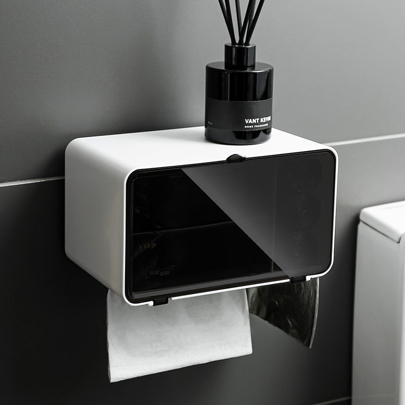 욕실 펀치없는 티슈 상자 벽걸이 형 자기 수납 선반 화장실 화장지 롤 홀더 수납 화장지 상자