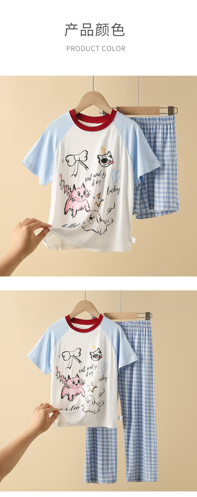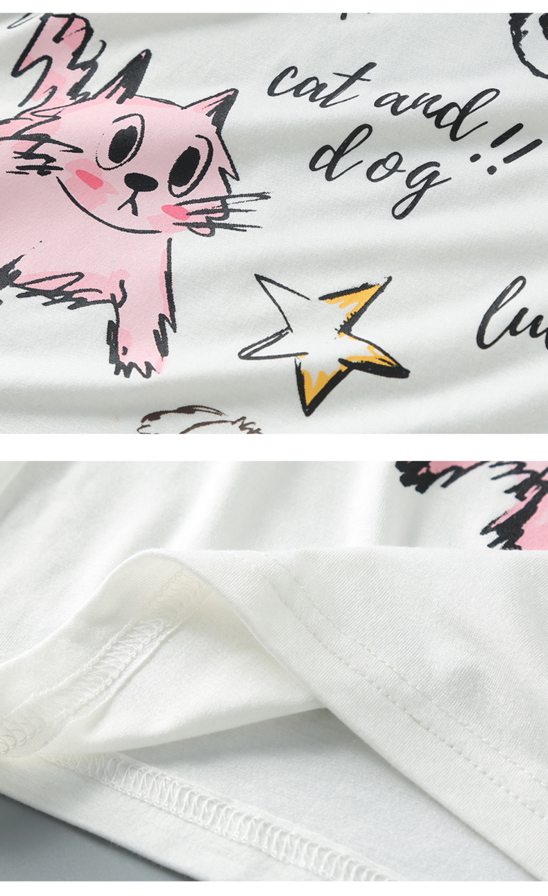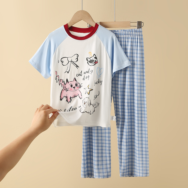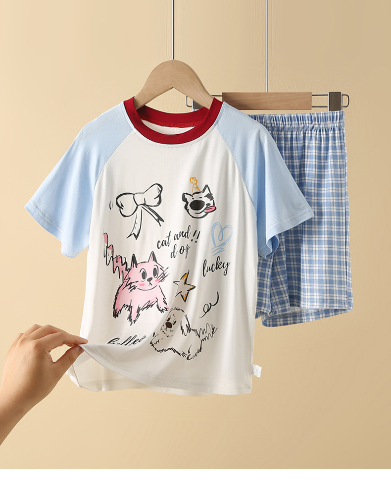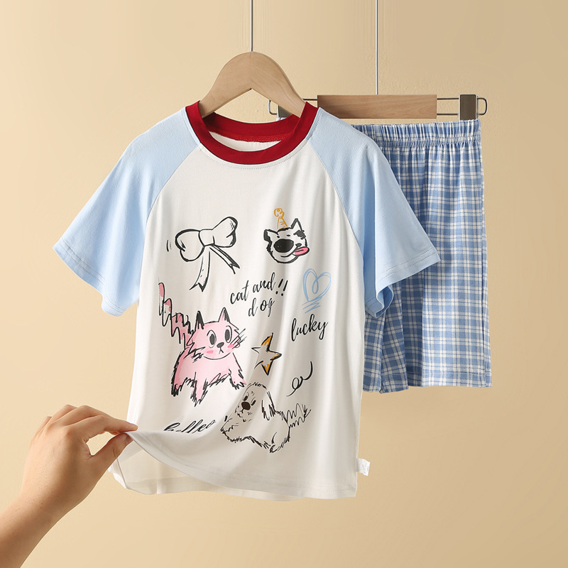 얇은 모달 소재 여아 반팔 잠옷 세트, 통기성 좋은 중대형 아동용 홈웨어 투피스 세트, 새로운 만화 디자인스토어 가기