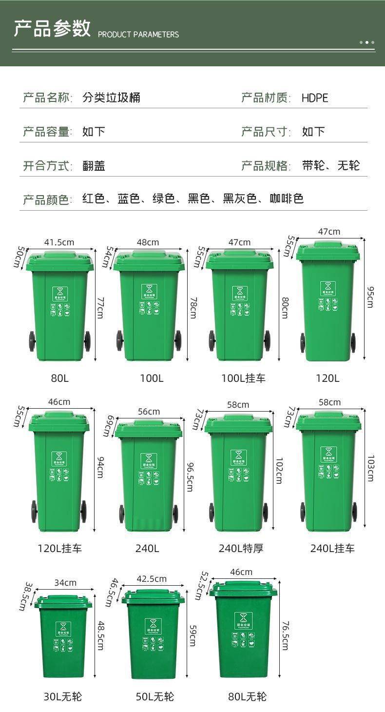 대용량 실외 쓰레기통, 산업용 분류 음식물 쓰레기, 뚜껑이 있는 실외 상업용 대형 위생 상자, 건식 및 습식 트레일러스토어 가기