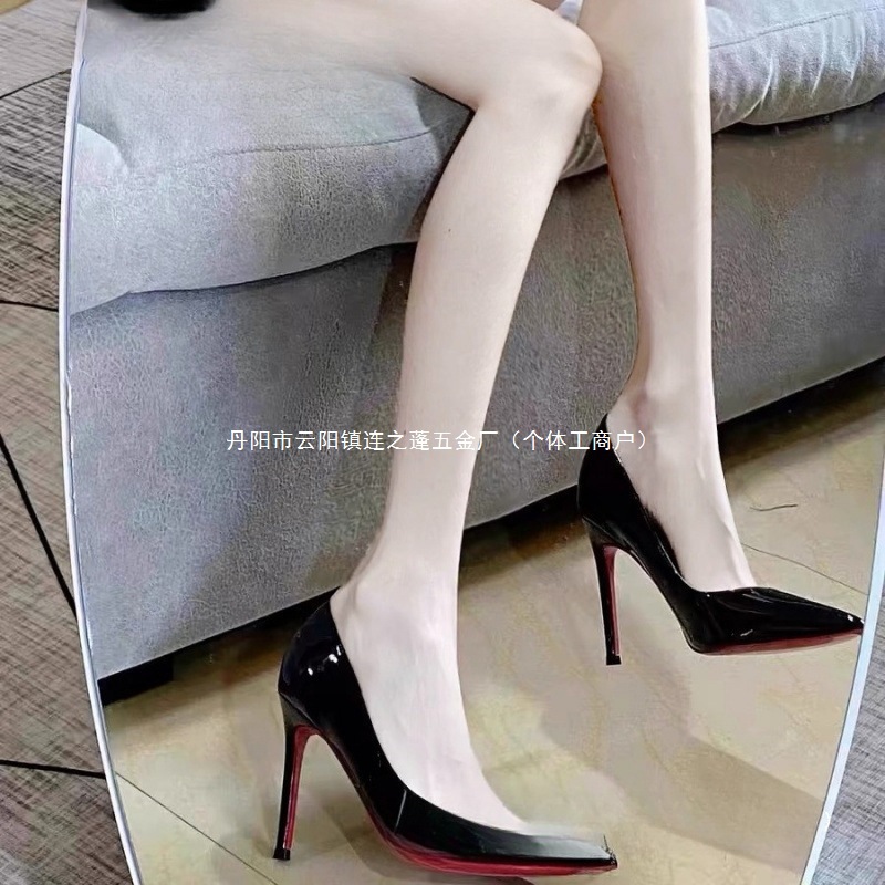 섹시한 빨간색 하이힐 여성 전문 스틸레토 신작 봄 블랙 페이턴트 가죽 사이드 빈 포인티드 토 여성용 모조 가죽 재고 있음스토어 가기