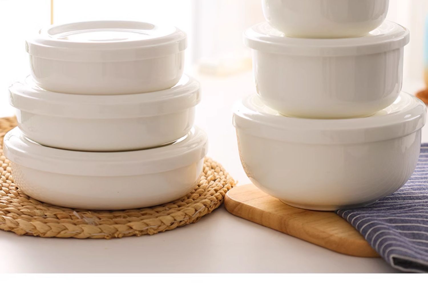 계란찜 접시, 야채 찜 그릇, 국수 그릇, 순백색 가정용 원형 접시, 세라믹 수프 접시, 저녁 식사 접시, 뚜껑이 있는 깊은 접시스토어 가기