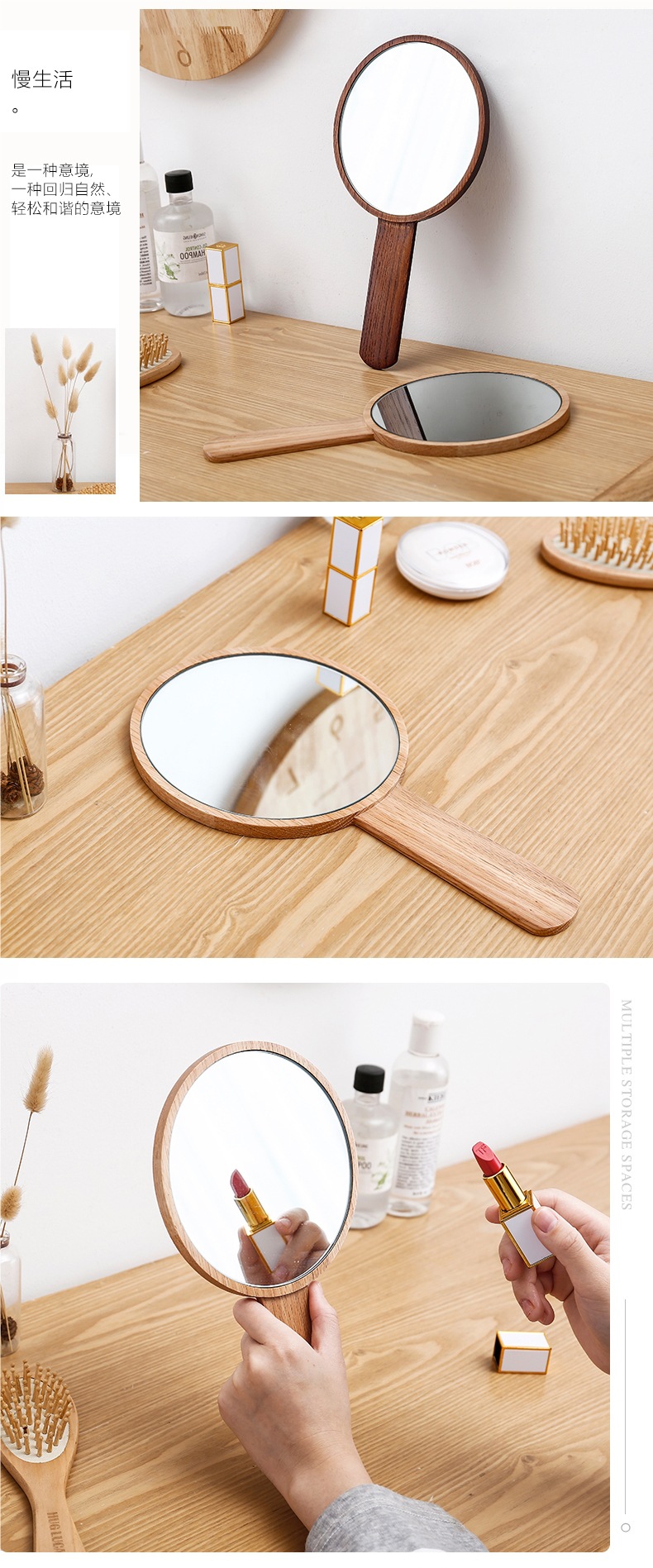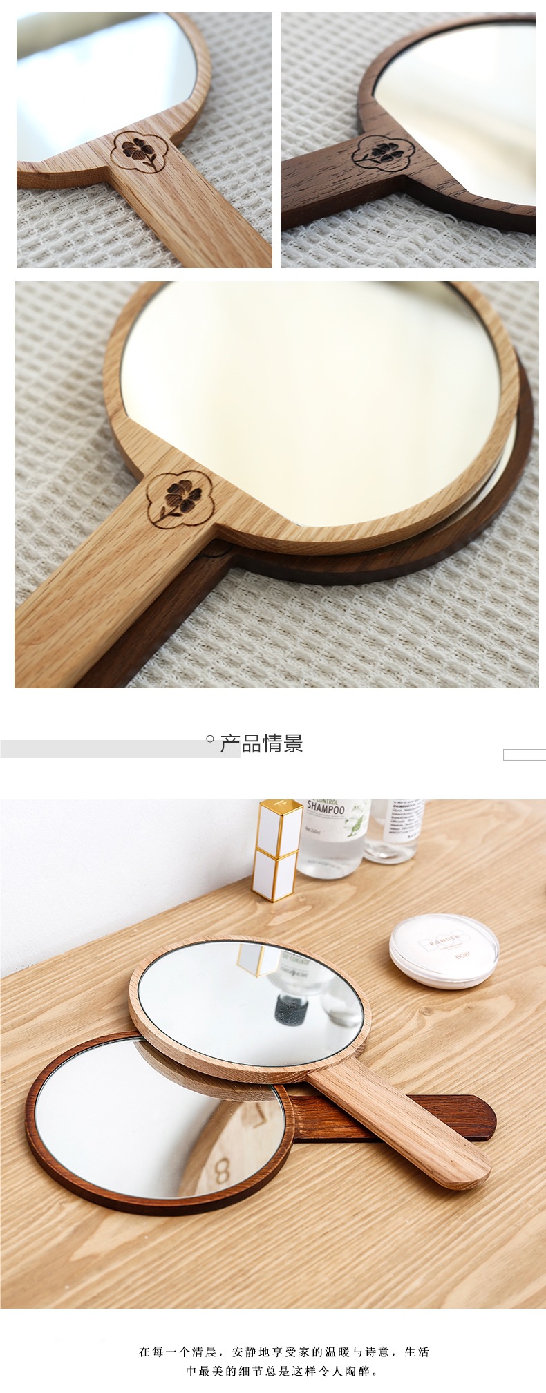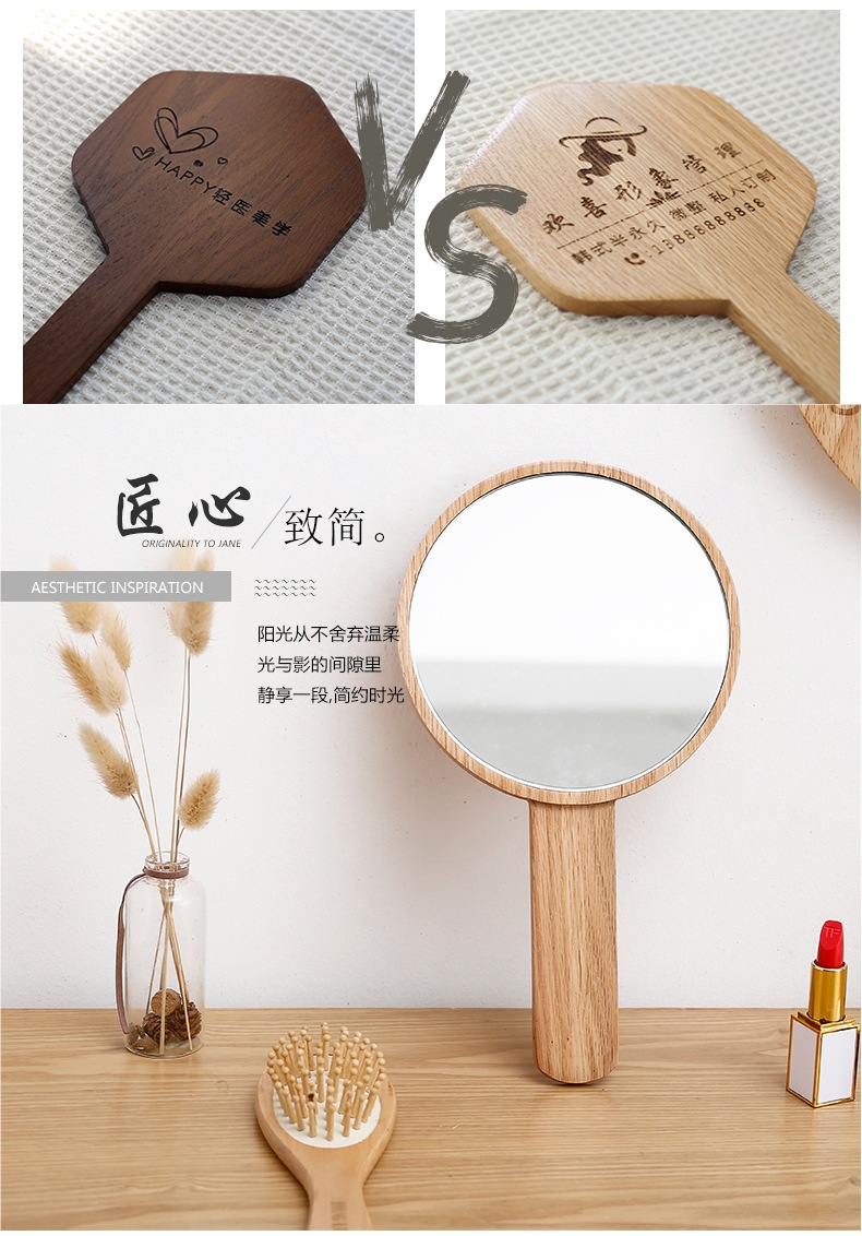 단단한 나무 손잡이 화장 거울 중국 스타일 휴대용 거울 대형 휴대용 미용실 로고 새겨진 화장대스토어 가기