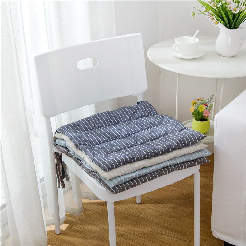 심플한 줄무늬 얇은 쿠션 면과 린넨 일본식 문학 식당 의자 쿠션 미끄럼 방지 통기성 사무실 여름 학생 의자