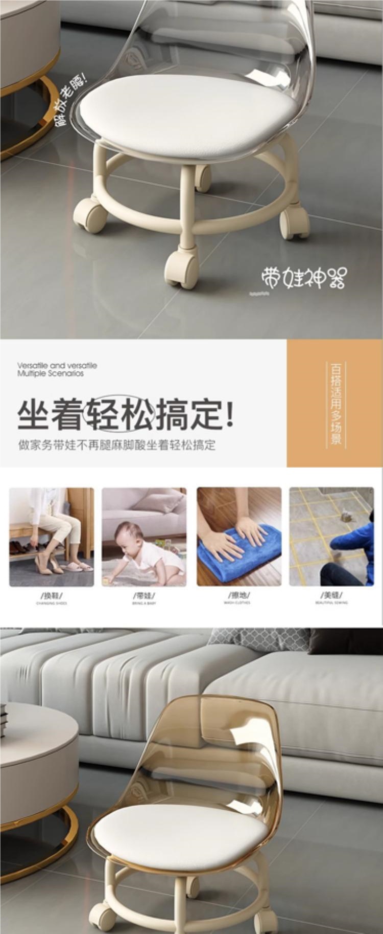 유니버설 휠이 달린 아크릴 작은 의자 어린이 유아 의자 인터넷 연예인 작은 의자 도르래 낮은 의자 아름다운 바느질 의자