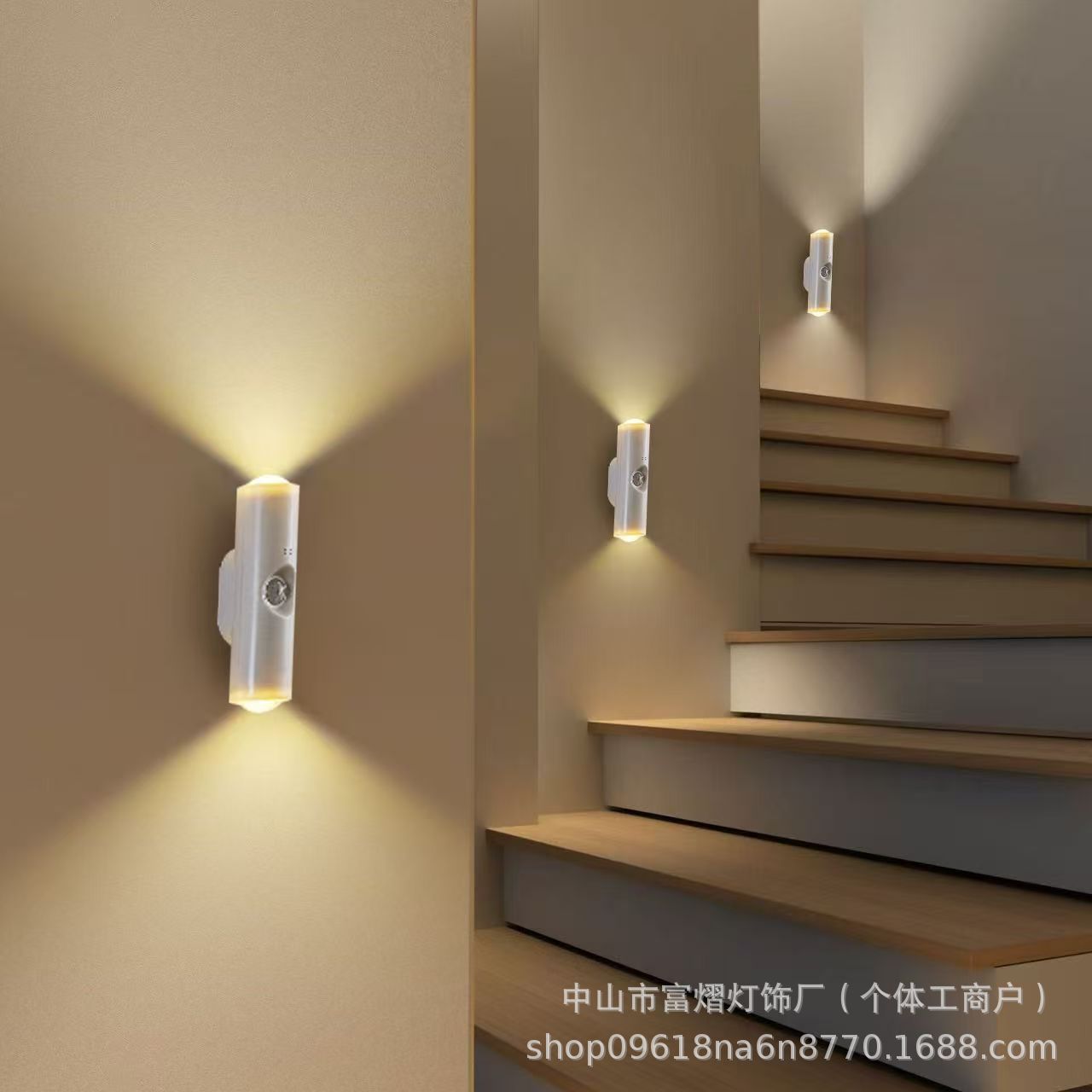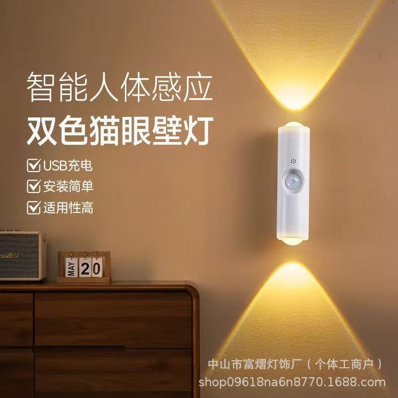 새로운 크로스보더 무선 벽등, 배선 및 구멍 뚫을 필요 없음, 분위기 조명, 센서, 자석 부착, USB 충전, 듀얼 캣아이 벽등