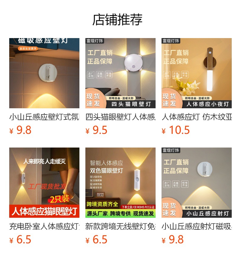 새로운 크로스보더 무선 벽등, 배선 없음, 펀칭 없음, 분위기 조명, 야간 조명, 센서형 자석식 USB 듀얼 캣아이 벽등스토어 가기