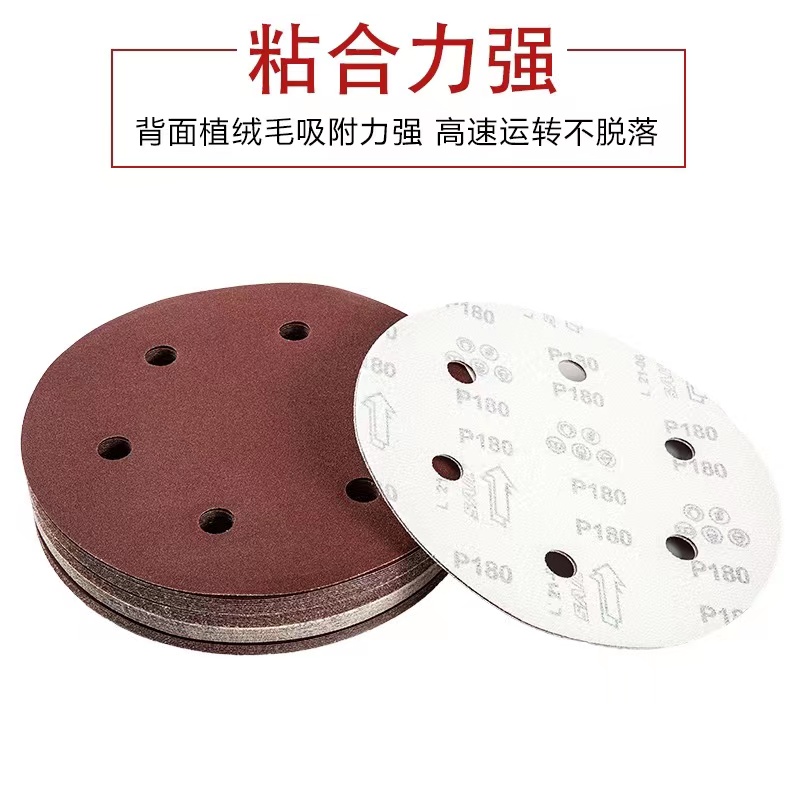 9인치 6홀 빨간색 사포 22cm 벽 연마 사포 디스크 플로킹 자체 접착 연삭 시트 퍼티 연마 연삭 시트
