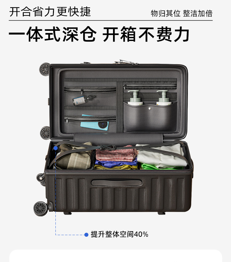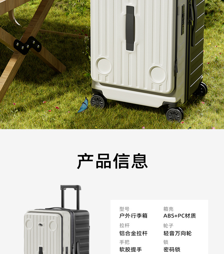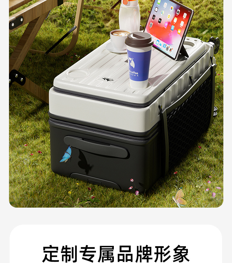 2025 새로운 야외 수하물 초대형 휠 측면 개방형 통합 깊은 창고 트롤리 케이스 26inch 캠핑 여행을위한 대용량