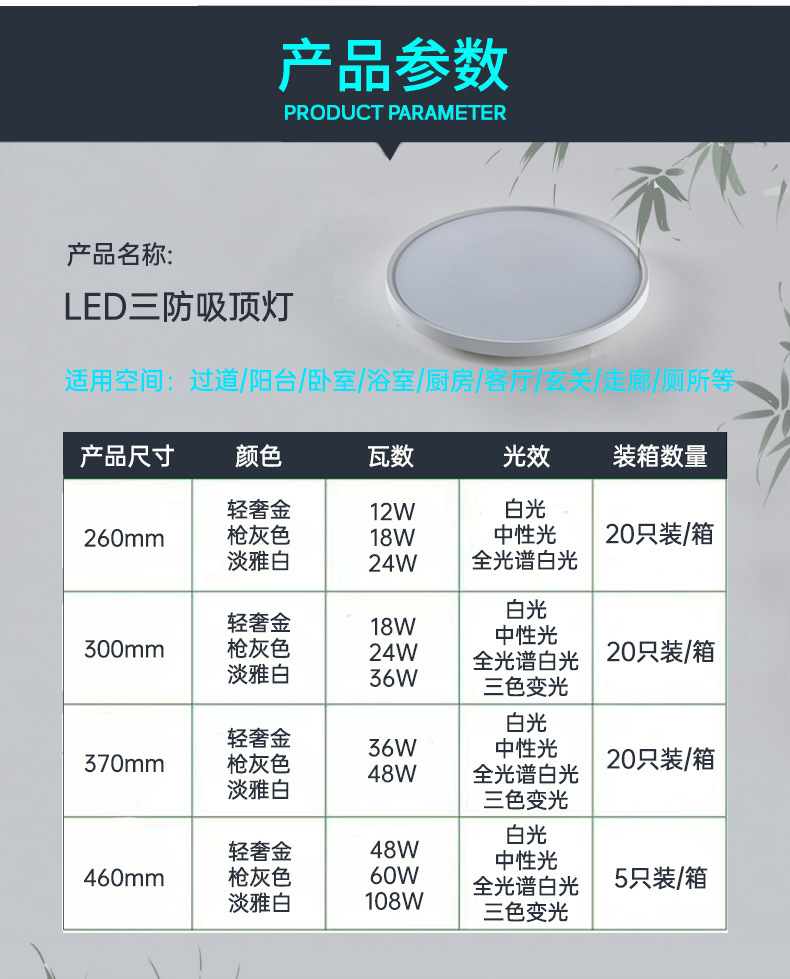 LED 천장 조명, 욕실 모기 방지, 발코니 센서 계단 조명, 침실 통로 문 처마 조명, 국경 간 도매