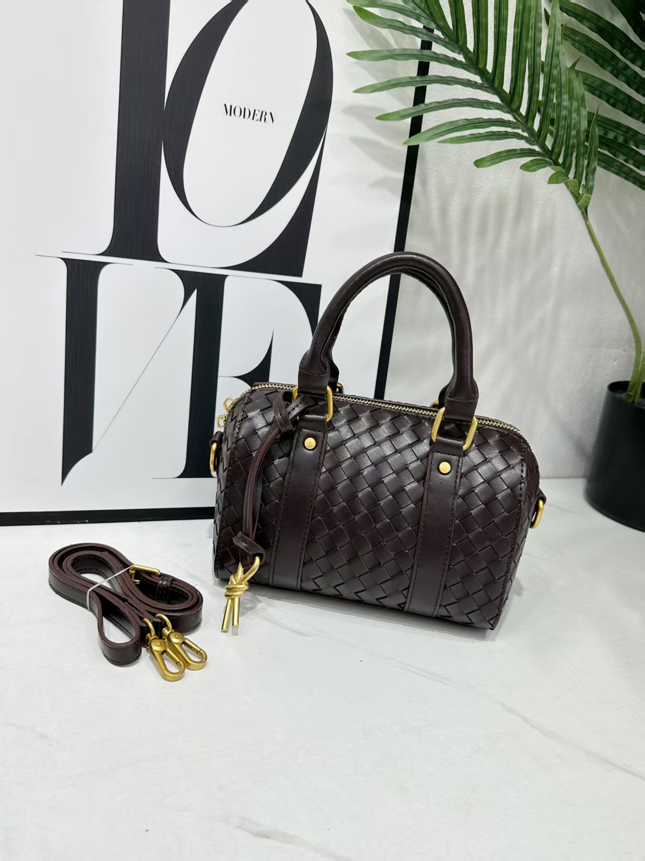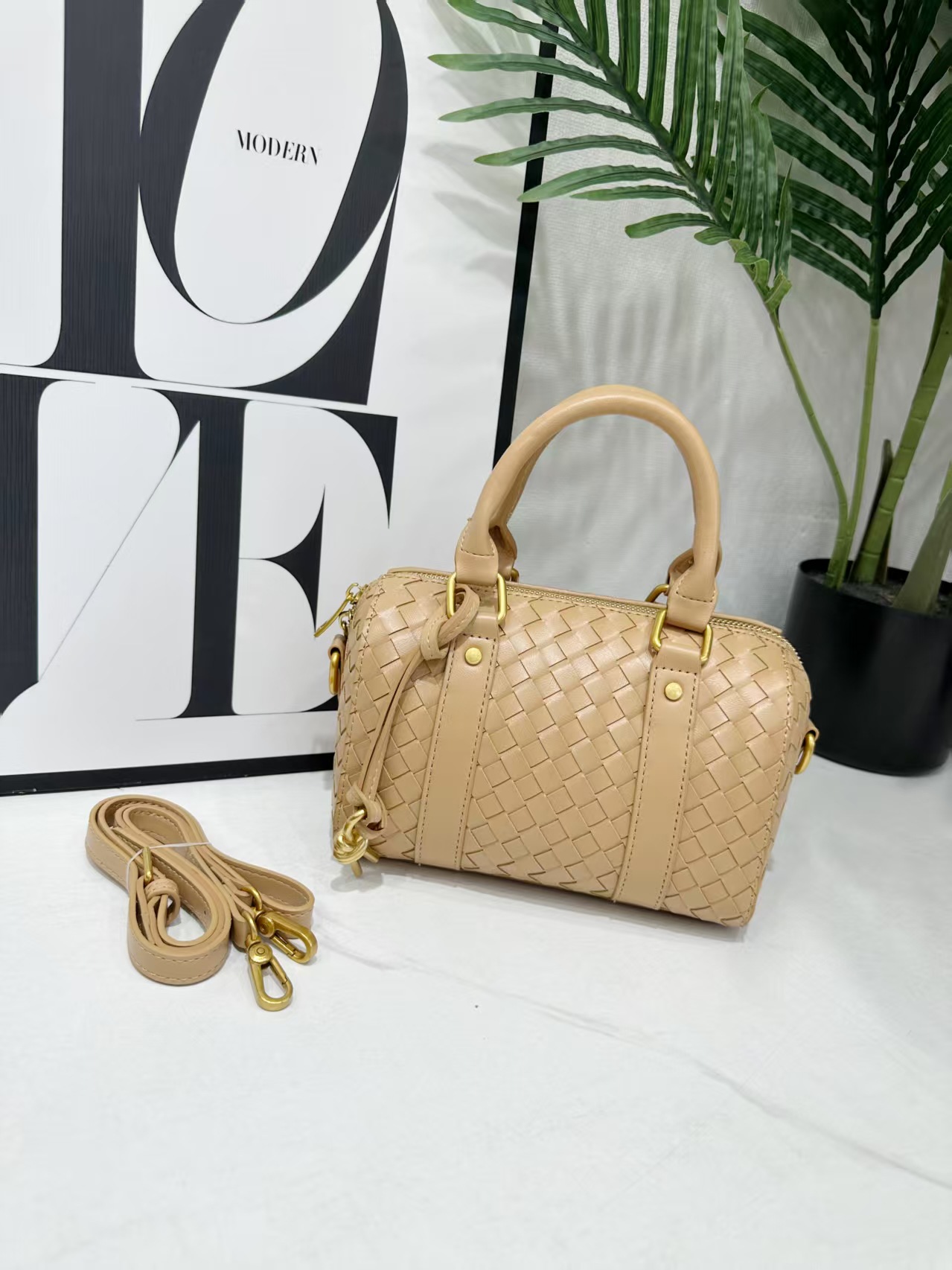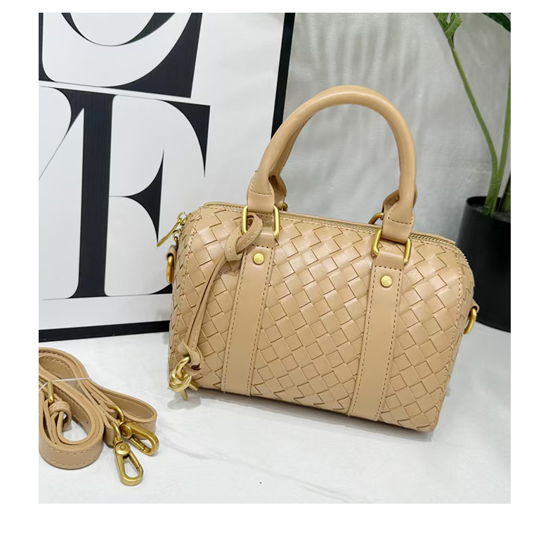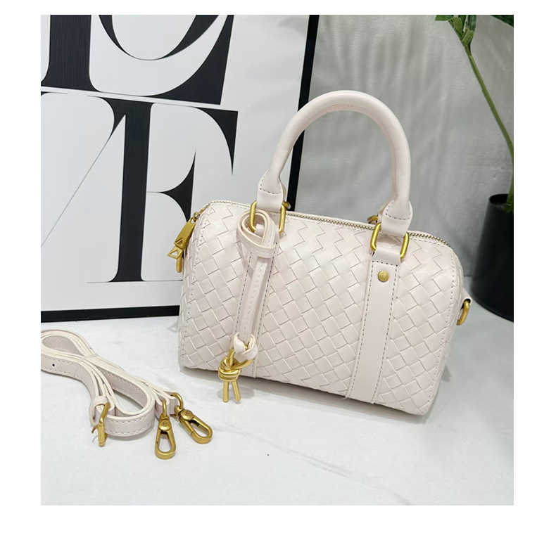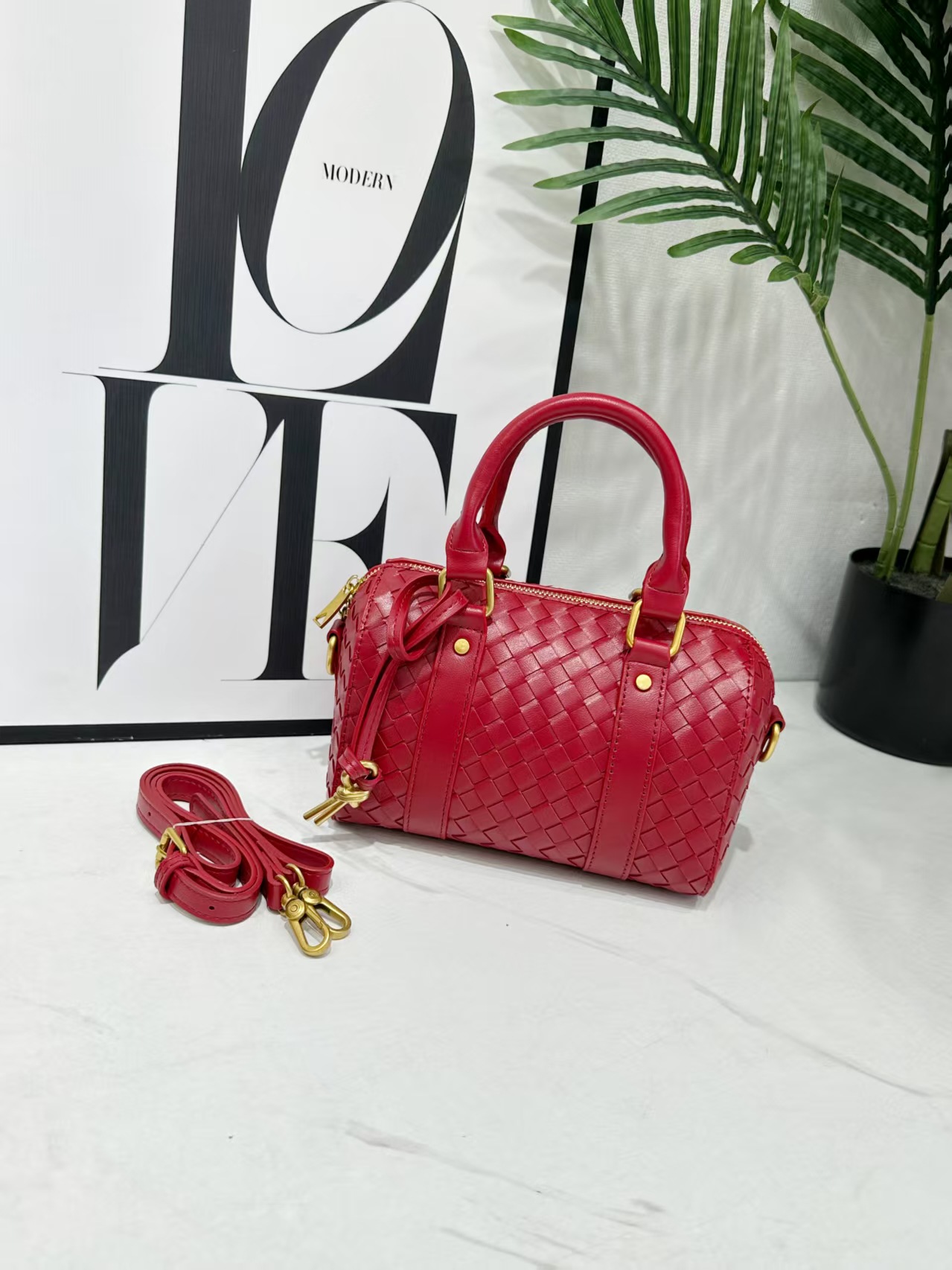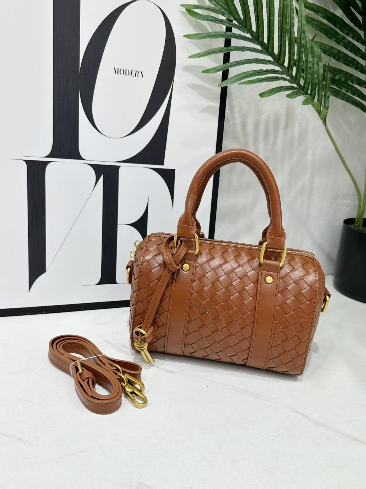 보스턴 스몰 트래블백, 1층 소가죽 우븐백, 핸드백, 숄더 크로스백, 다용도 소가죽 우븐백