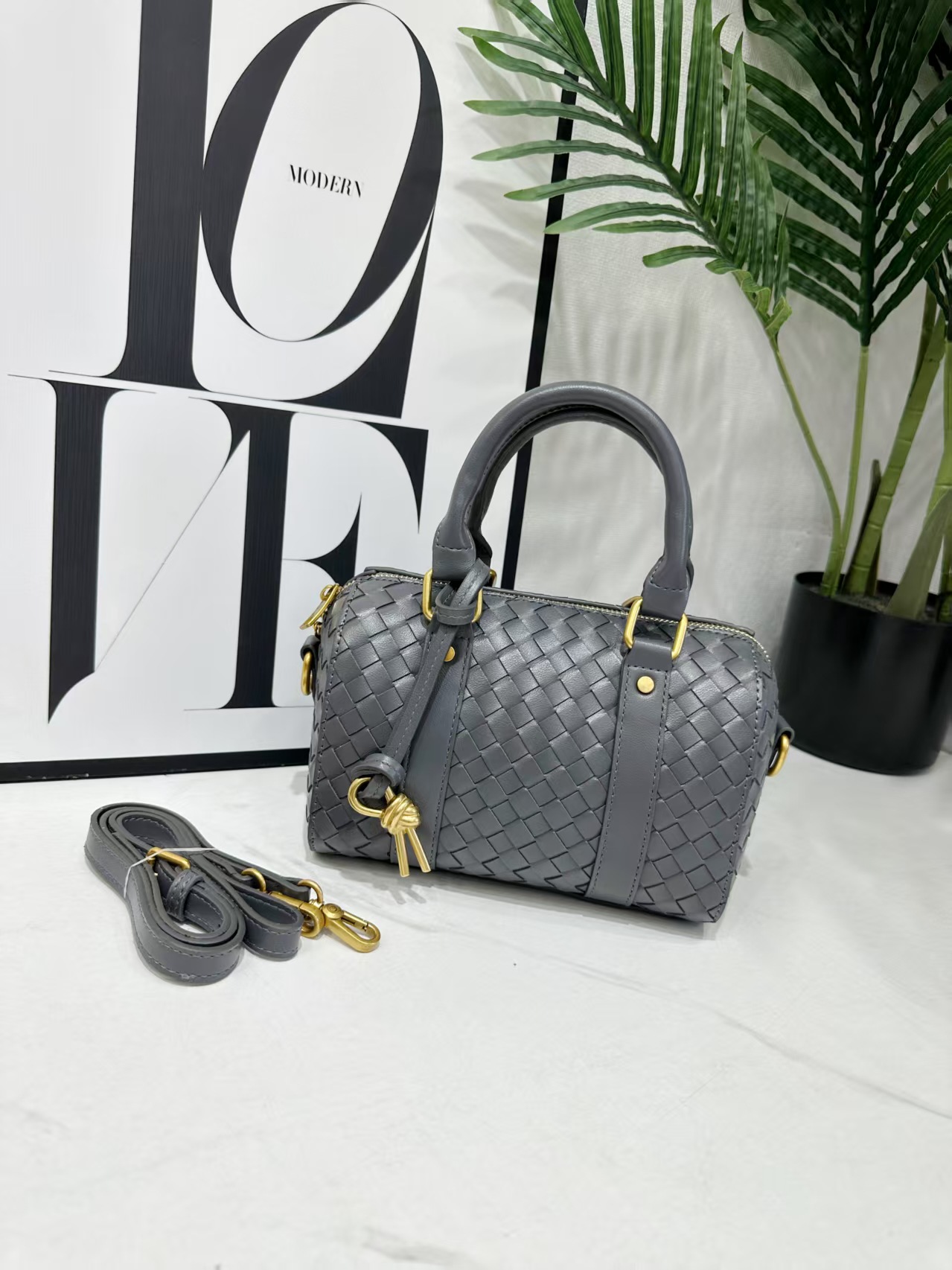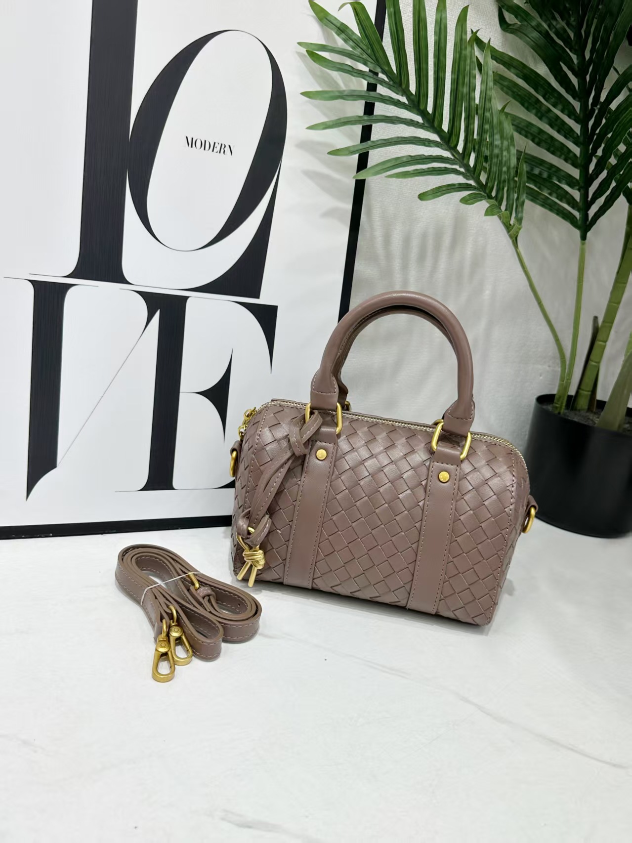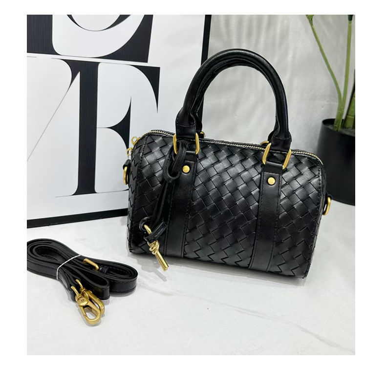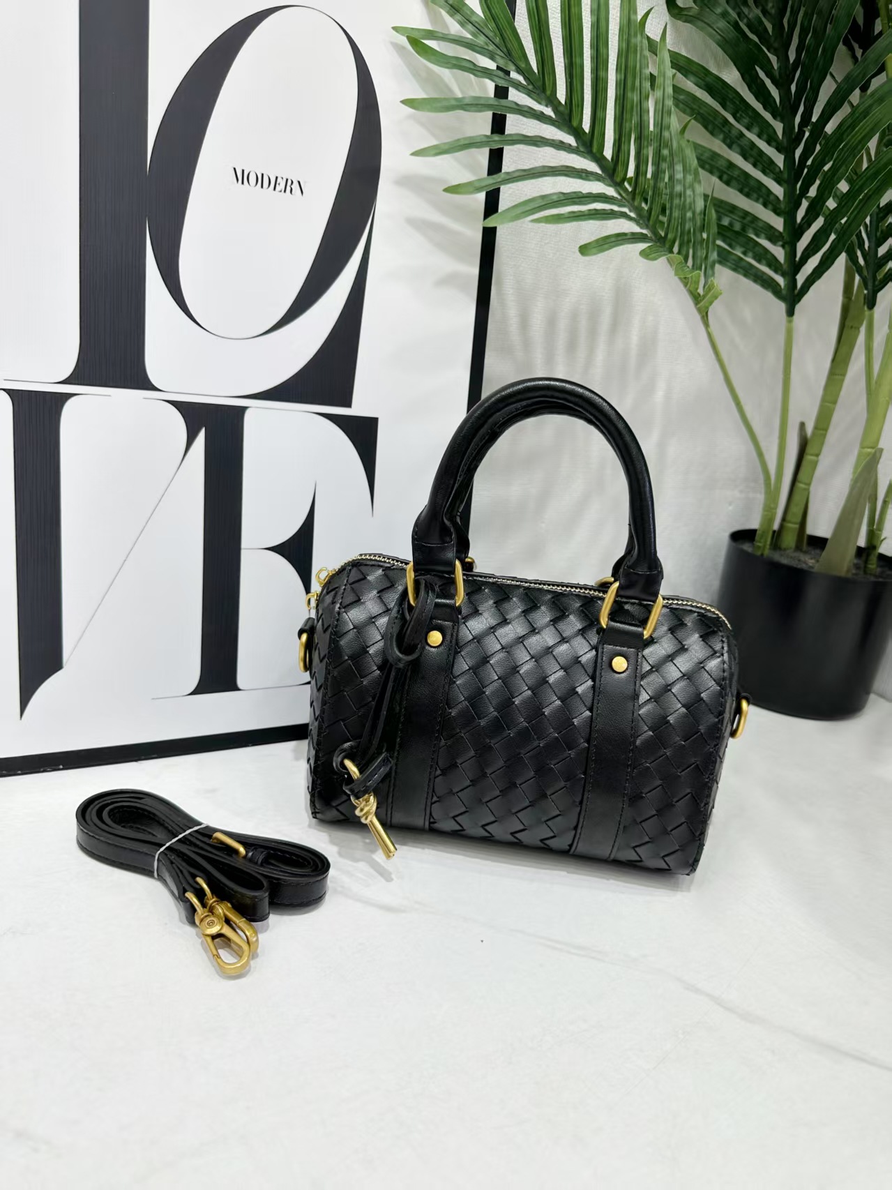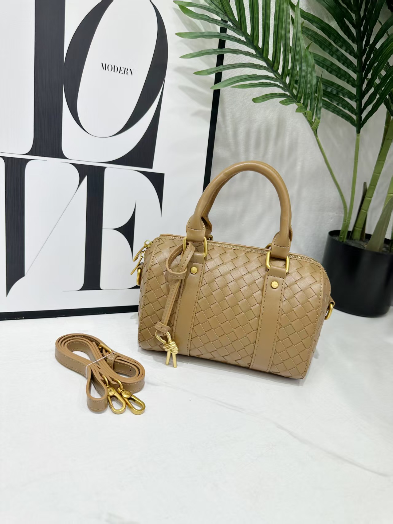보스턴 스몰 트래블백, 1층 소가죽 우븐백, 핸드백, 숄더 크로스백, 다용도 소가죽 우븐백