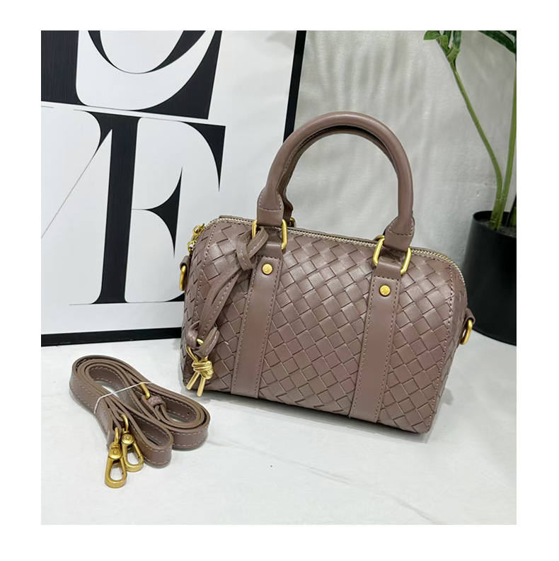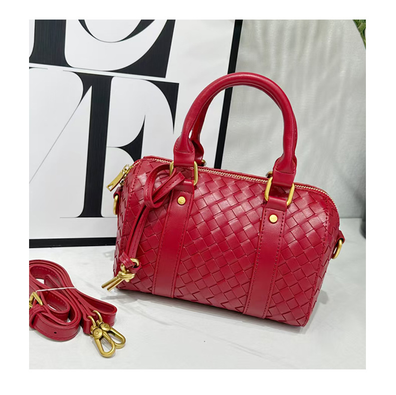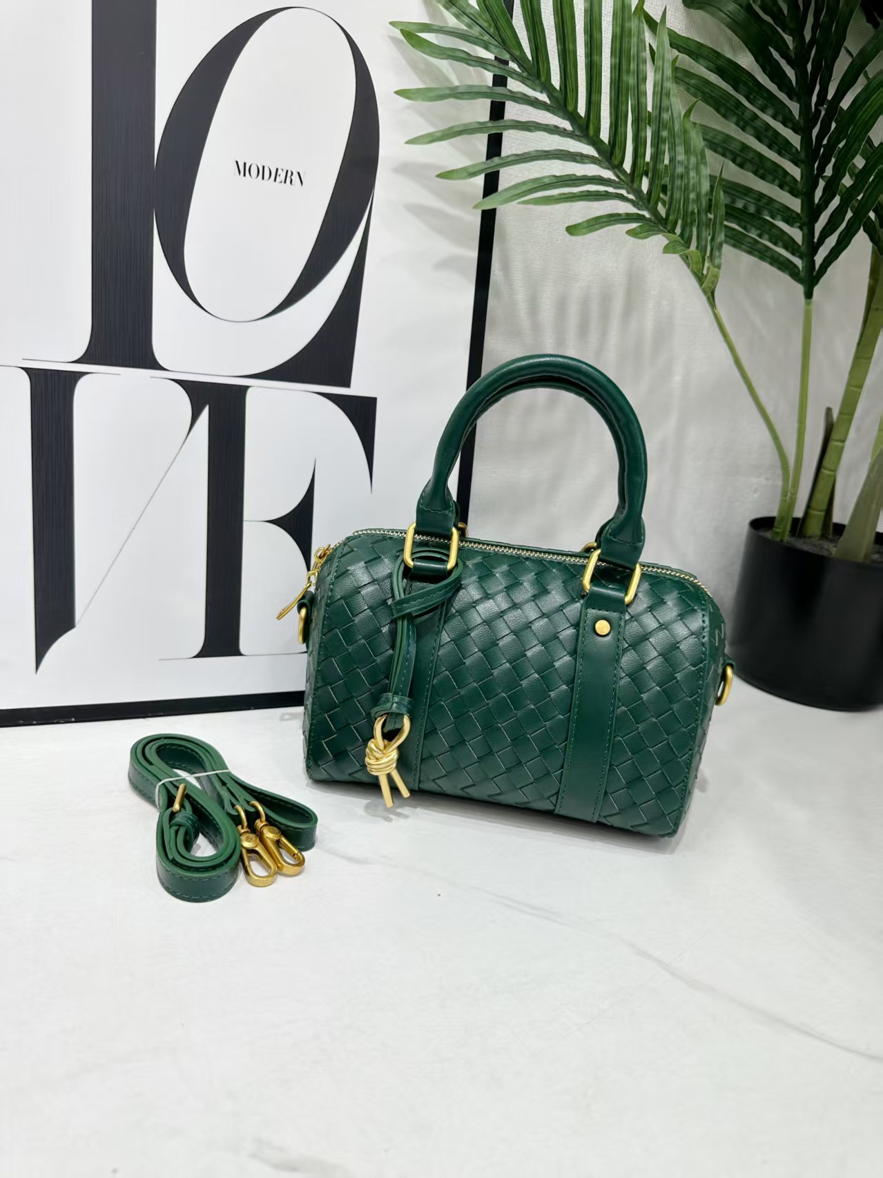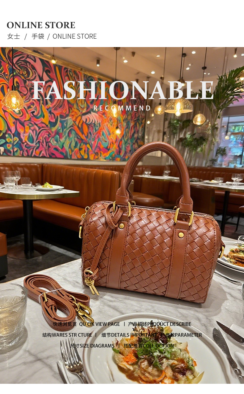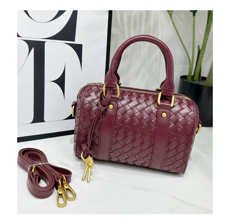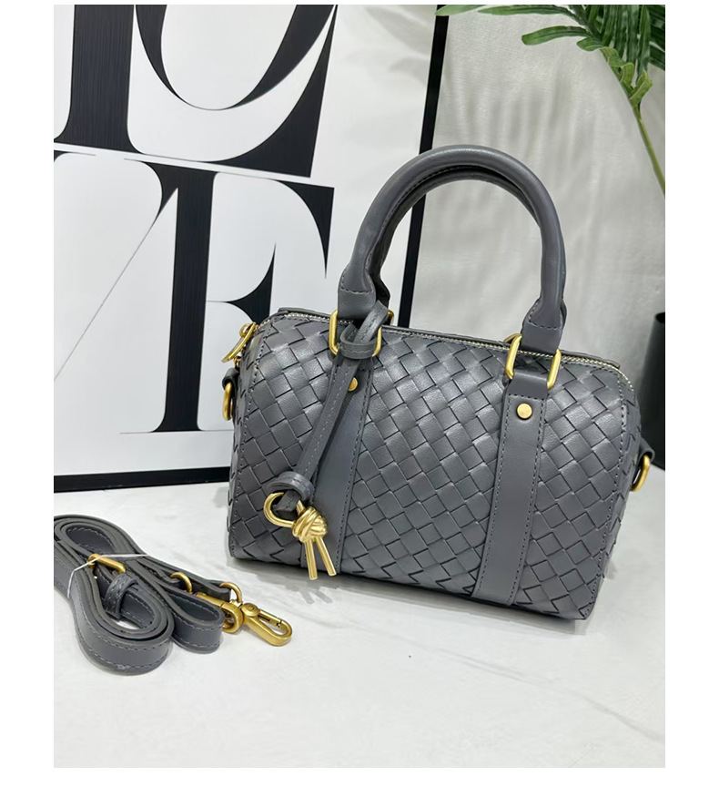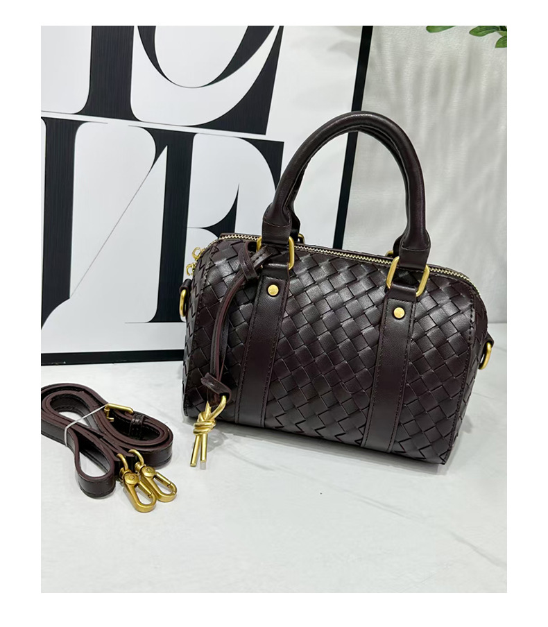 보스턴 스몰 트래블백, 1층 소가죽 우븐백, 핸드백, 숄더 크로스백, 다용도 소가죽 우븐백