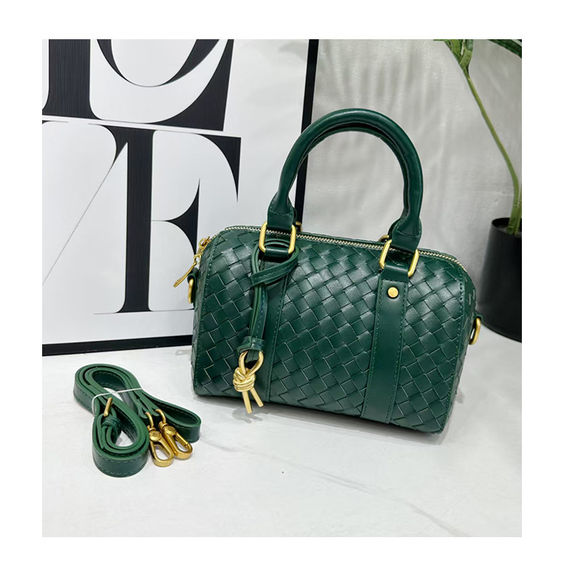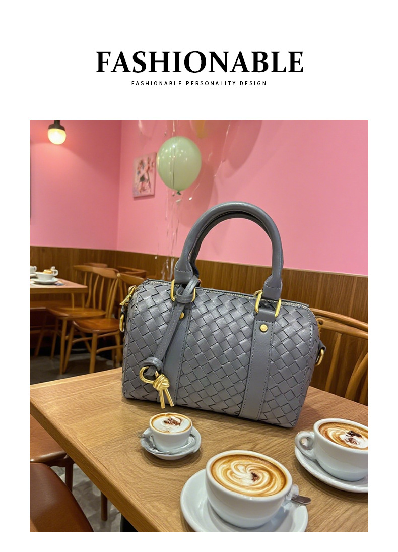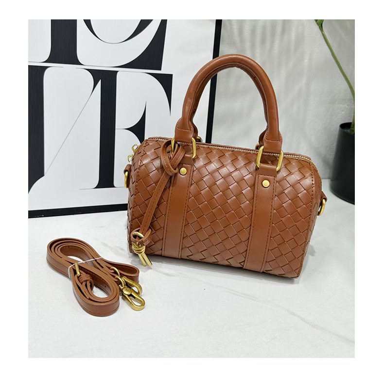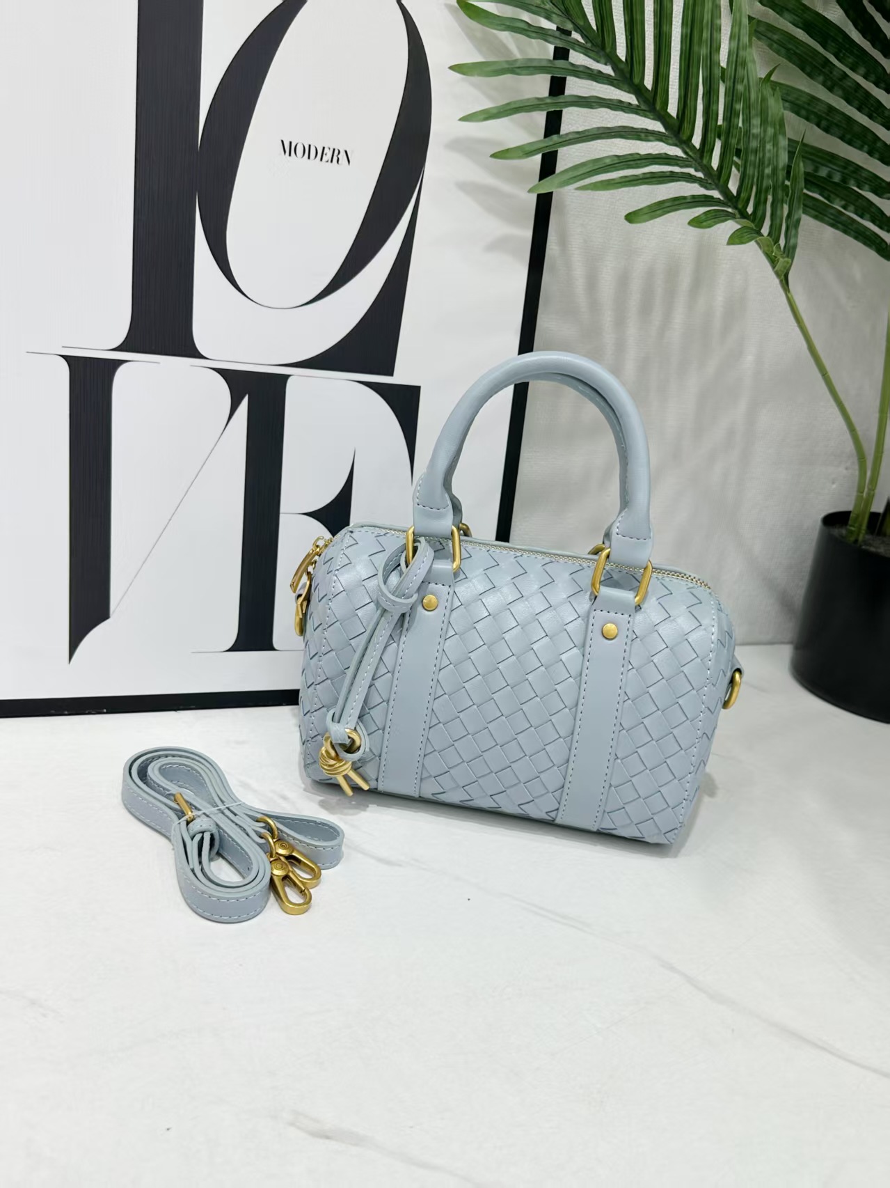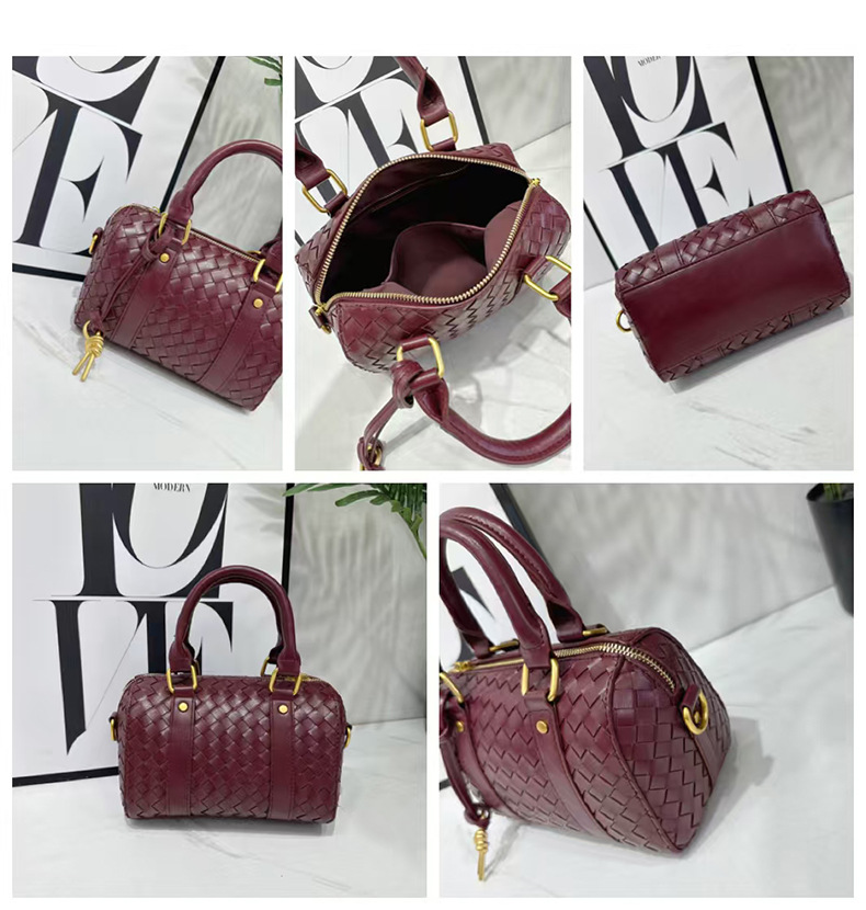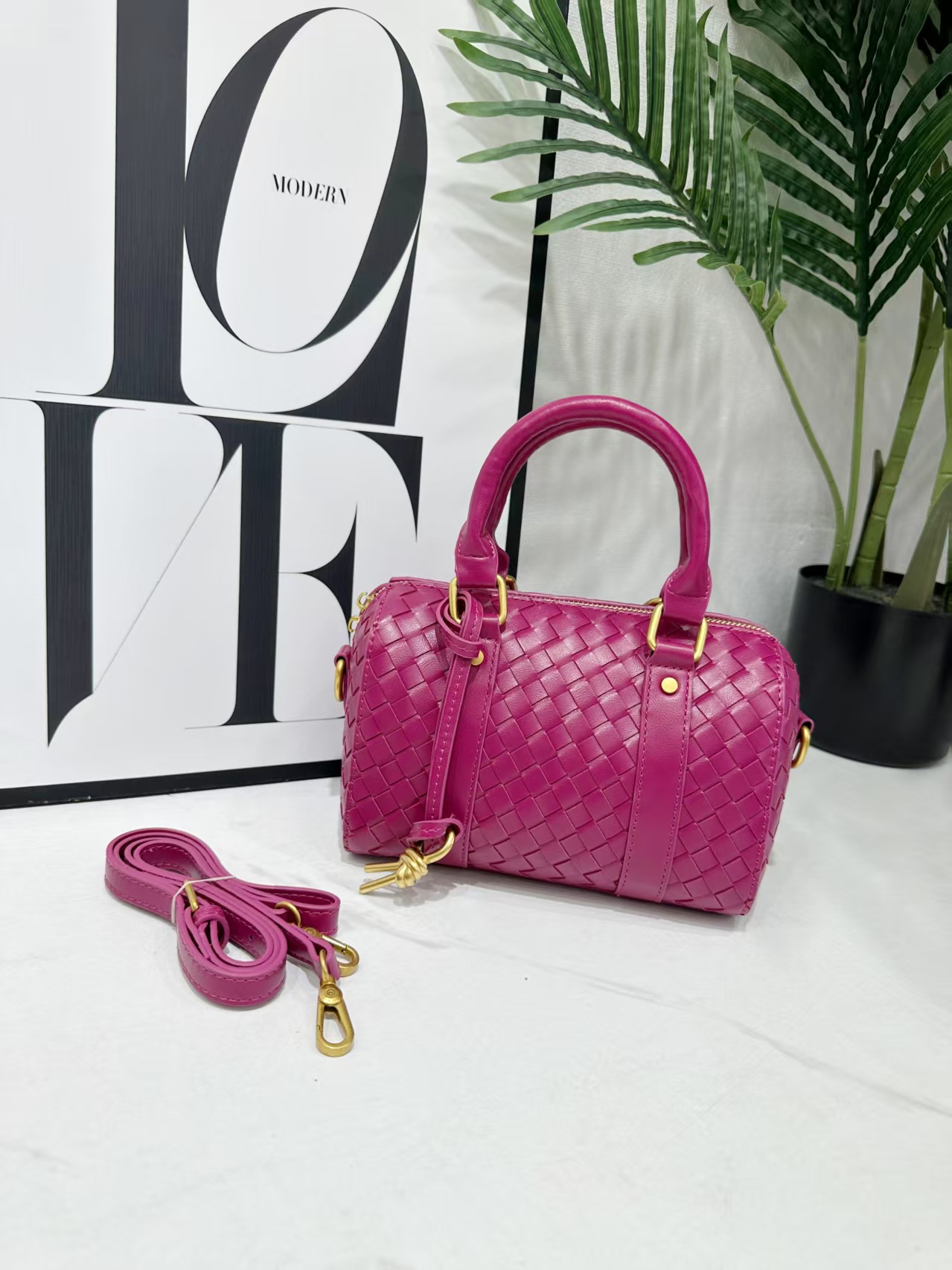보스턴 스몰 트래블백, 1층 소가죽 우븐백, 핸드백, 숄더 크로스백, 다용도 소가죽 우븐백