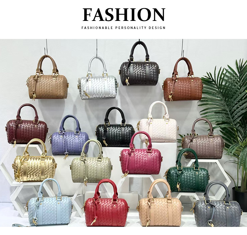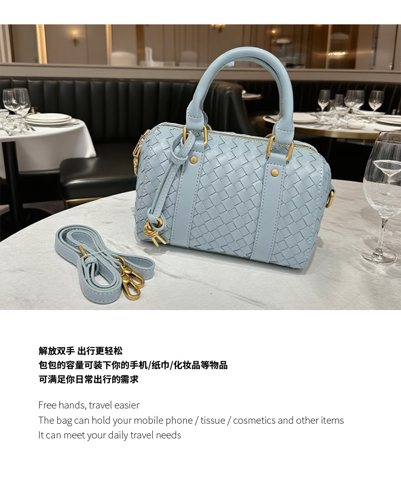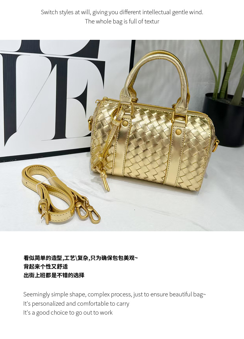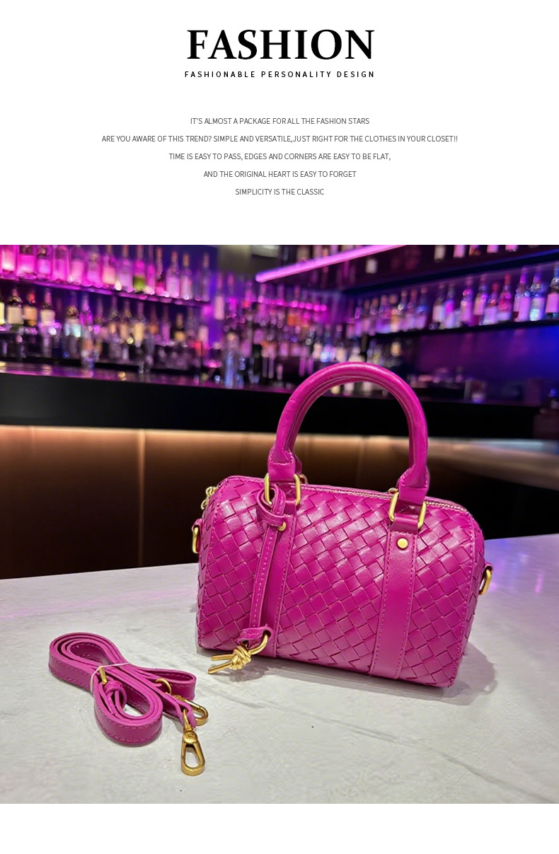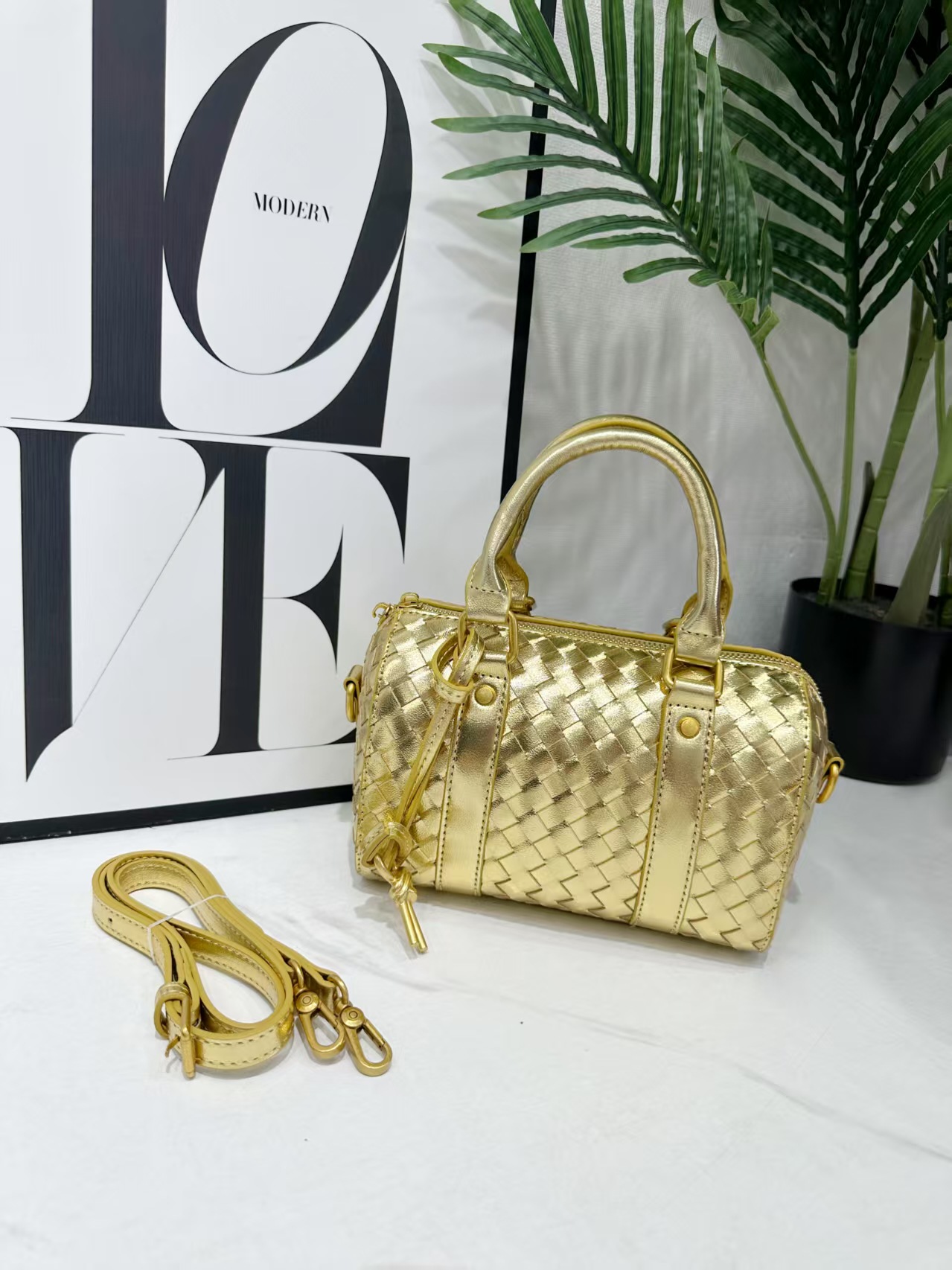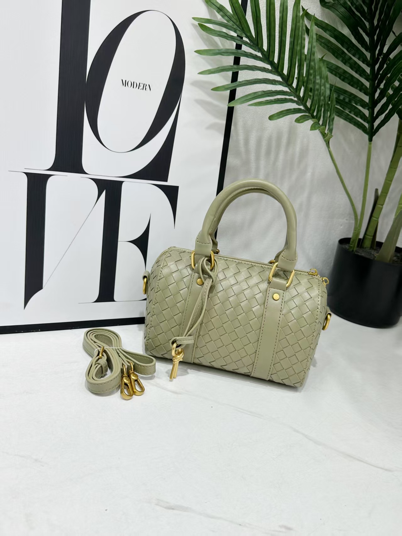 보스턴 스몰 트래블백, 1층 소가죽 우븐백, 핸드백, 숄더 크로스백, 다용도 소가죽 우븐백