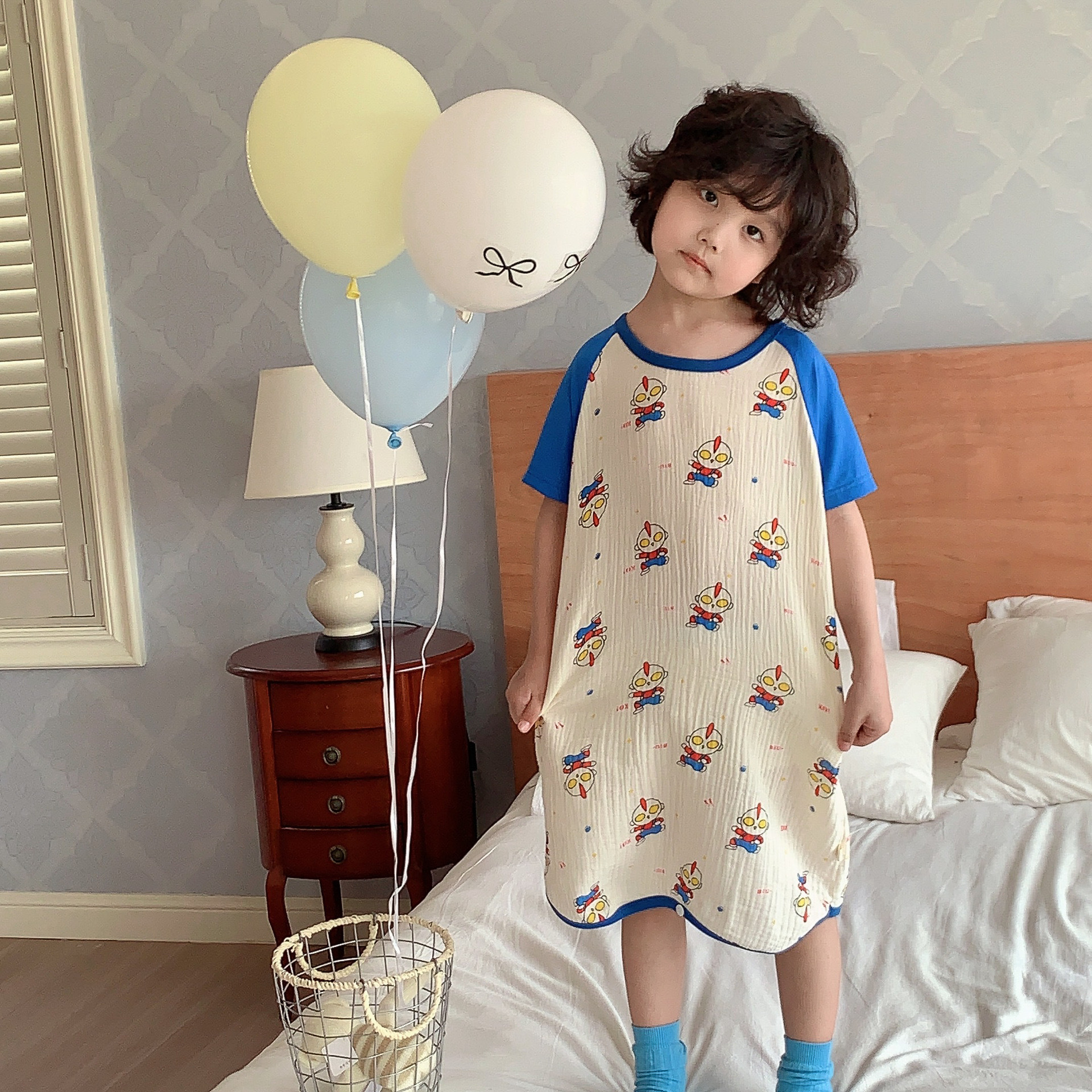 특별 가격 여름 새 아기 더블 레이어 거즈 잠옷 남성과 여성 어린이 잠옷 유아 반팔 침낭