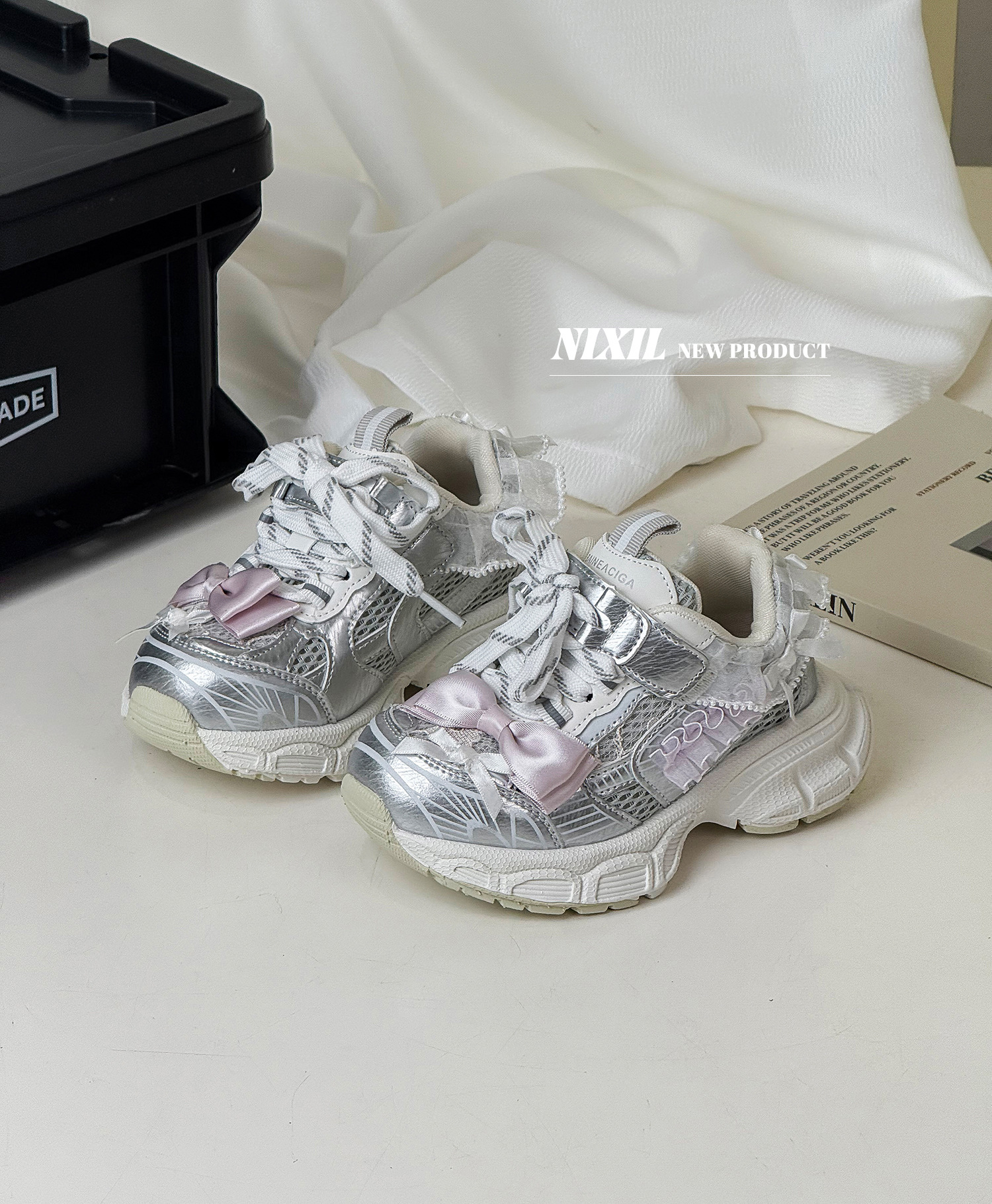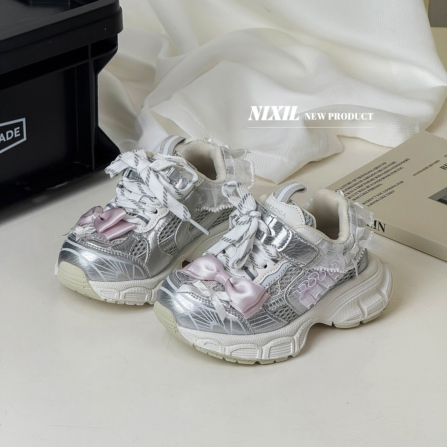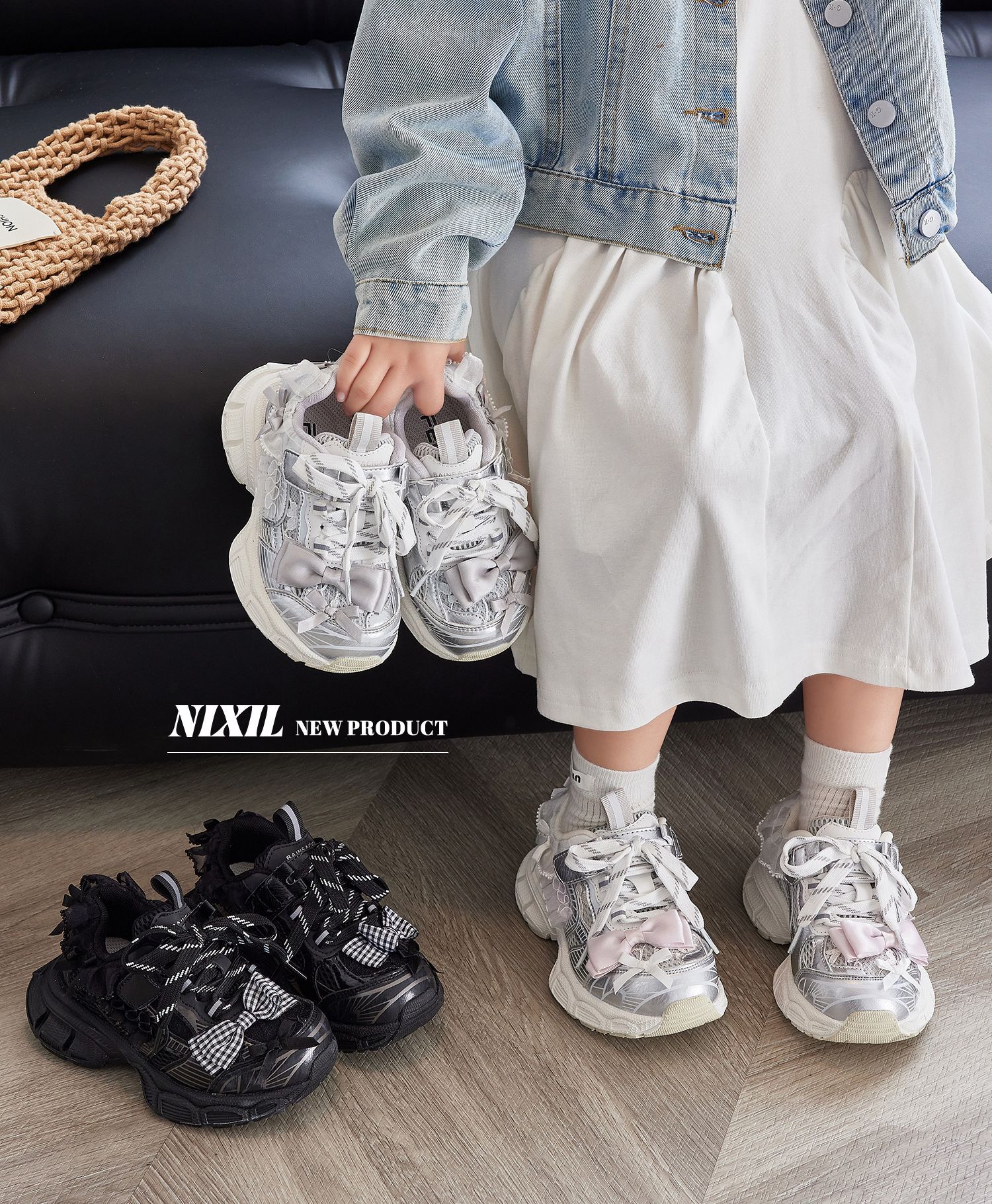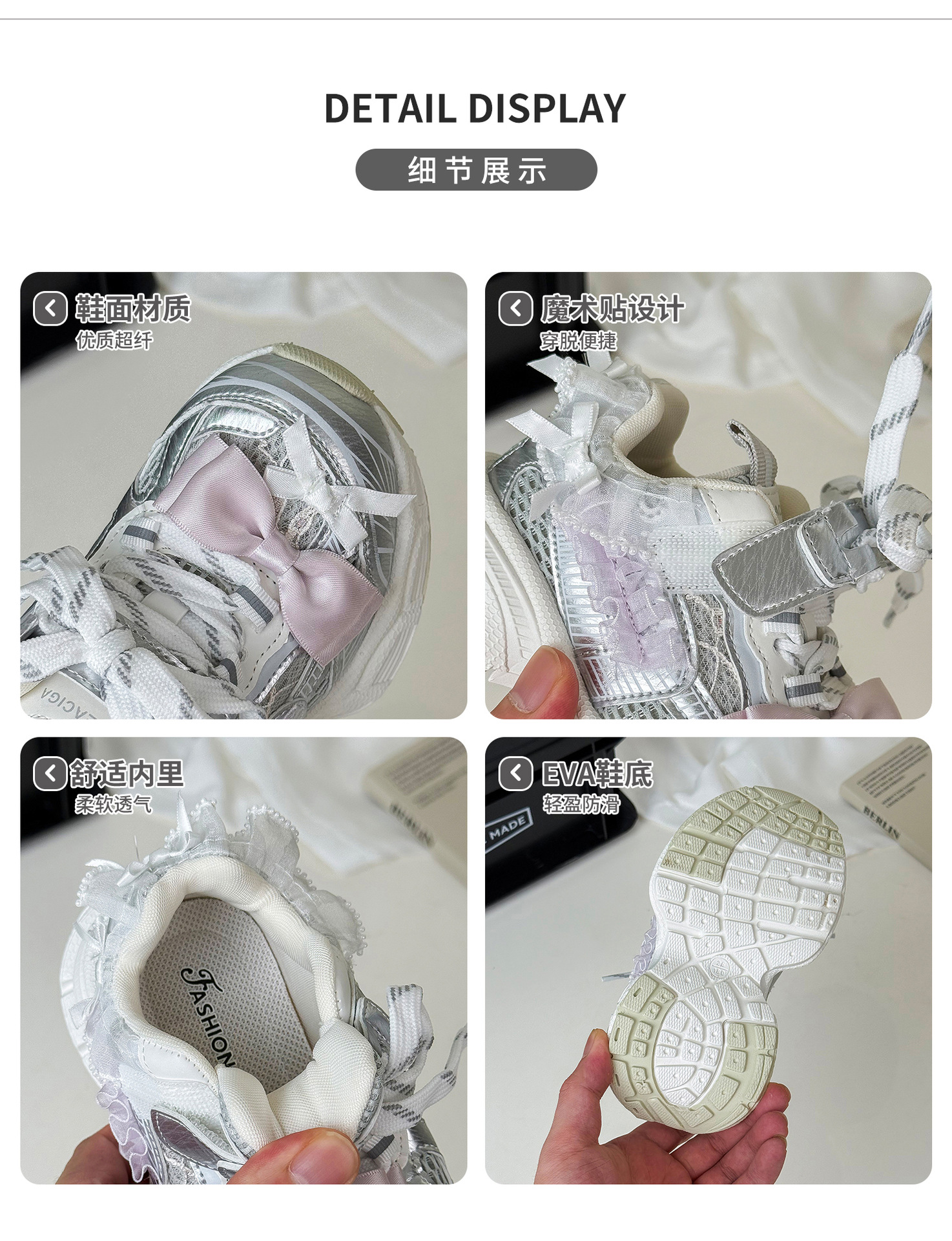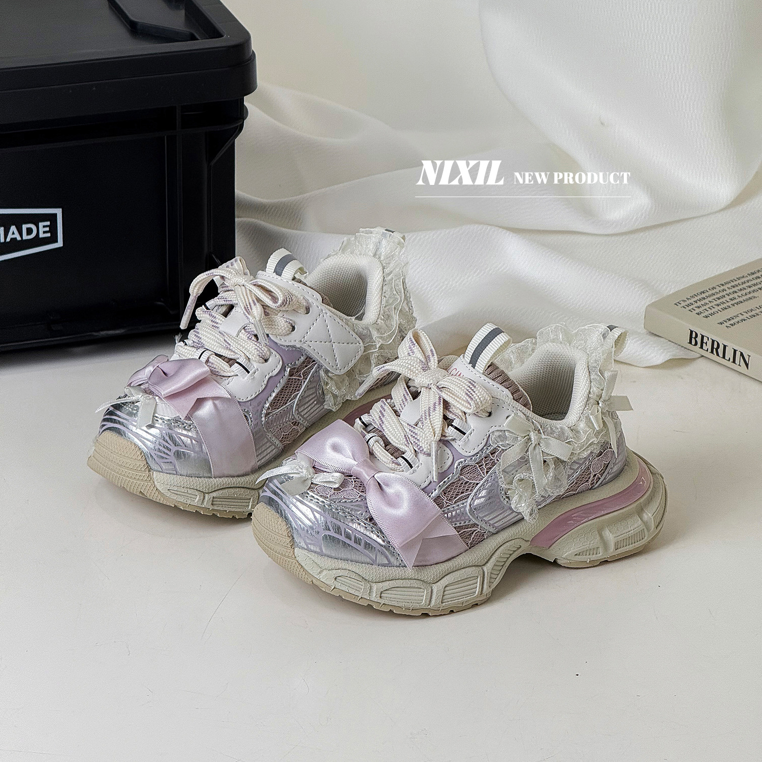 2025 새로운 가을 소녀 운동화 귀여운 나비 레이스 공주 캐주얼 신발 두꺼운 밑창 어린이 아빠 신발스토어 가기