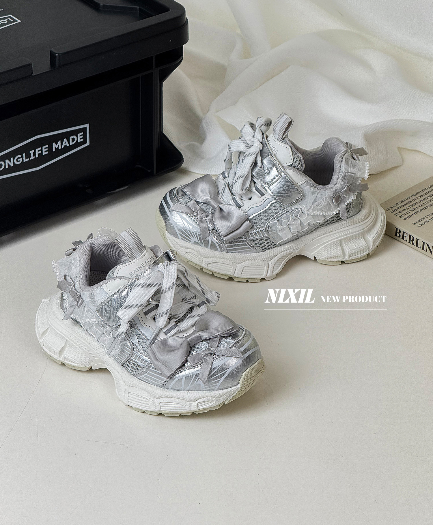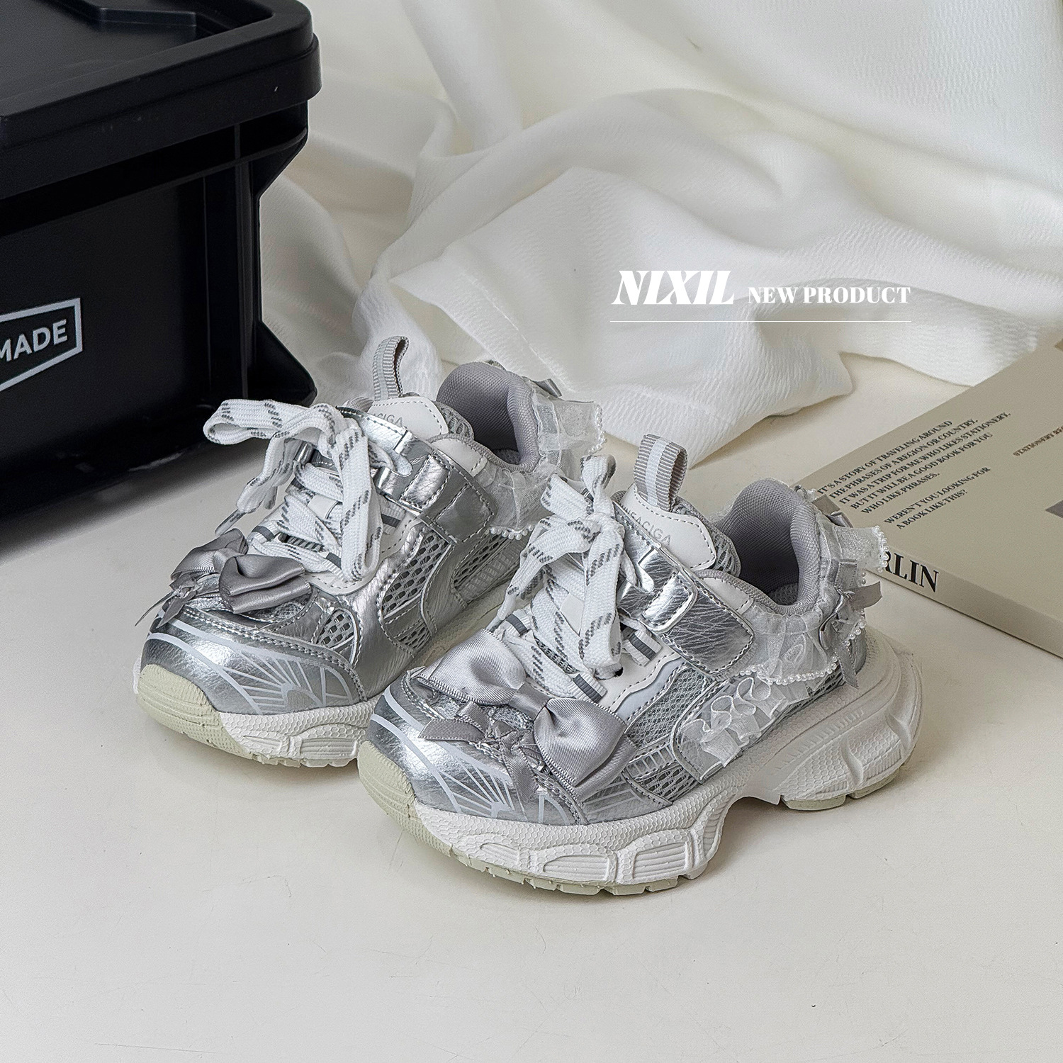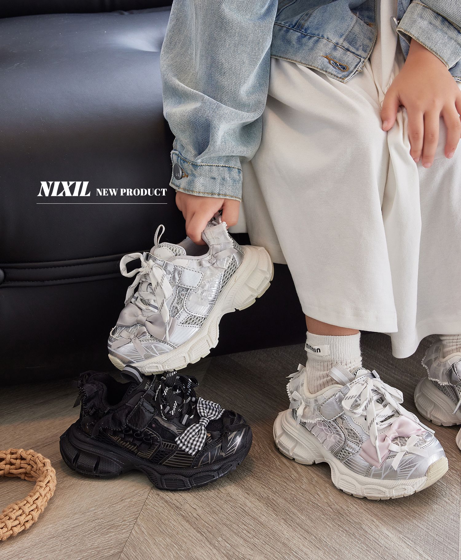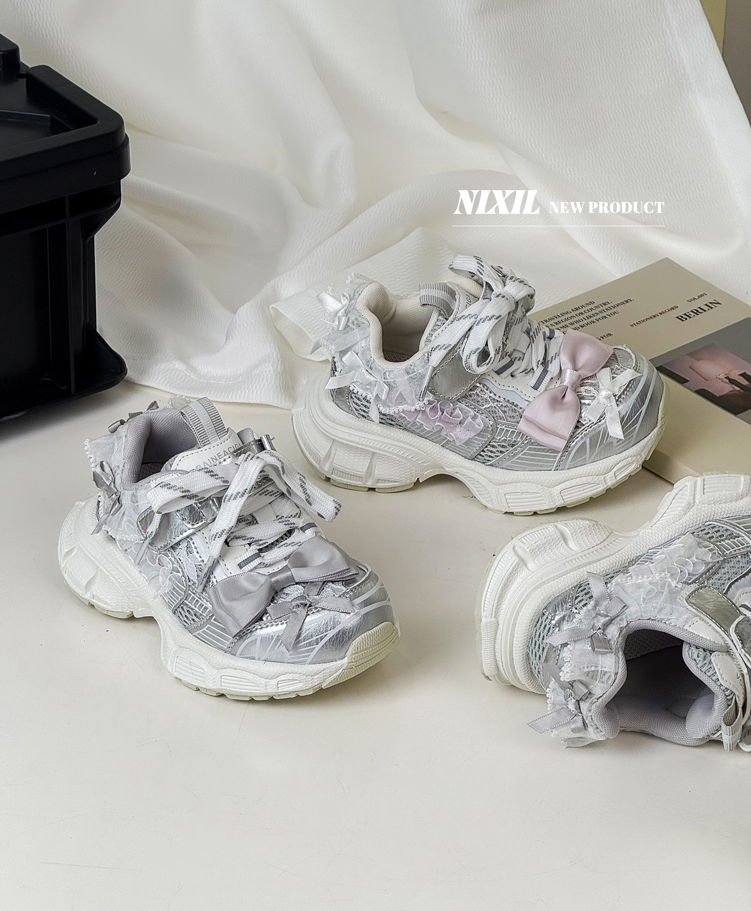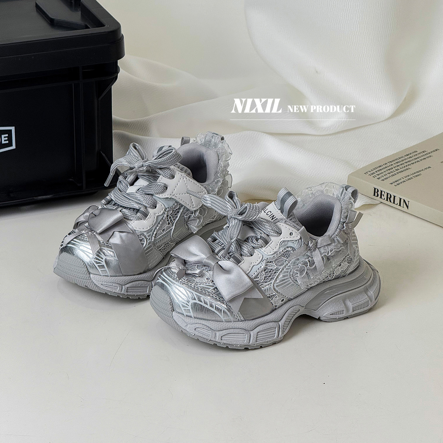 2025 새로운 가을 소녀 운동화 귀여운 나비 레이스 공주 캐주얼 신발 두꺼운 밑창 어린이 아빠 신발스토어 가기