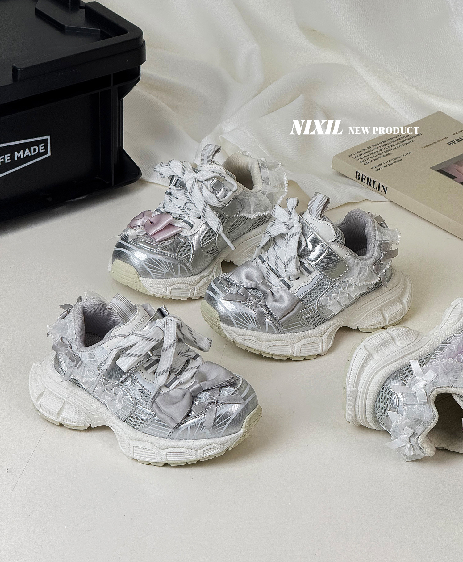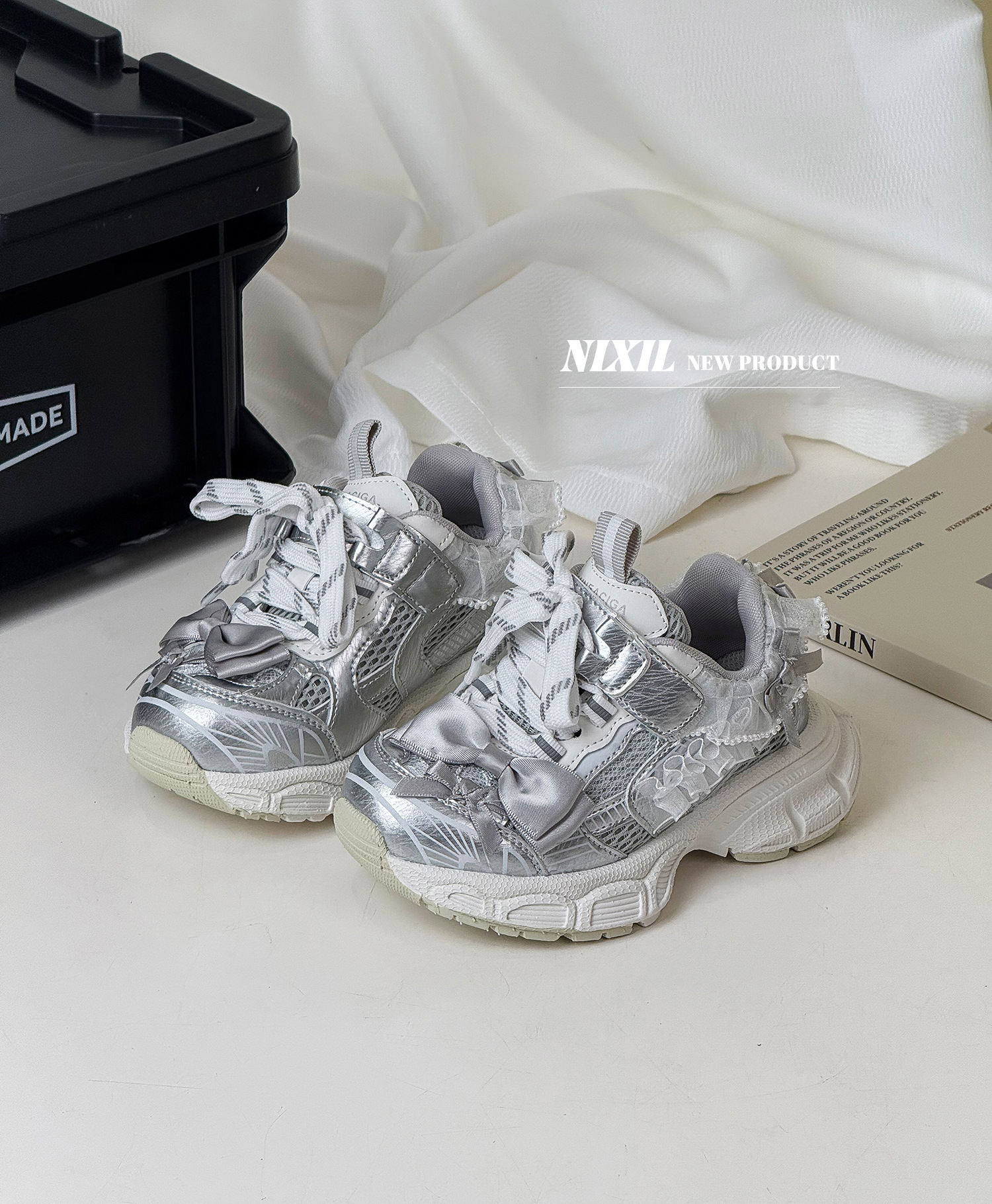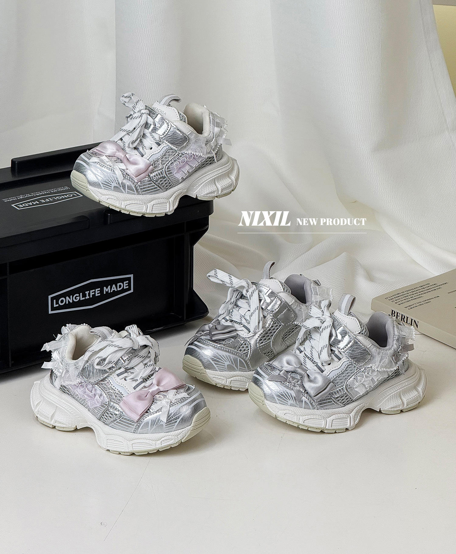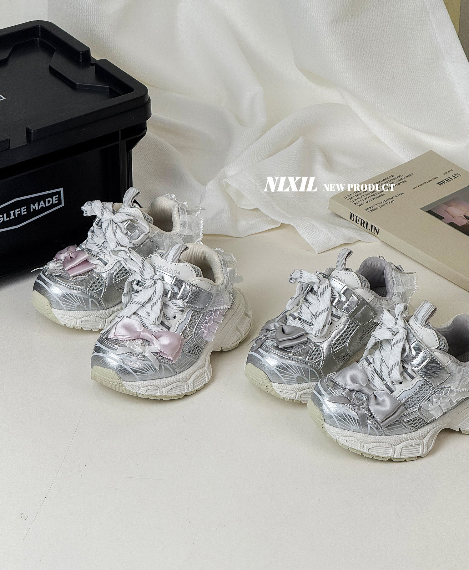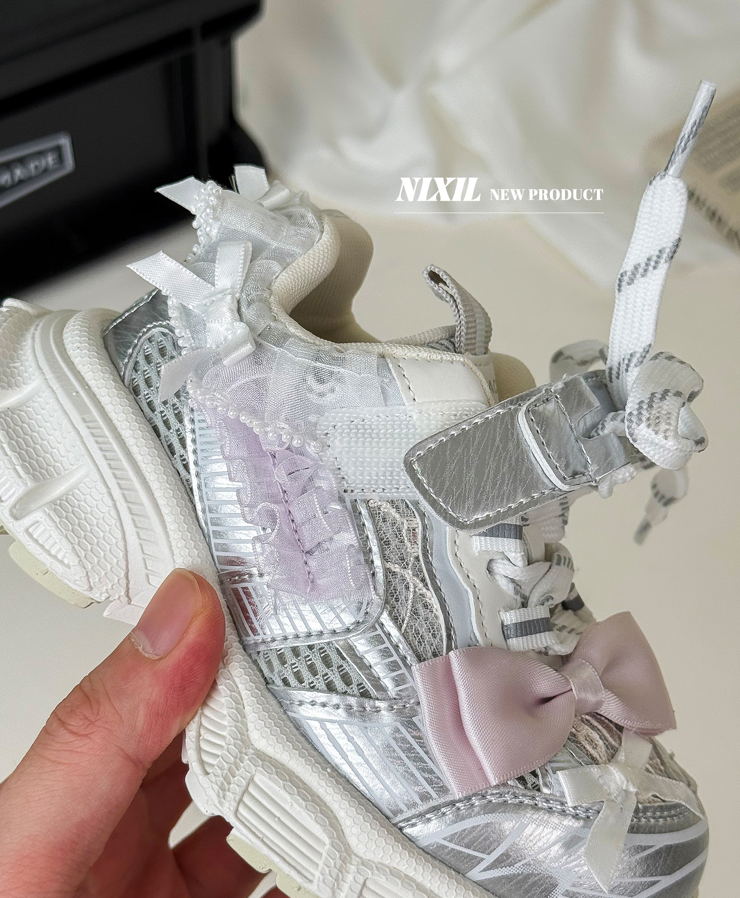 2025 새로운 가을 소녀 운동화 귀여운 나비 레이스 공주 캐주얼 신발 두꺼운 밑창 어린이 아빠 신발스토어 가기