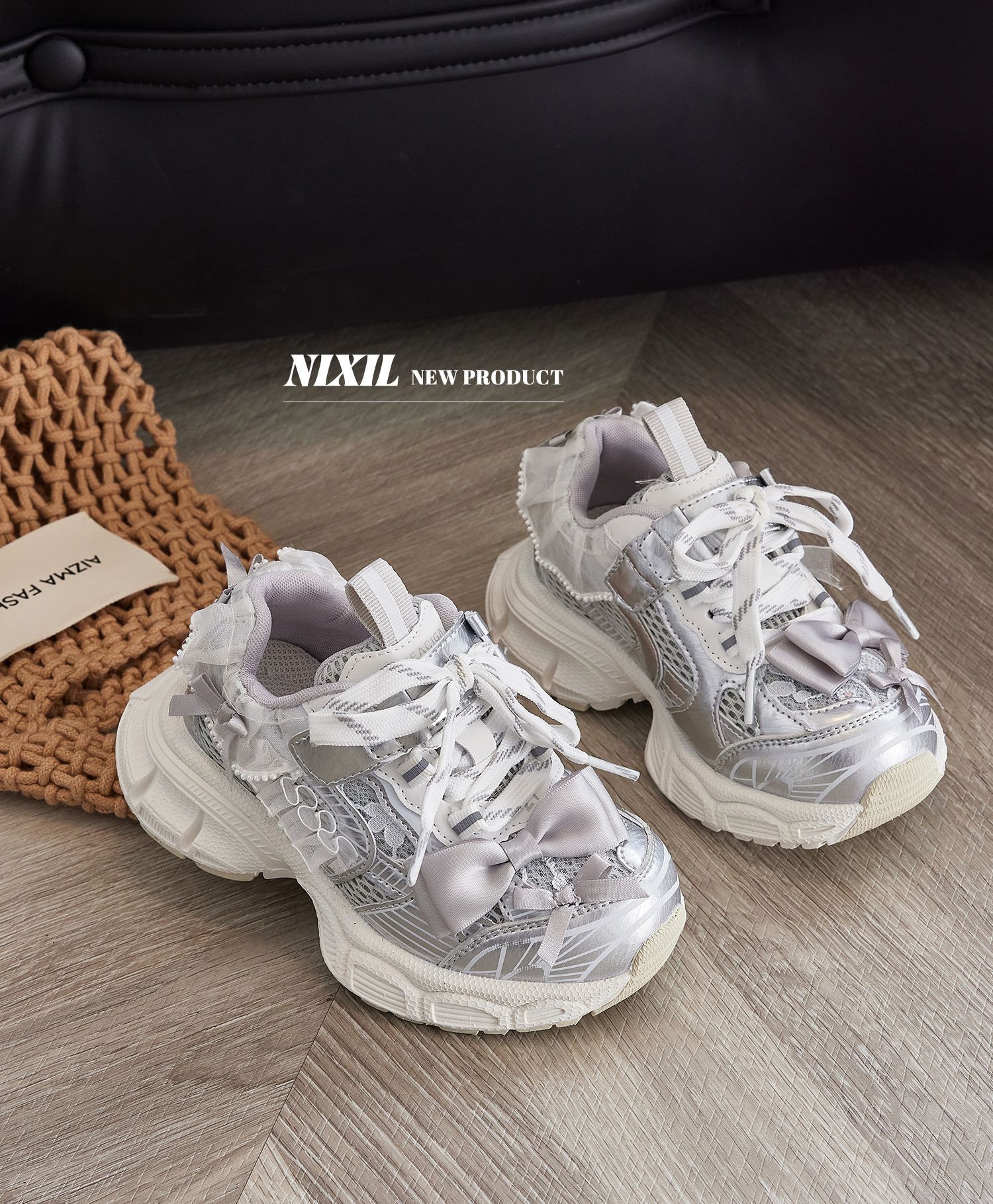 2025 새로운 가을 소녀 운동화 귀여운 나비 레이스 공주 캐주얼 신발 두꺼운 밑창 어린이 아빠 신발
