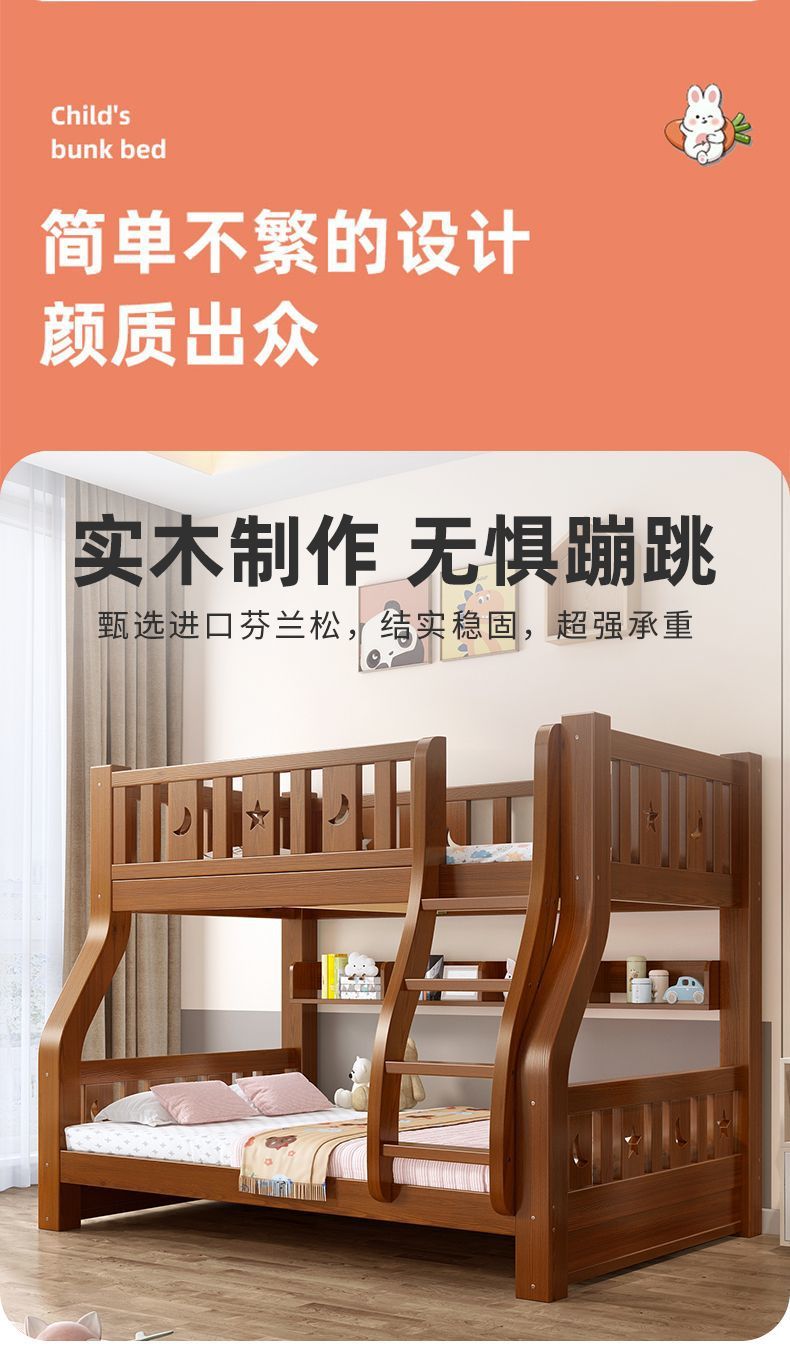 • 높아진 상부 침대 폭은 115cm, 하부 침대 폭은 135cm입니다.