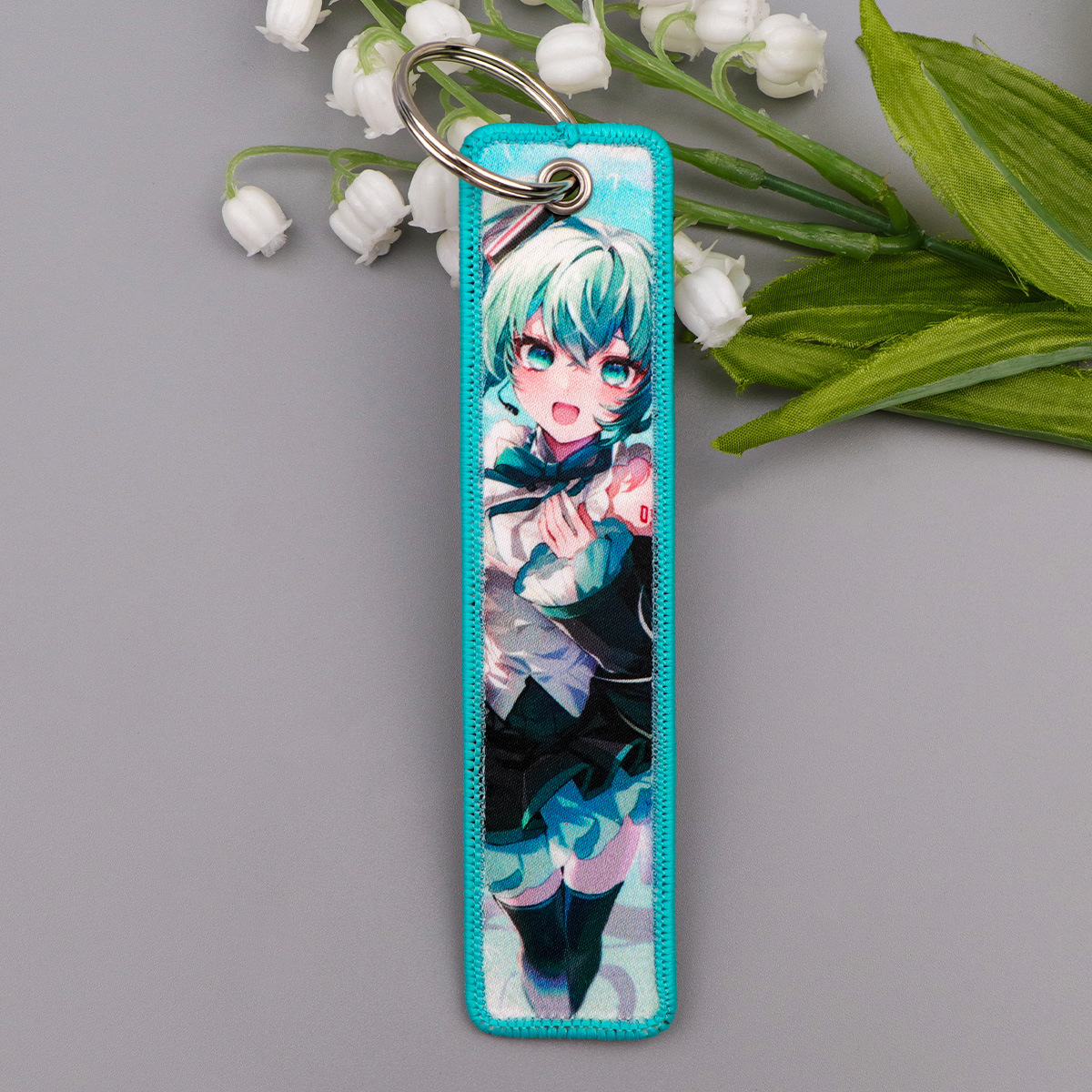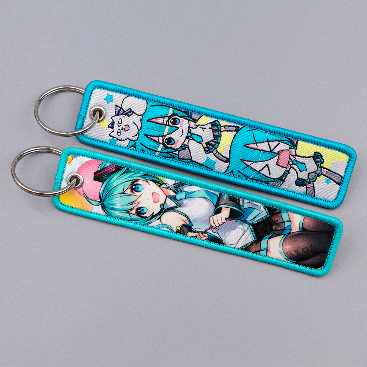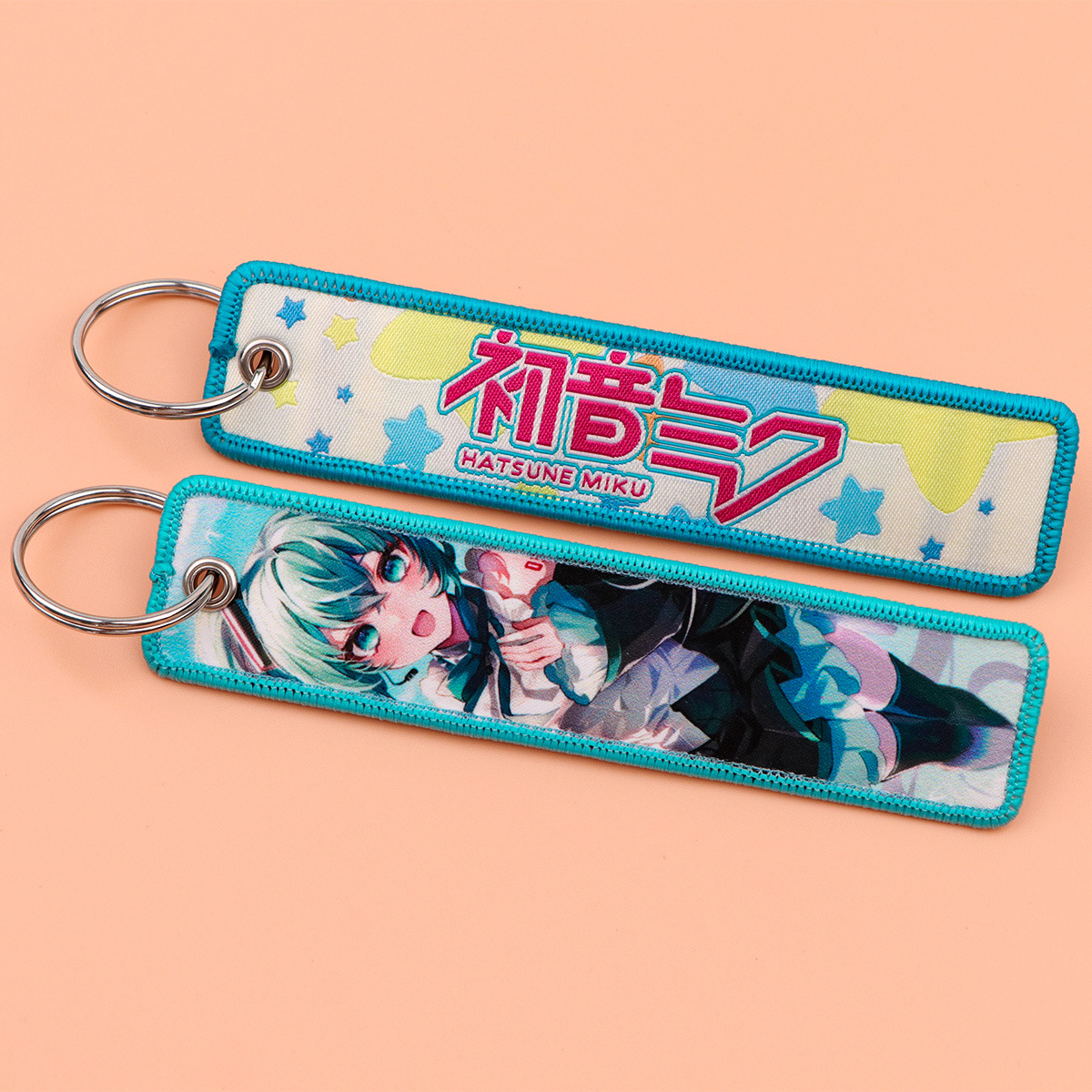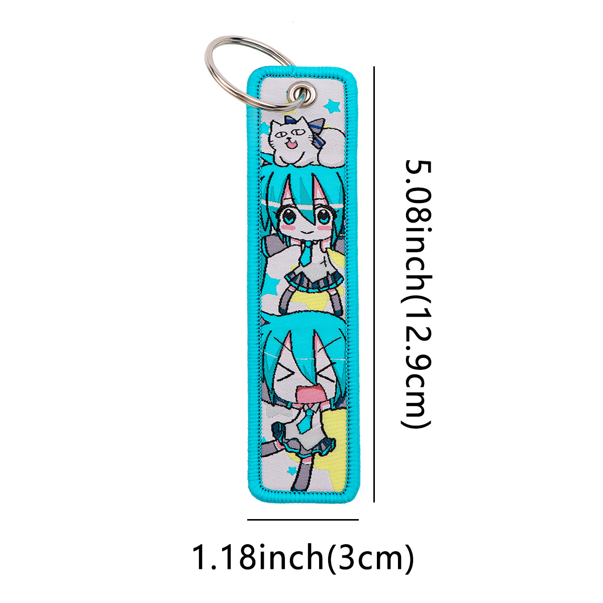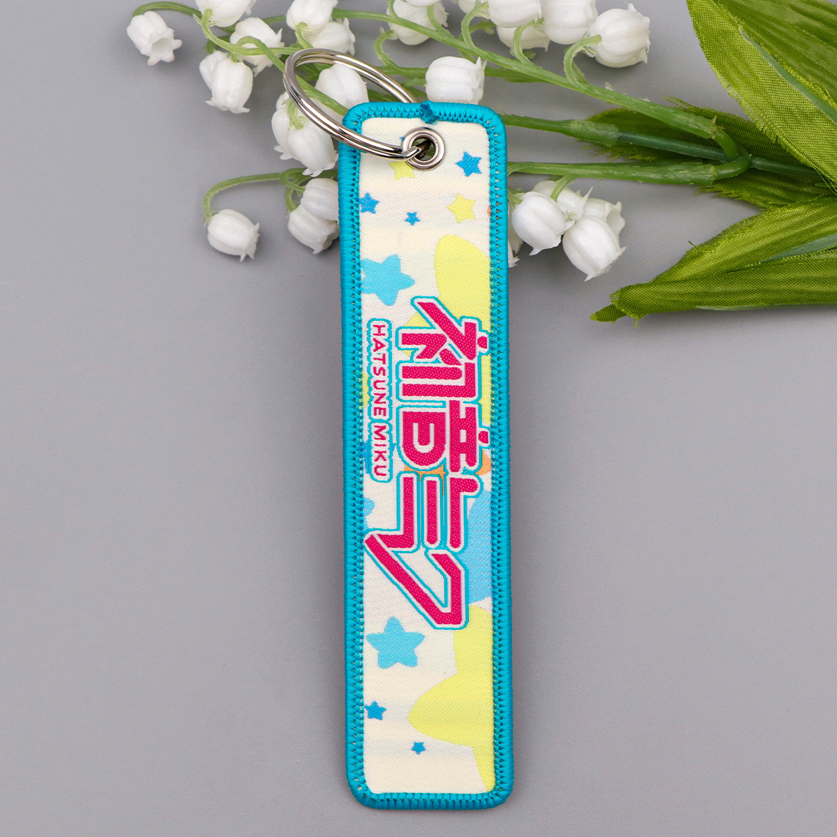 2차원 일본 애니메이션 하츠네 미쿠 직조 라벨 열쇠 고리 짧은 천 스트립 열쇠 고리 열쇠 고리 오토바이 펜던트스토어 가기