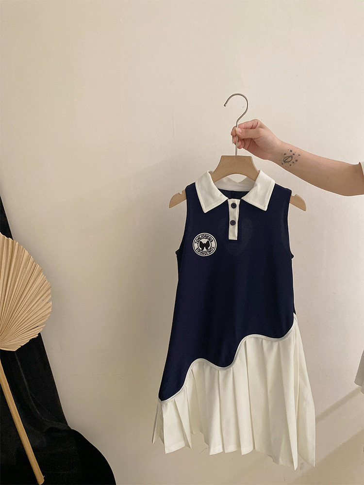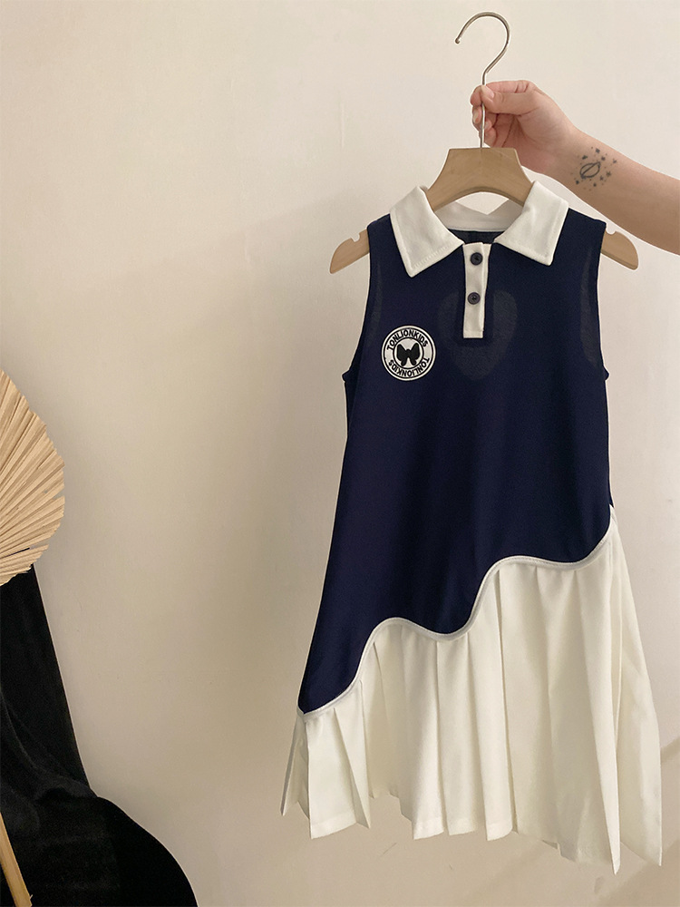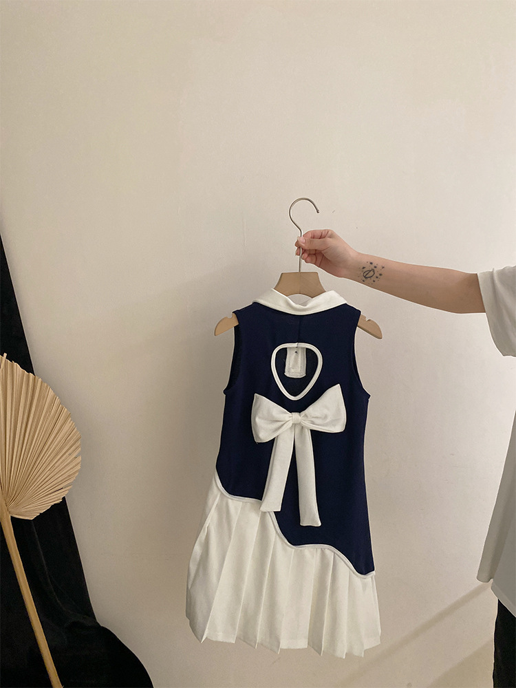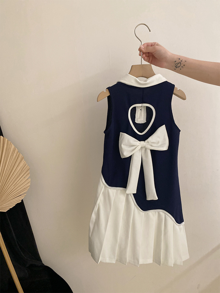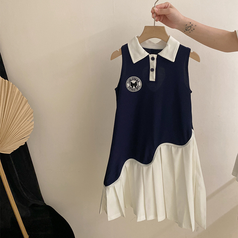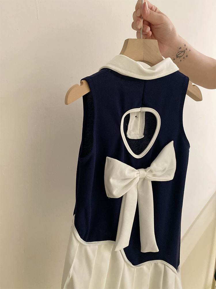 여자 조끼 드레스 여름 2025 새로운 어린이 대학 스타일 스커트 여름 드레스 여자 보우 폴로 스커트 유행스토어 가기