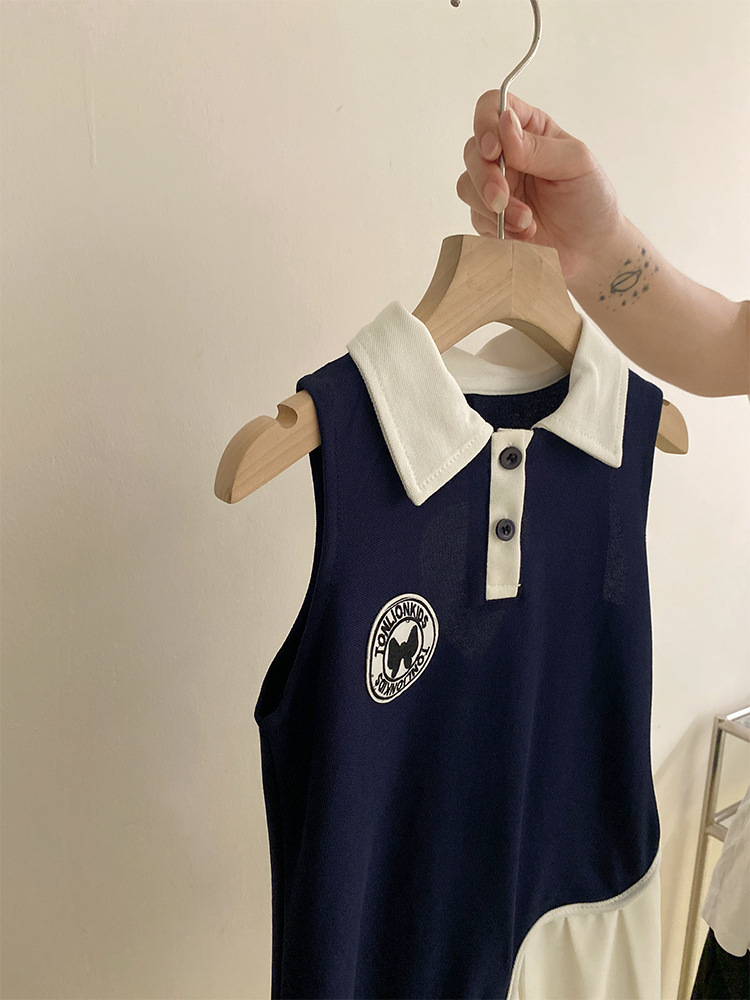 여자 조끼 드레스 여름 2025 새로운 어린이 대학 스타일 스커트 여름 드레스 여자 보우 폴로 스커트 유행