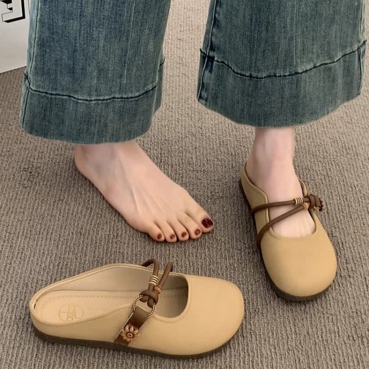 여성용 바오터우 하프 슬리퍼 여름 아우터 2025 새로운 슈퍼 핫 플랫 슬립 온 게으른 하프 슬리퍼 프렌치 샌들스토어 가기