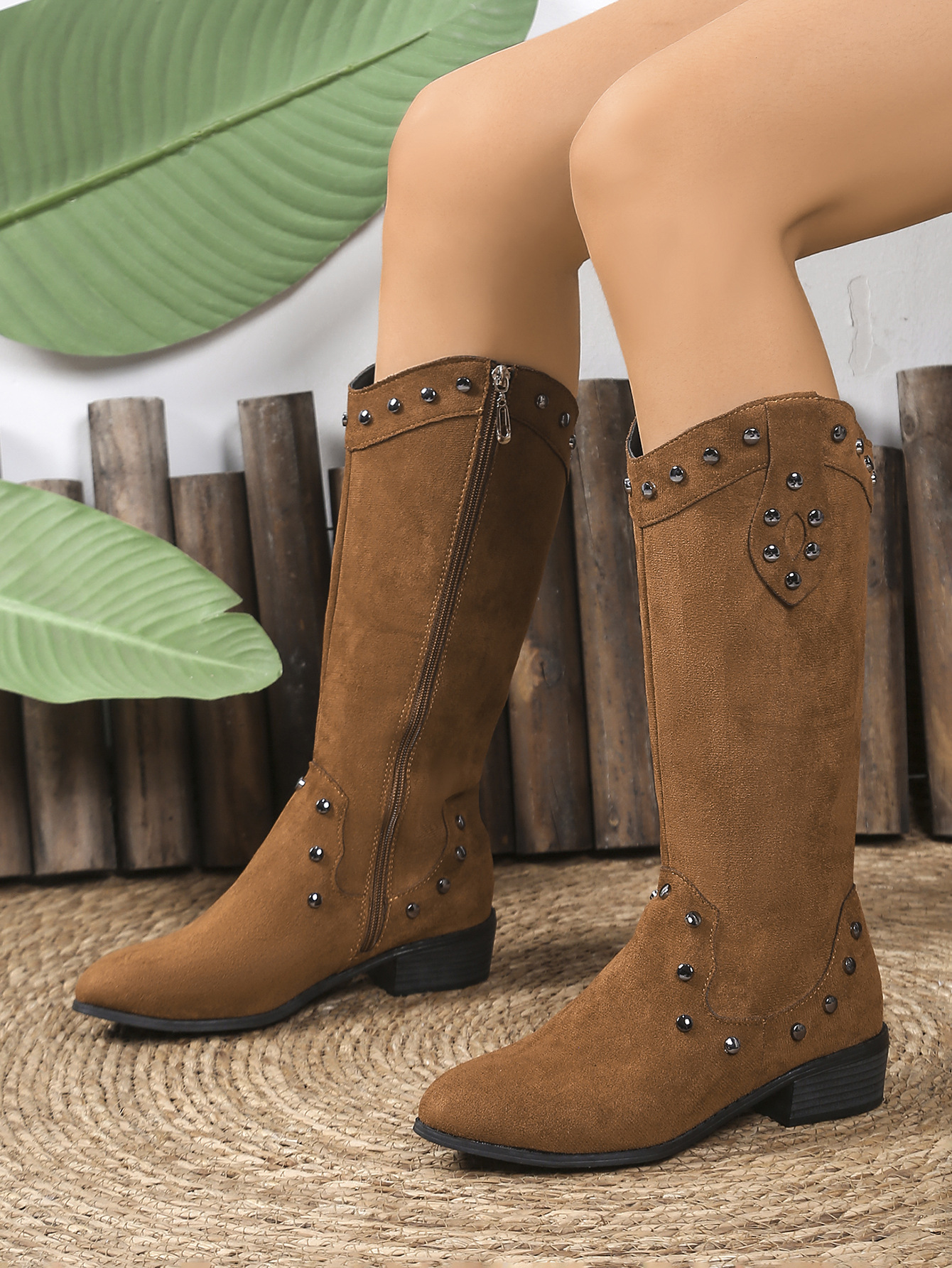레트로 V 입 서양 카우보이 부츠 여성용 뾰족한 두꺼운 하이힐 패션 부츠 2025 여성용 새 대형 크로스 보더 부츠스토어 가기