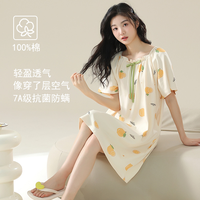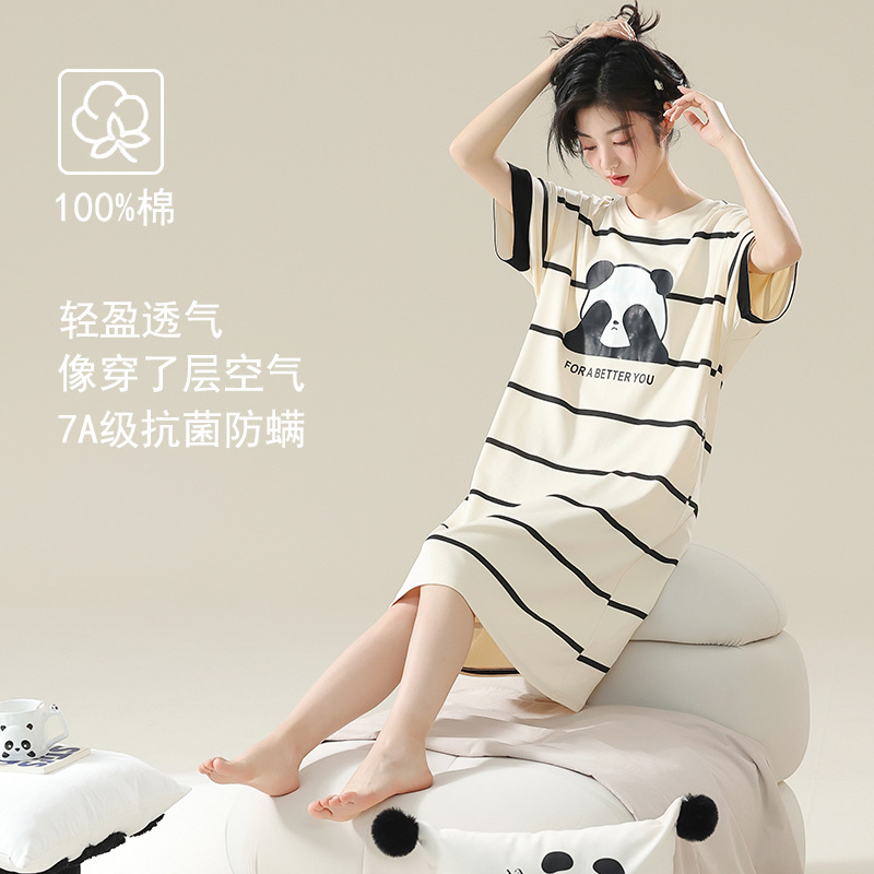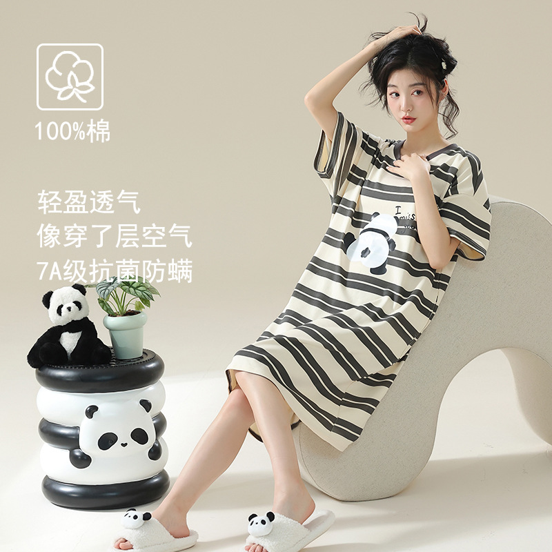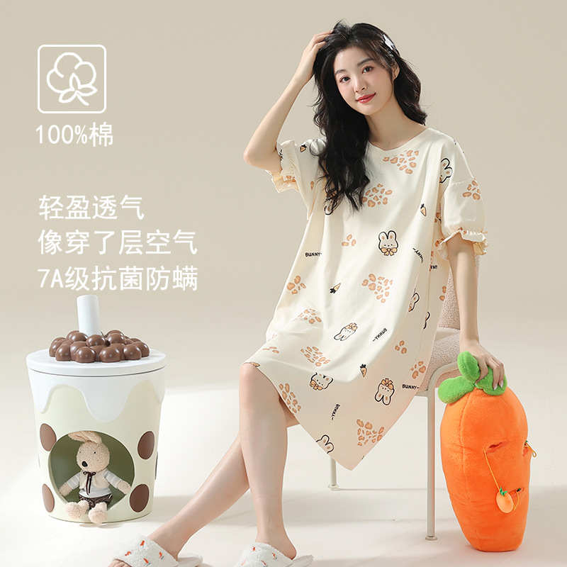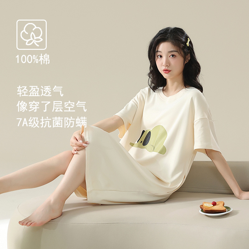 클래스 A 항균 면 잠옷 여성 여름 반팔 드레스 여성 만화 플러스 사이즈 여학생 잠옷을 구입하러 가세요스토어 가기