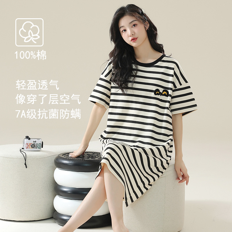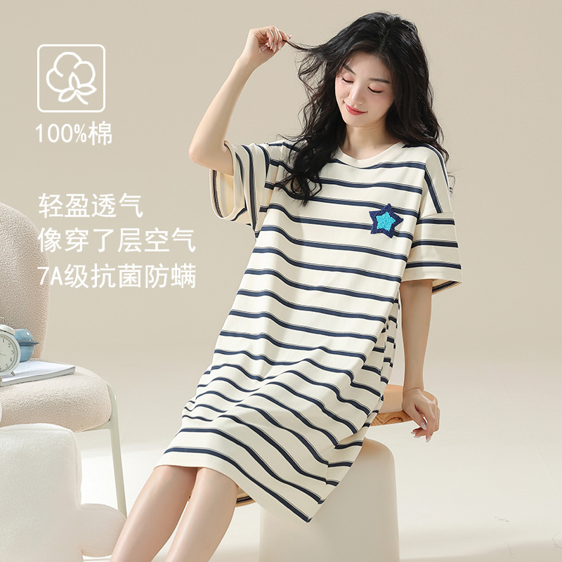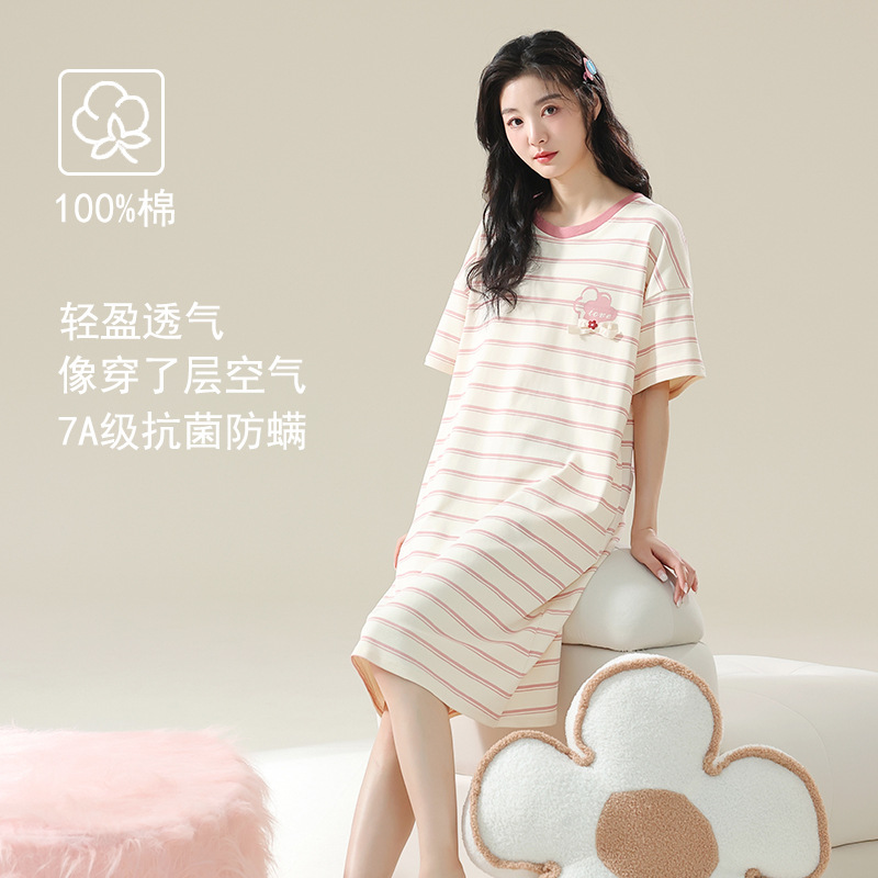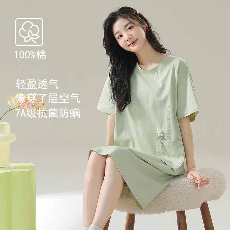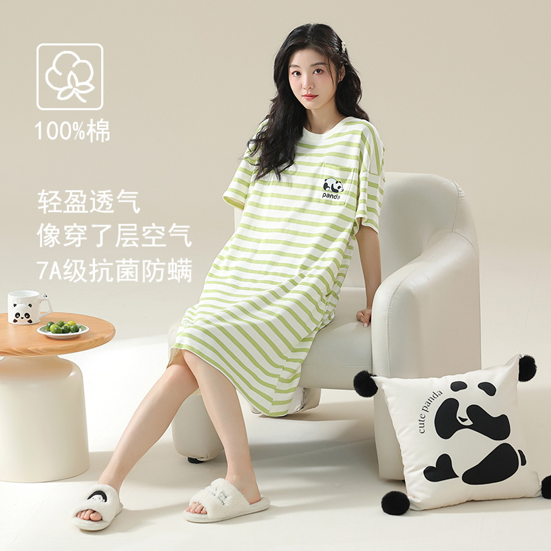 클래스 A 항균 면 잠옷 여성 여름 반팔 드레스 여성 만화 플러스 사이즈 여학생 잠옷을 구입하러 가세요스토어 가기
