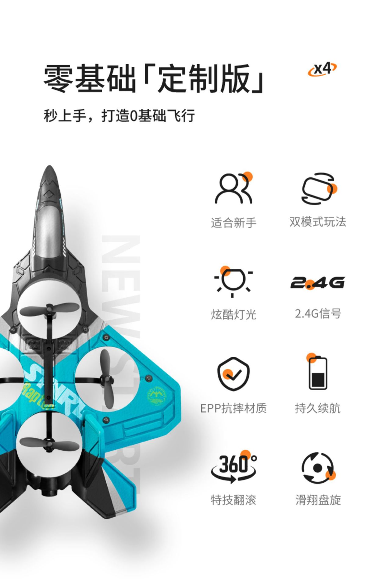 • [8.0 항공 사진 장애물 회피 모델 - 중력 센서 + 스턴트 공중제비] 파란색과 흰색