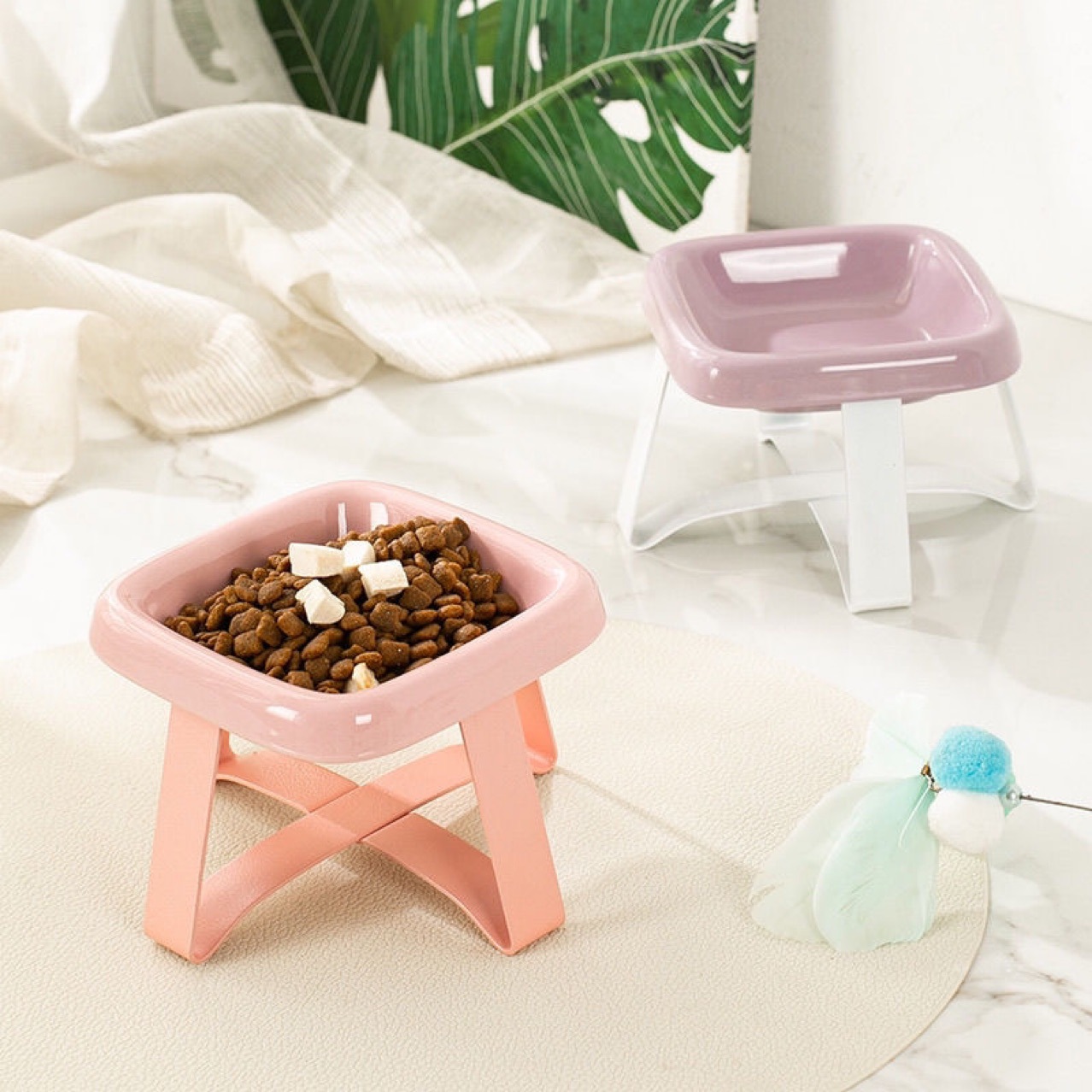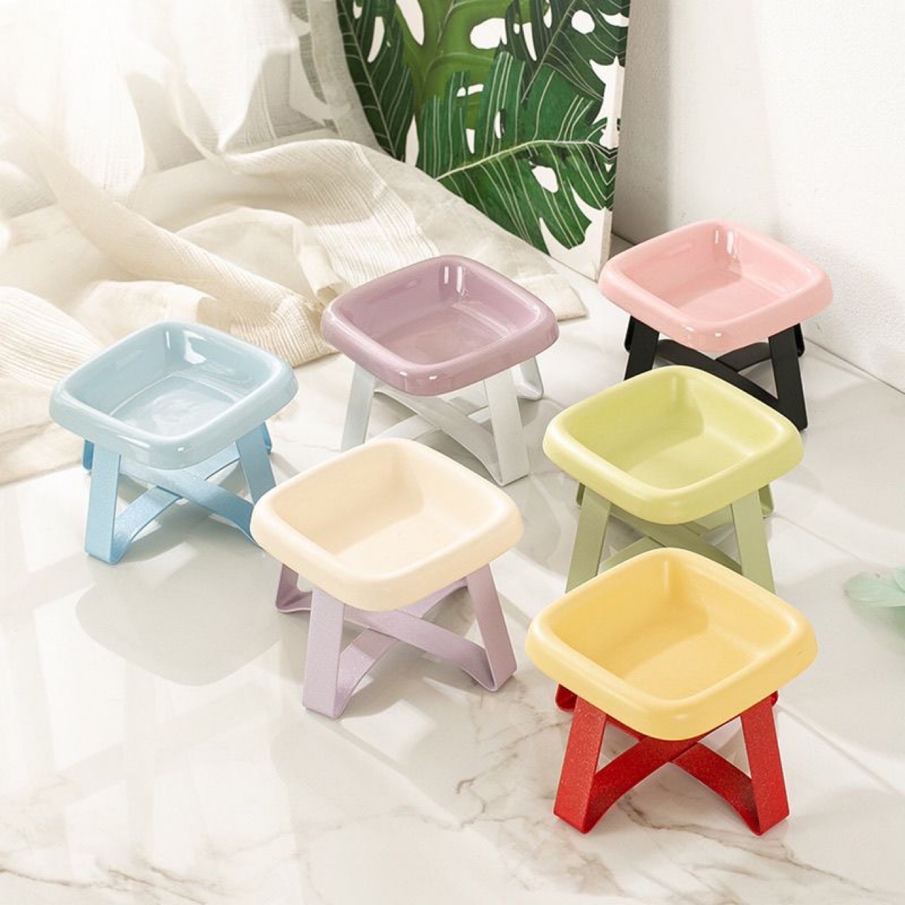 PE 애완동물 그릇 PE 철제 프레임 고양이와 개 그릇 애완동물 그릇 고양이 사료 그릇 통조림 그릇 목 보호대 높이 조절 그릇 랙 스낵 접시스토어 가기