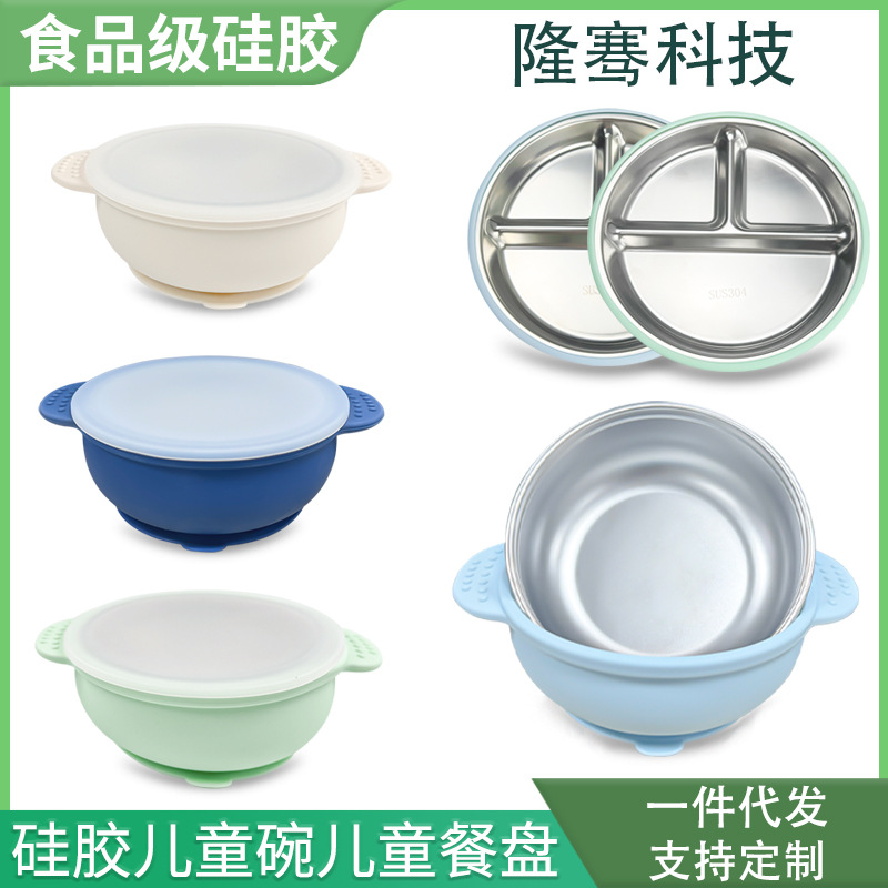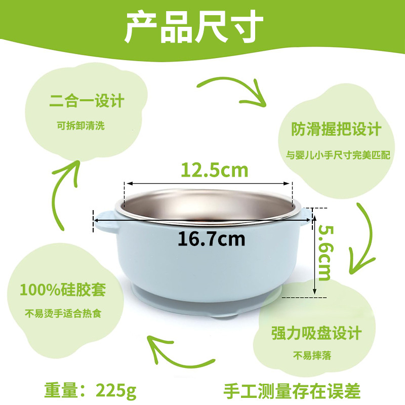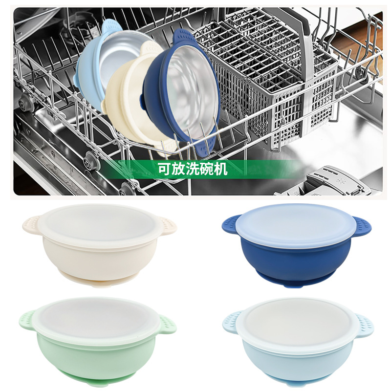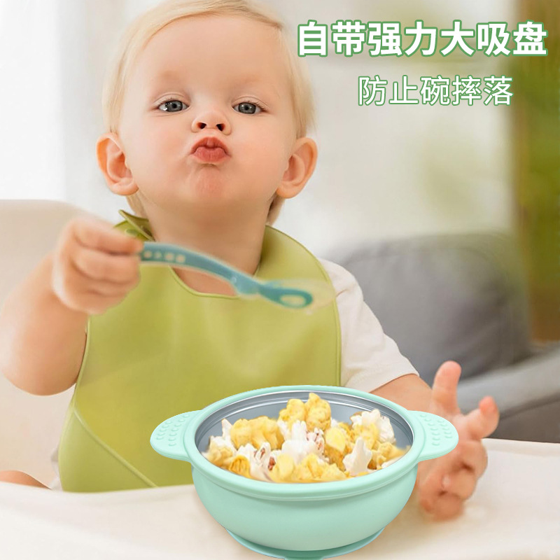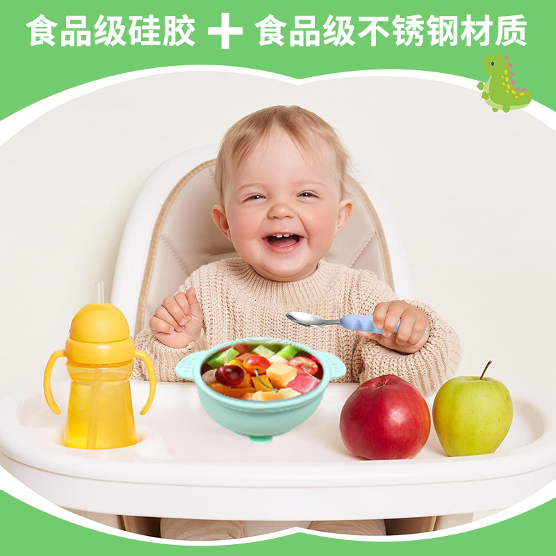 스테인레스 스틸 및 실리콘 흡입 컵이있는 아기 그릇 더러운 없음 유아 그릇 세트 식기 세척기 안전 슈퍼 베이스