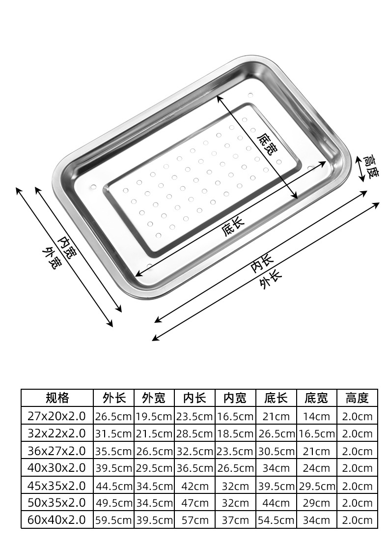 칭왕 스테인리스 스틸 배수 트레이, 직사각형 차 트레이, 가정용 배수 트레이, 깊은 증기 트레이, 물 필터 배수 트레이스토어 가기
