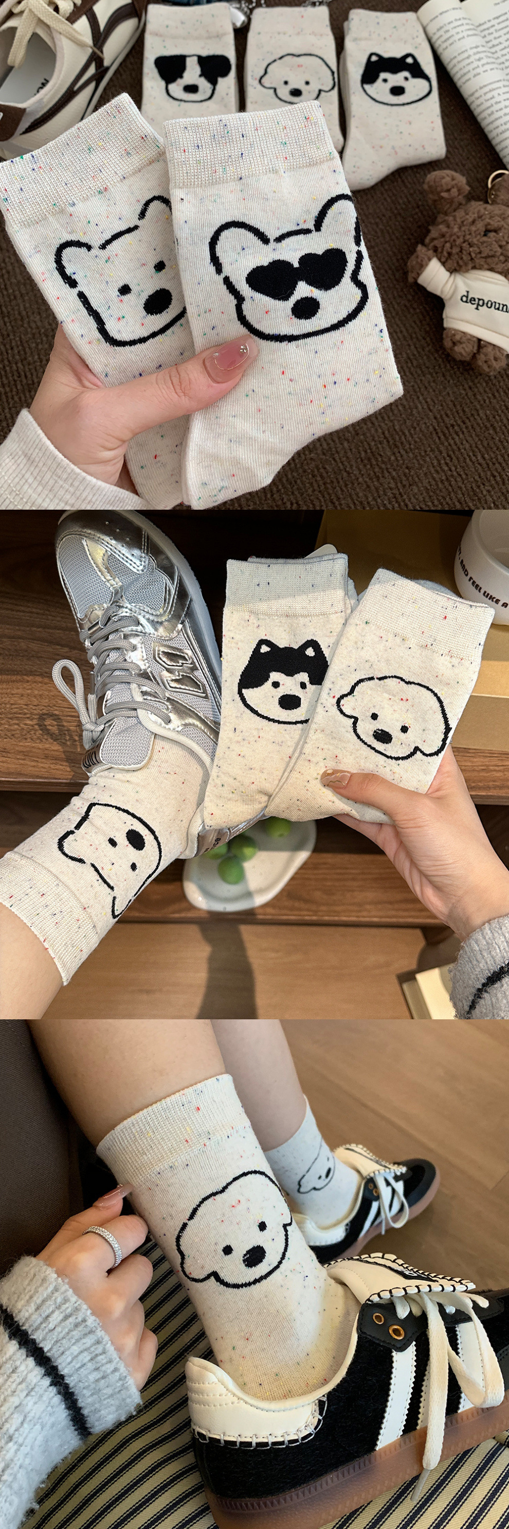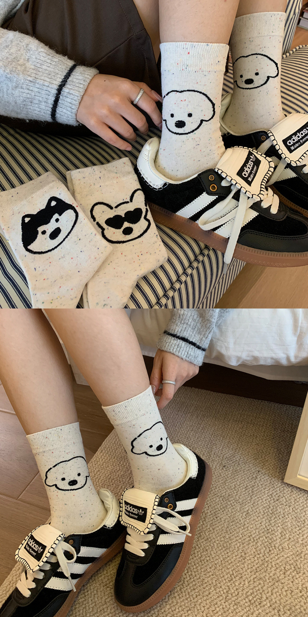 아이디어 원사 강아지 양말 여성용 종아리 중간 양말 봄, 가을 일본식 귀여운 스포츠 양말 여성용스토어 가기