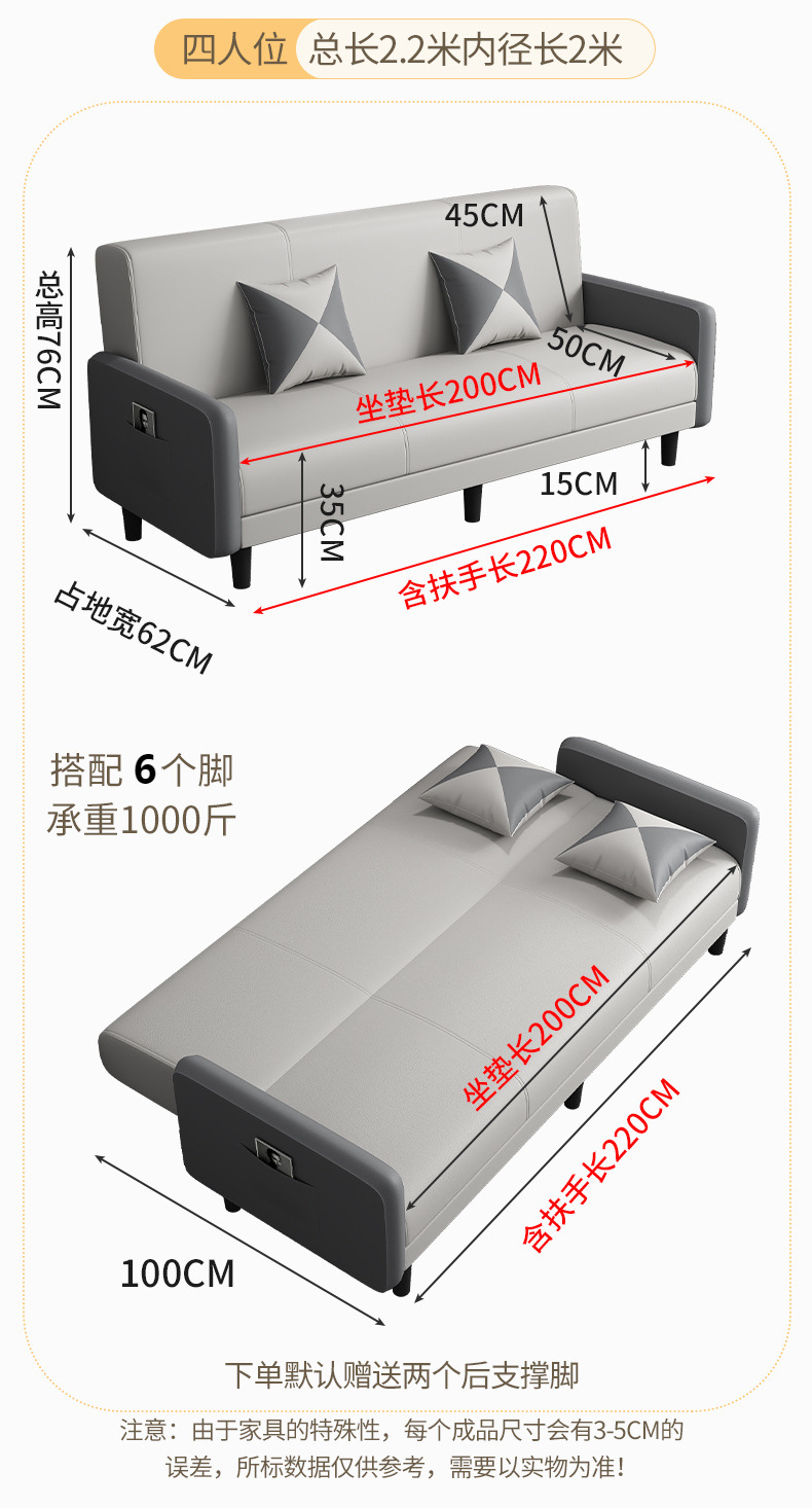 패브릭 소파 소형 가족 접이식 소파 베드 이중 목적 다기능 거실 임대 아파트 싱글 및 더블 소파