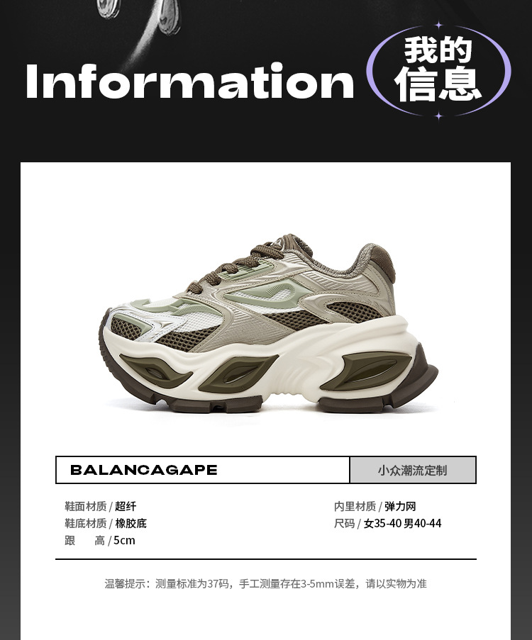 Tan Jianci의 동일한 스타일의 남성과 여성을 위한 동일한 눈 색깔의 아빠 신발 2025 새로운 핫 스타일 두꺼운 밑창의 검은색 스포츠 및 캐주얼 신발