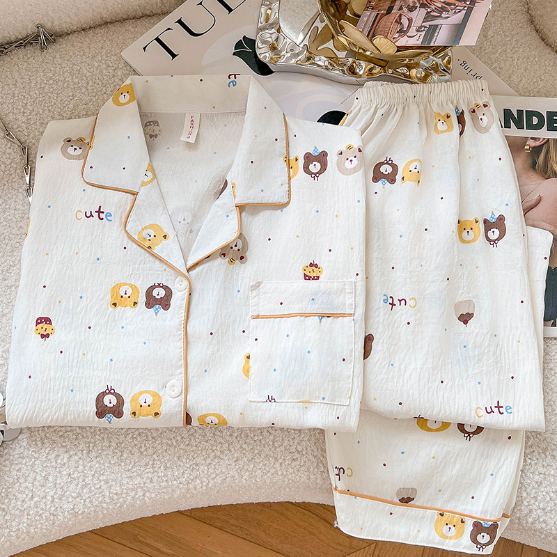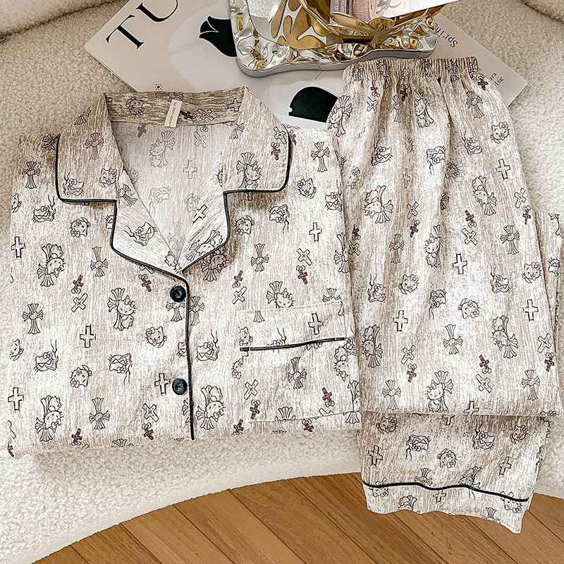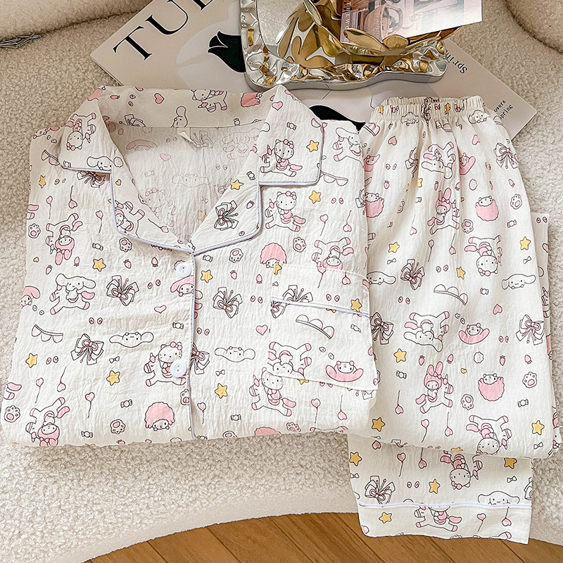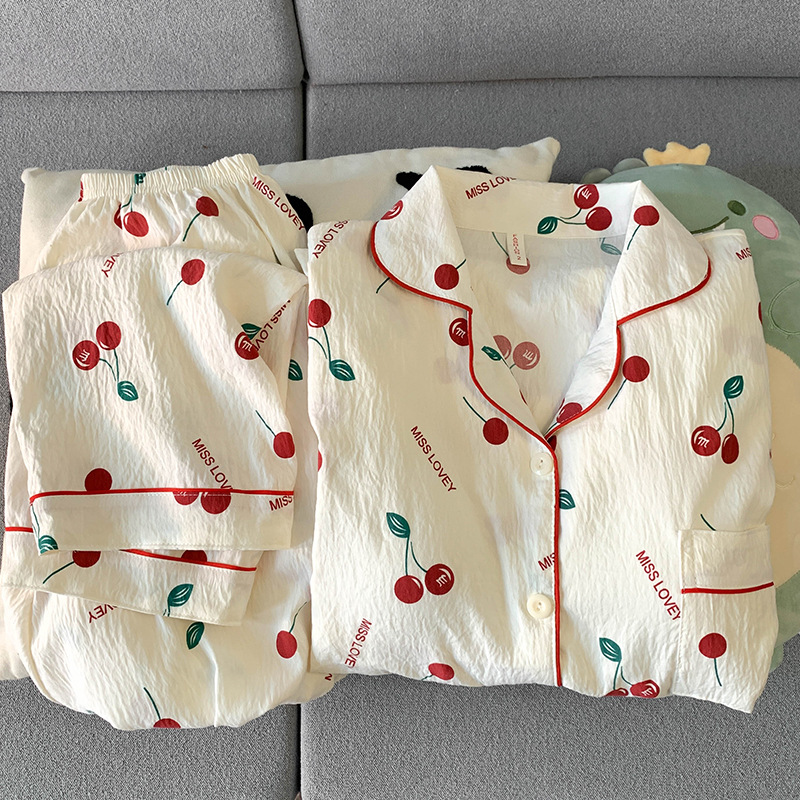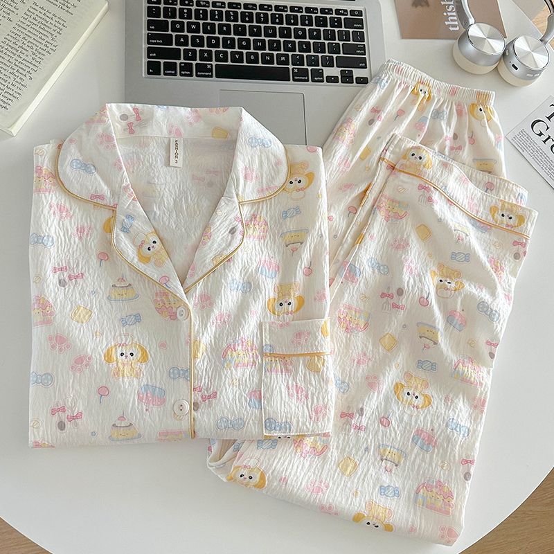 2025 새로운 클라우드 코튼 잠옷 여성 긴 소매 일본 만화 요리사 케이크 귀여운 달콤한 홈웨어 세트
