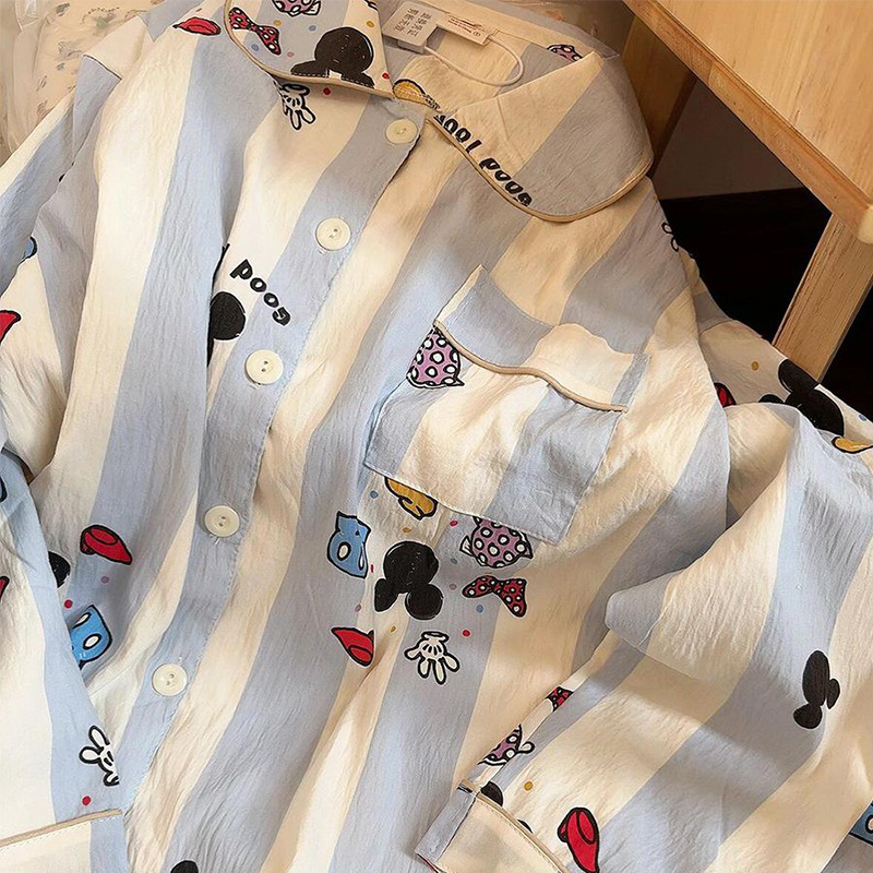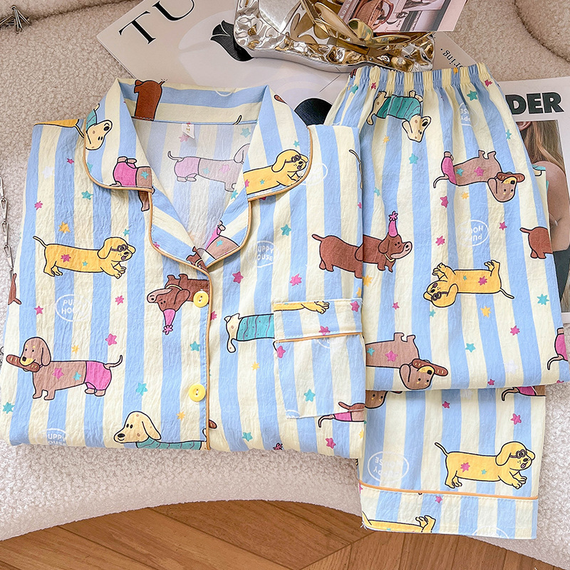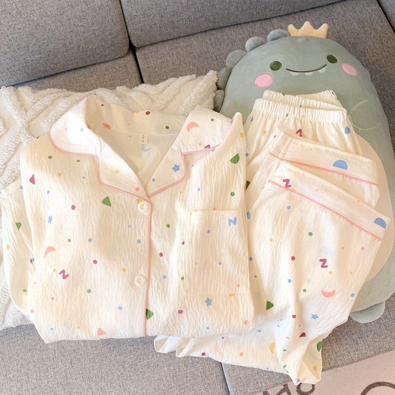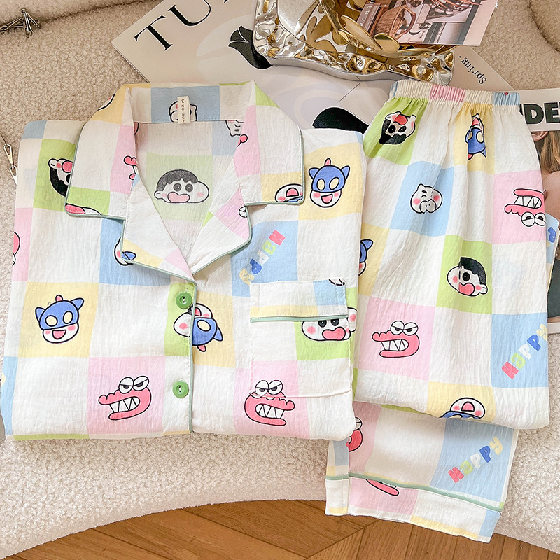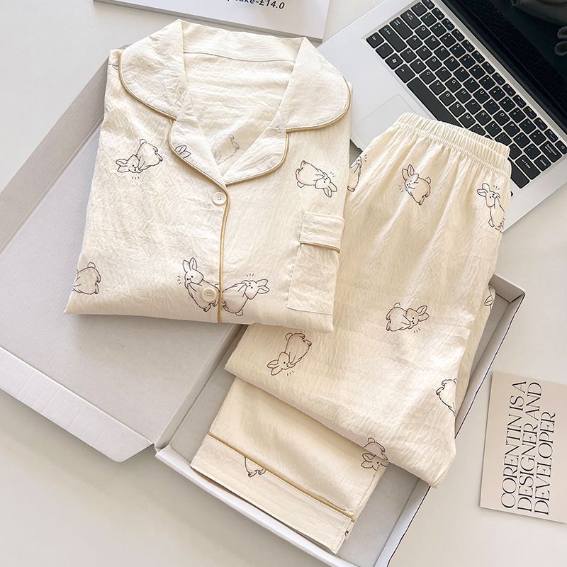 2025 새로운 클라우드 코튼 잠옷 여성 긴 소매 일본 만화 요리사 케이크 귀여운 달콤한 홈웨어 세트