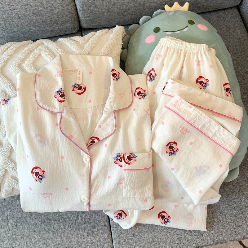 2025 새로운 클라우드 코튼 잠옷 여성 긴 소매 일본 만화 요리사 케이크 귀여운 달콤한 홈웨어 세트스토어 가기