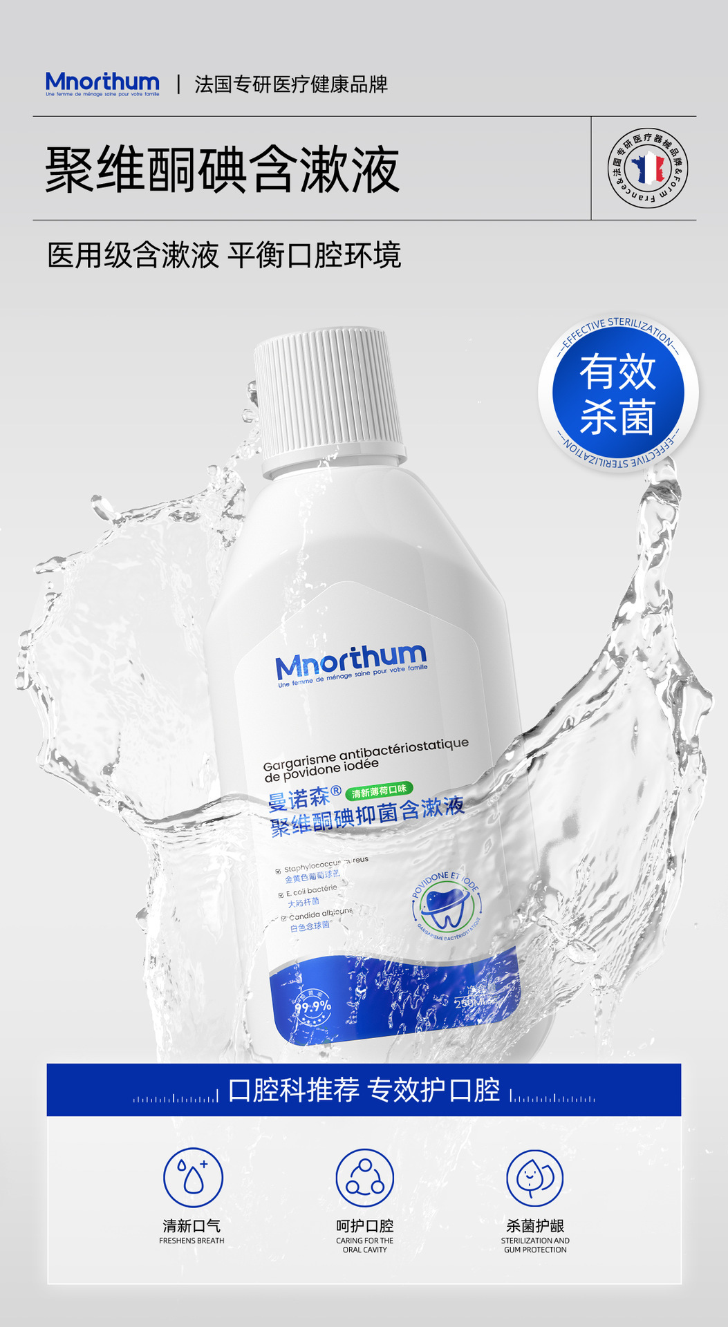 마노센 포비돈요오드 구강청결제 구강냄새 치주통증 민트향 청결 의료용 구강세정제 살균