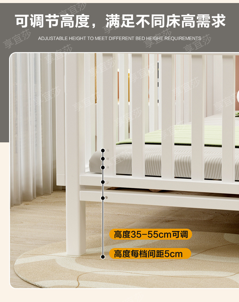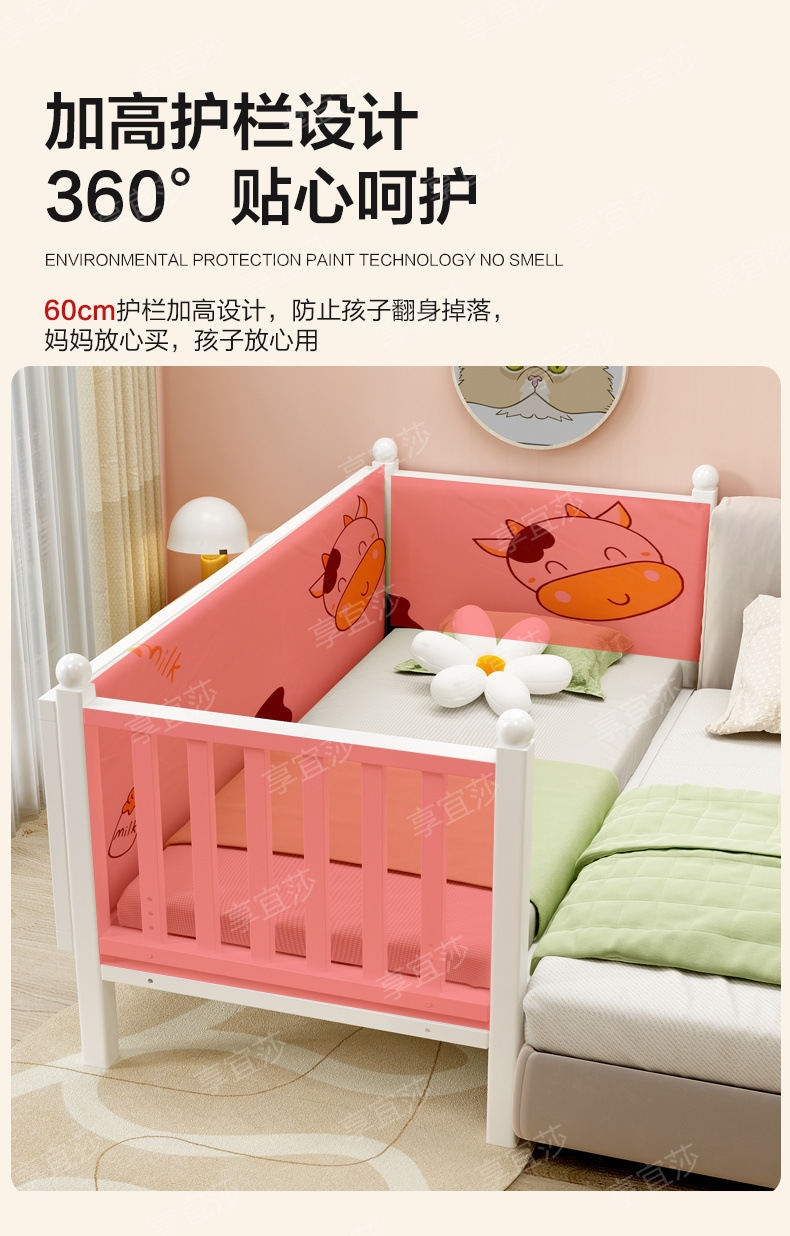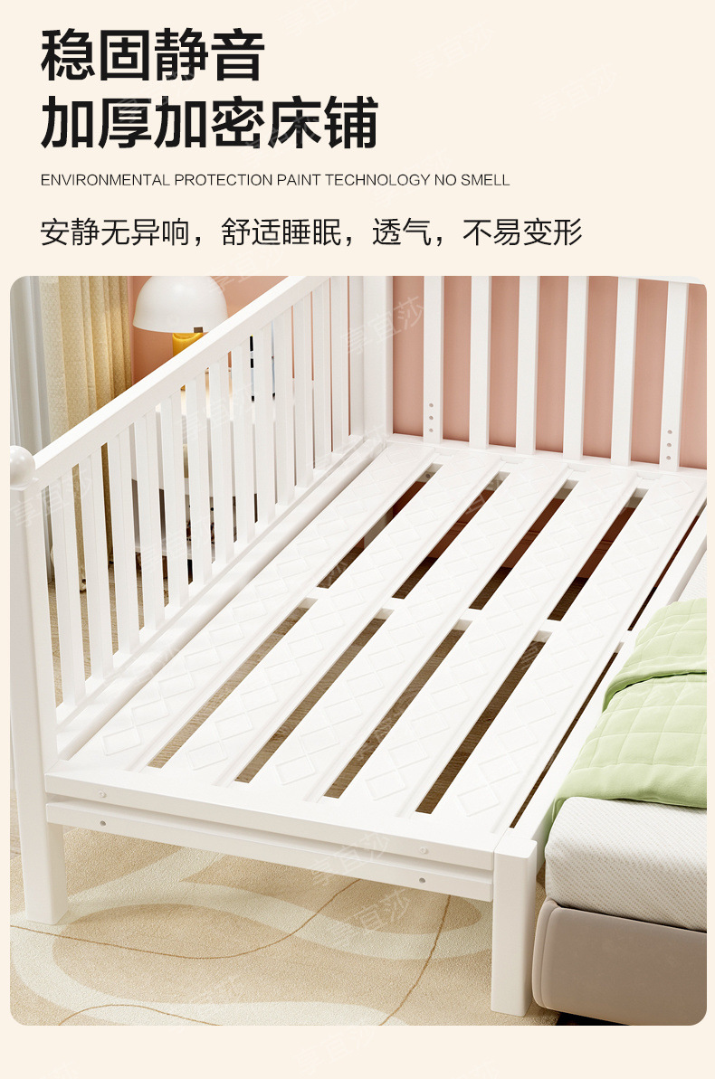 • 화이트 침대 + 삼면가드레일 + 5cm 친환경 매트리스 [조절가능]