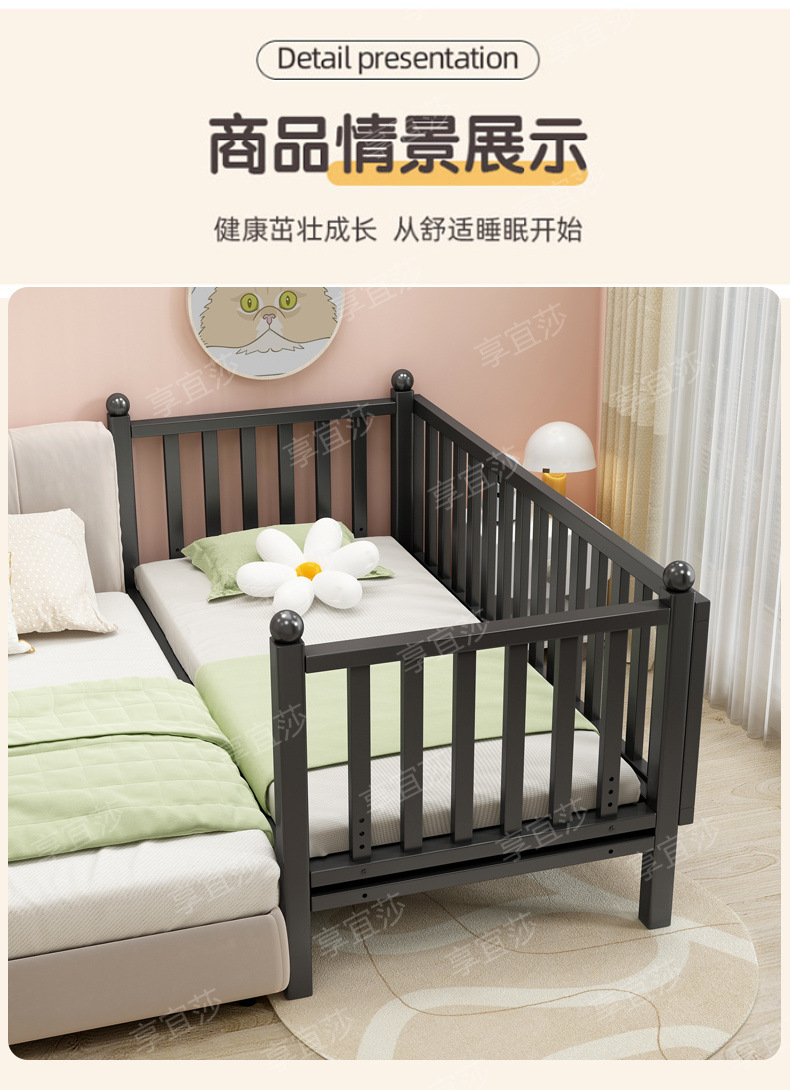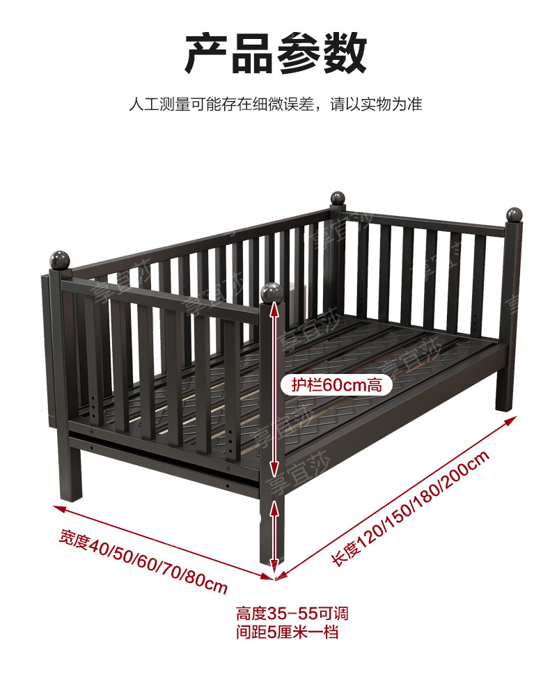 • 블랙 침대 + 삼면 가드레일 + 5cm 친환경 매트리스 [조절 가능