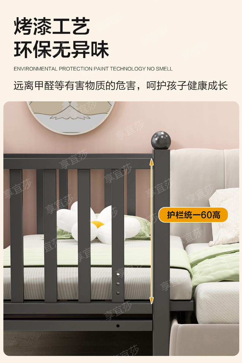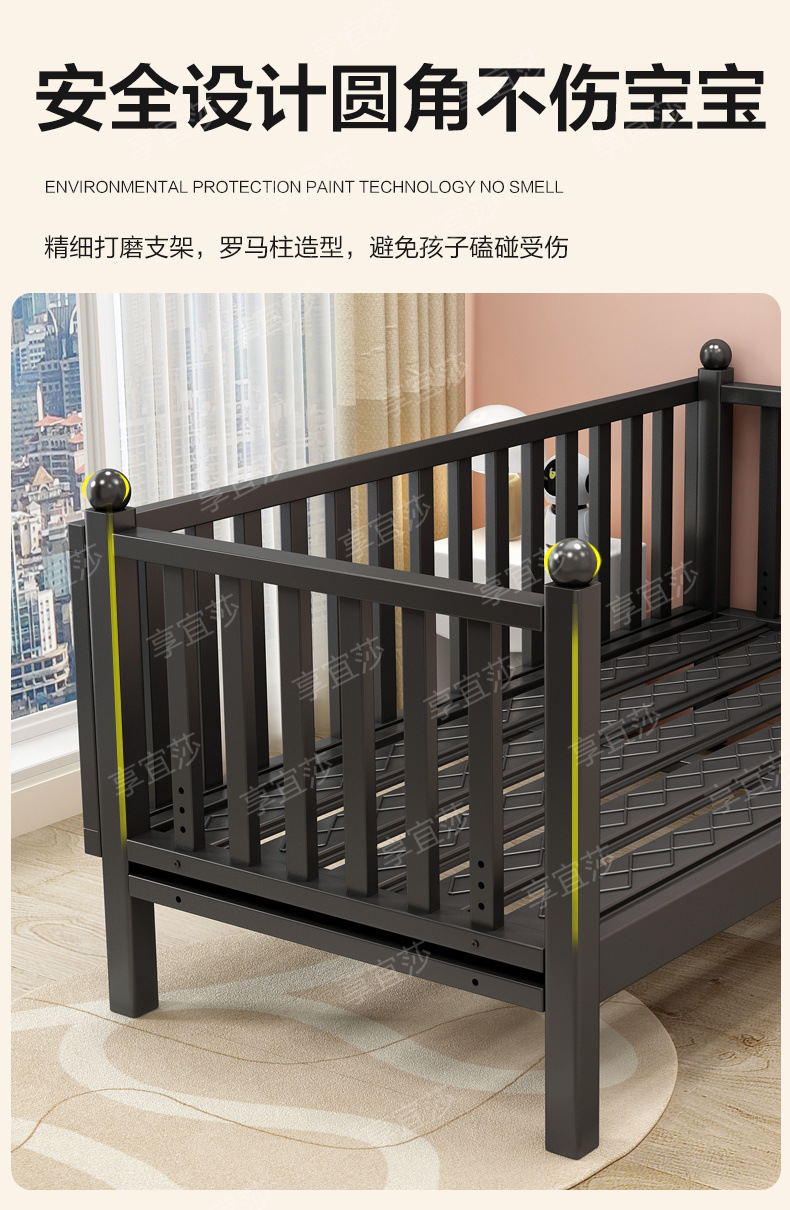 단철 어린이 침대 접합 침대 유아용 침대 아기 침대 강철 프레임 싱글 침대 높이 조절 가능 확장 접합 침대