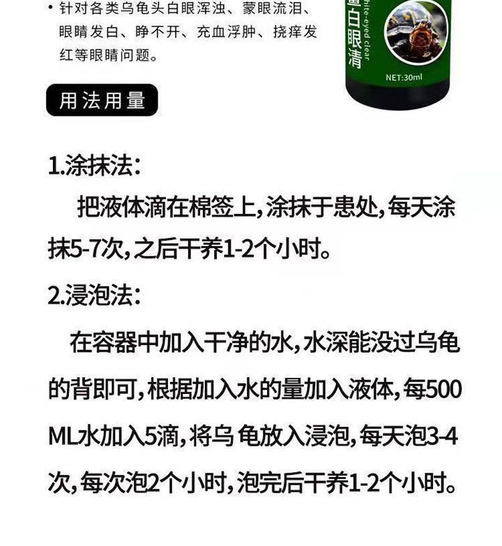 거북이 눈 보호액은 거북이 눈의 흰 눈, 붉은 눈, 눈을 열 수 없는 눈, 눈 백색, 눈을 가리고 있는 거북이를 해결합니다.