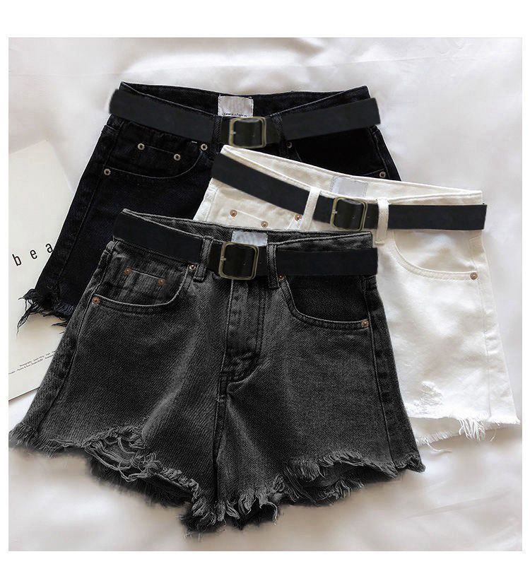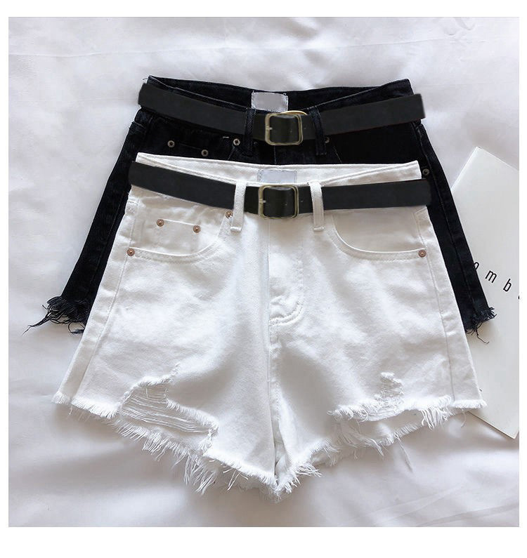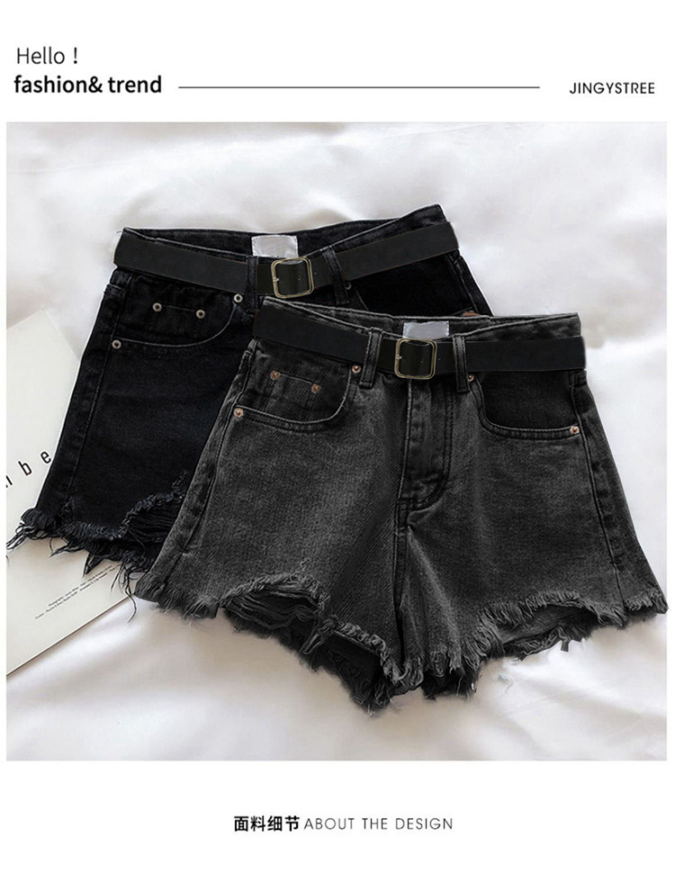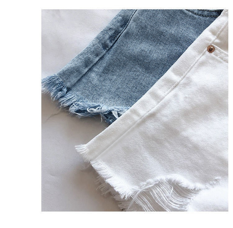 여성용 찢어진 데님 반바지 여름 신작 트렌디 캐주얼 핫팬츠 하이웨이스트 살 커버 에이라인 로우 엣지 슬리밍 와이드 팬츠